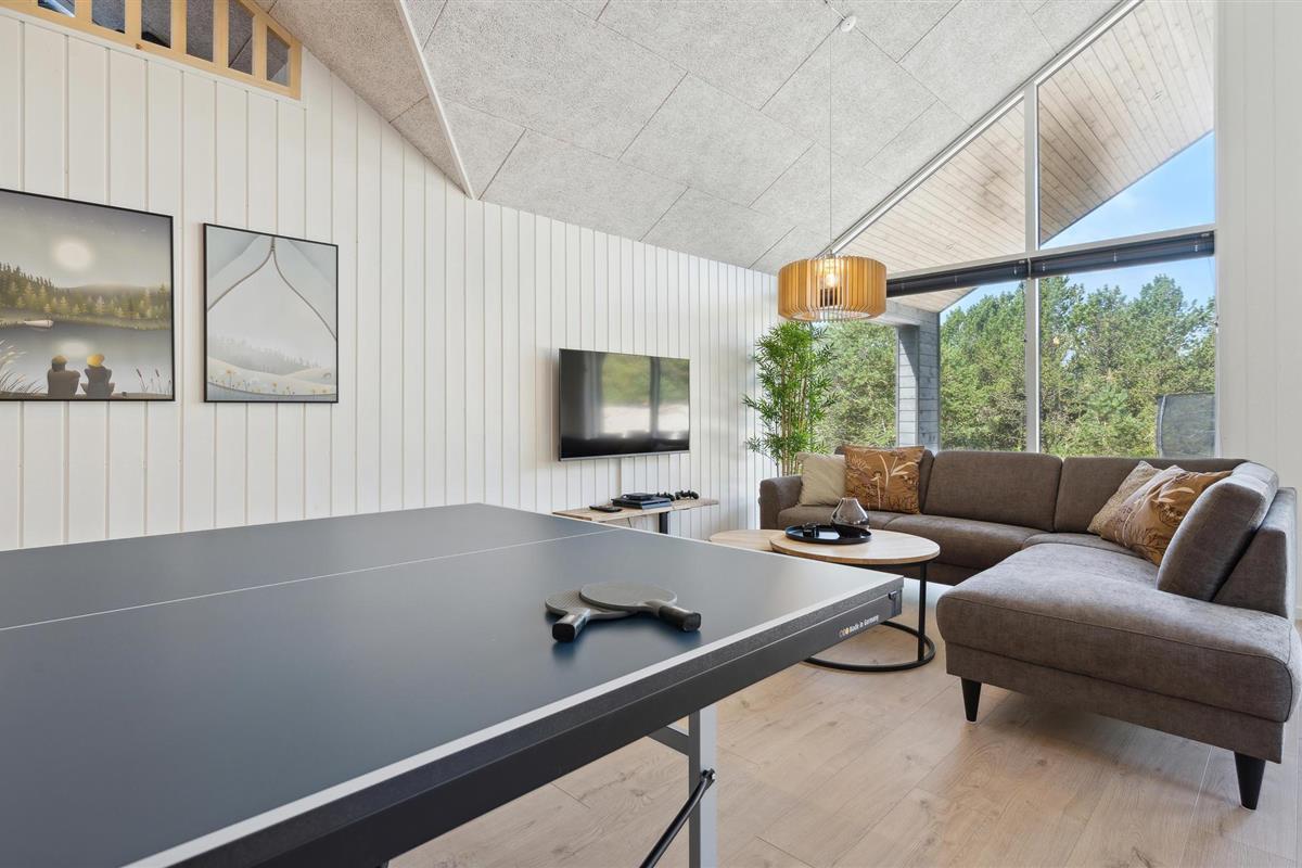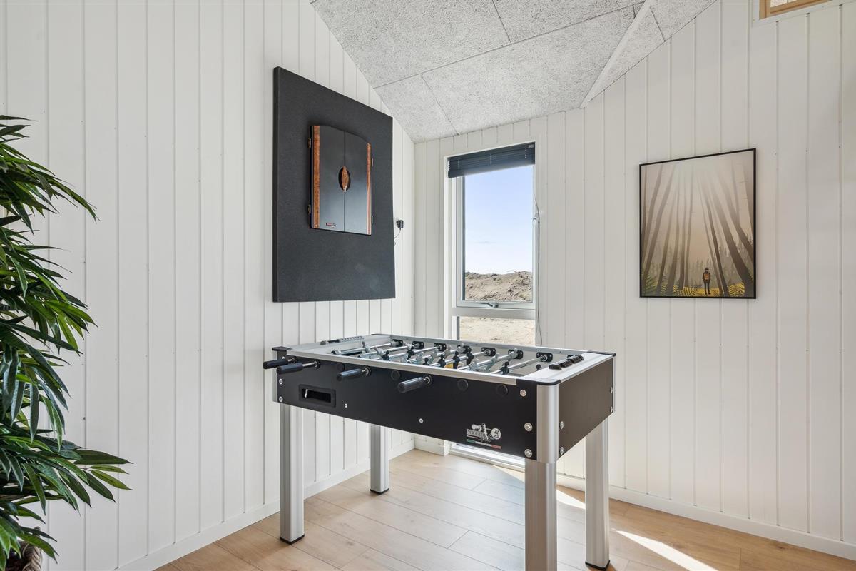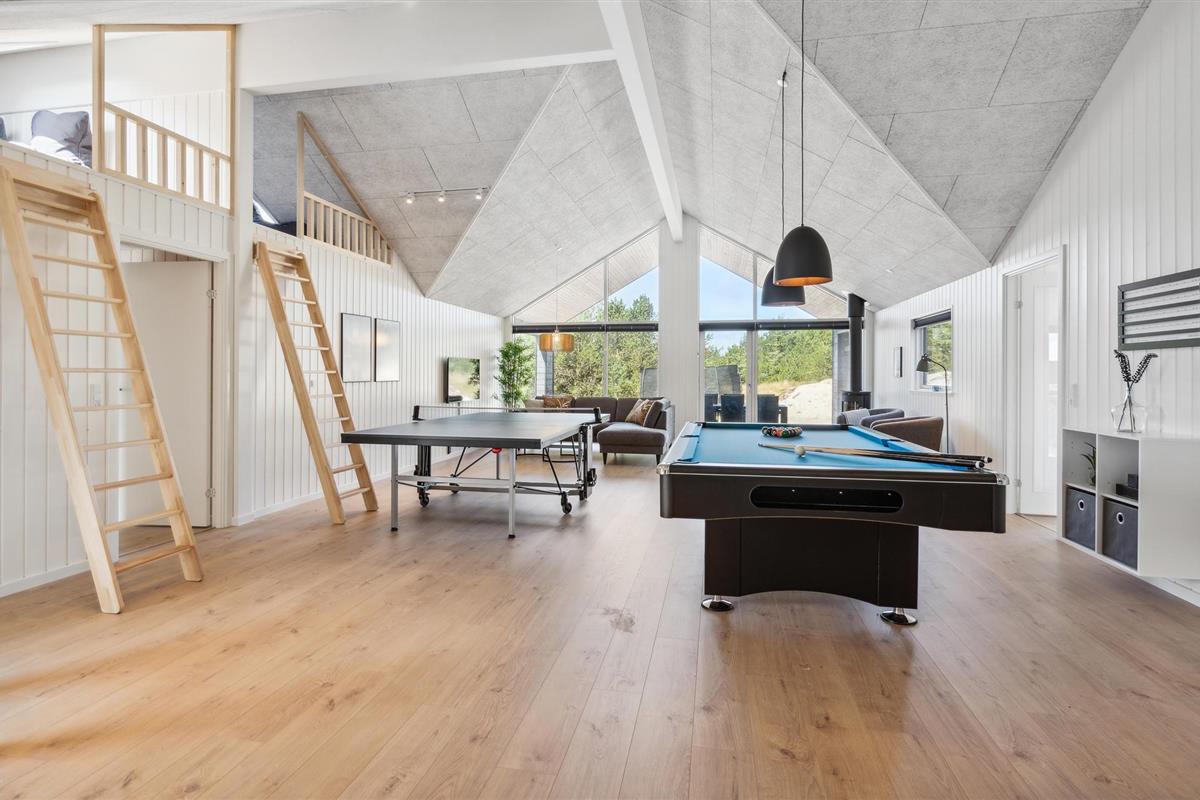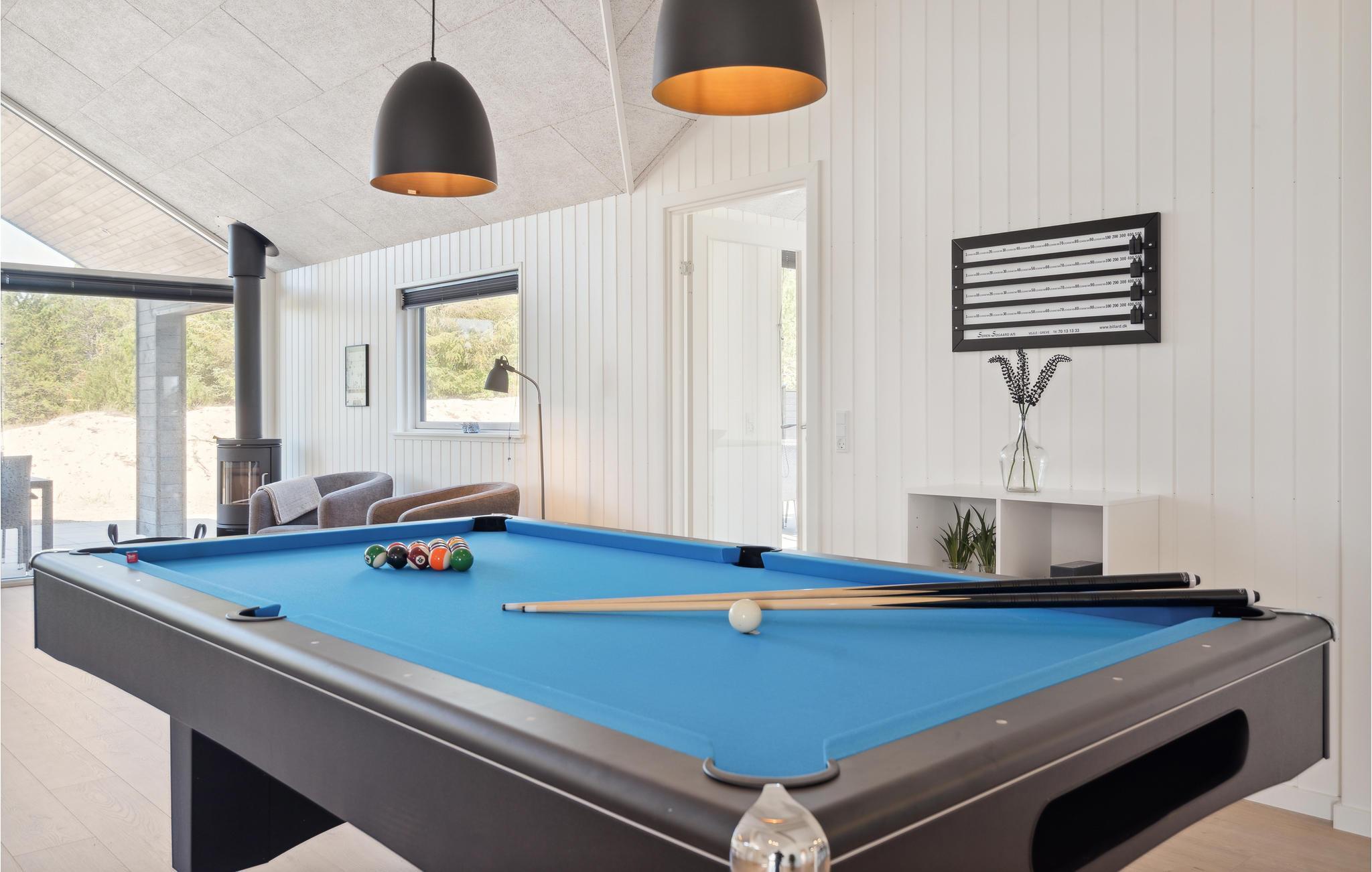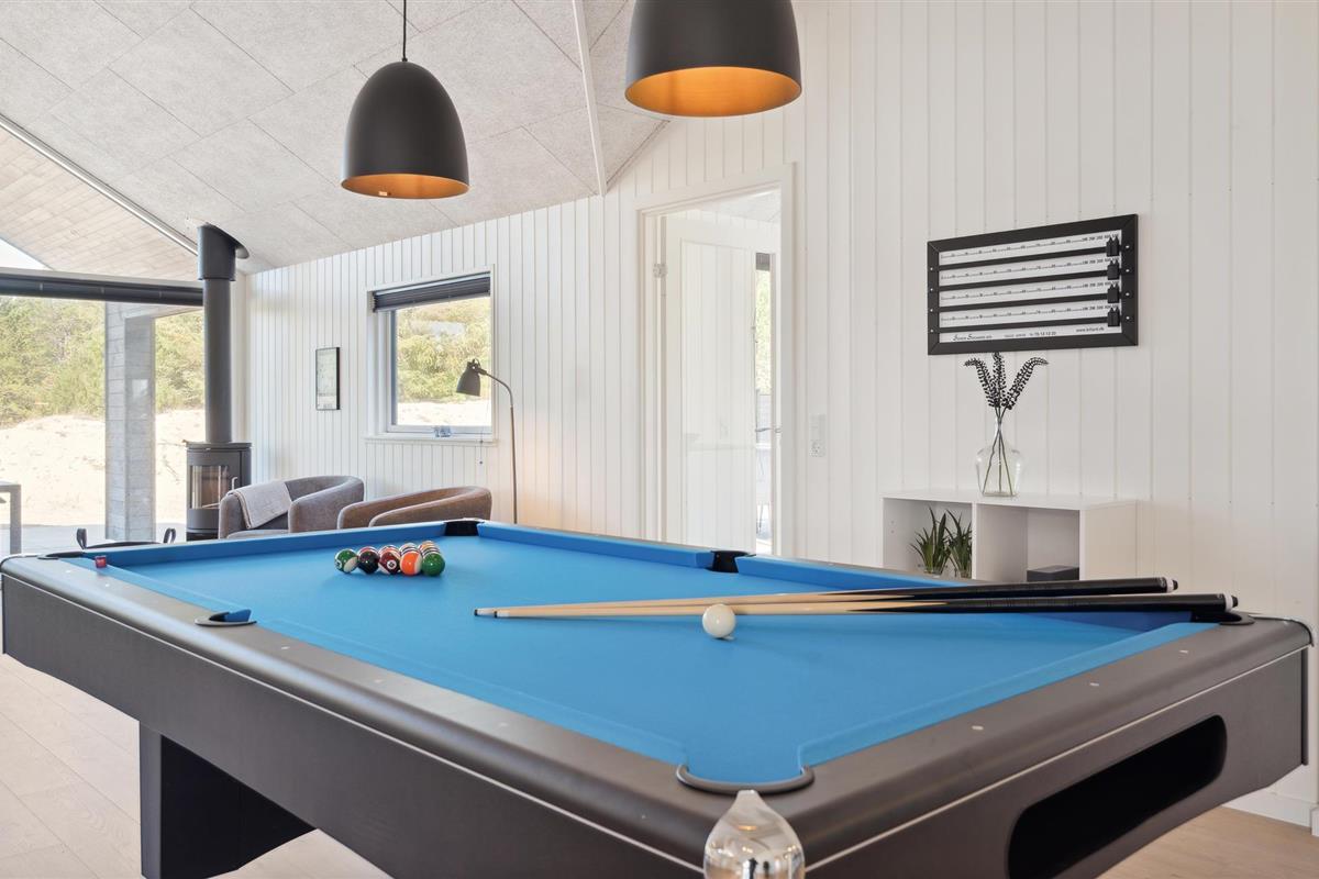 Dit goed uitgeruste vakantiehuis ligt tussen de Noordzee en Ringkøbing Fjord en is de perfecte plek voor een fantastische vakantie. Het biedt voldoende ruimte voor meerdere gezinnen of een groter reisgezelschap. Het huis is licht en modern met stijlvolle inrichtingsoplossingen die je verblijf extra comfortabel zullen maken. Geniet van uren zwemplezier in het zwembad, speel een potje tafeltennis of biljart in de activiteitenruimte en maak later van koken een gezamenlijk project in de stijlvolle keuken. Na een lange wandeling in de frisse lucht kun je opwarmen in de sauna of whirlpool. En 's avonds kun je het jezelf gemakkelijk maken op de bank voor de gezellige houtkachel.