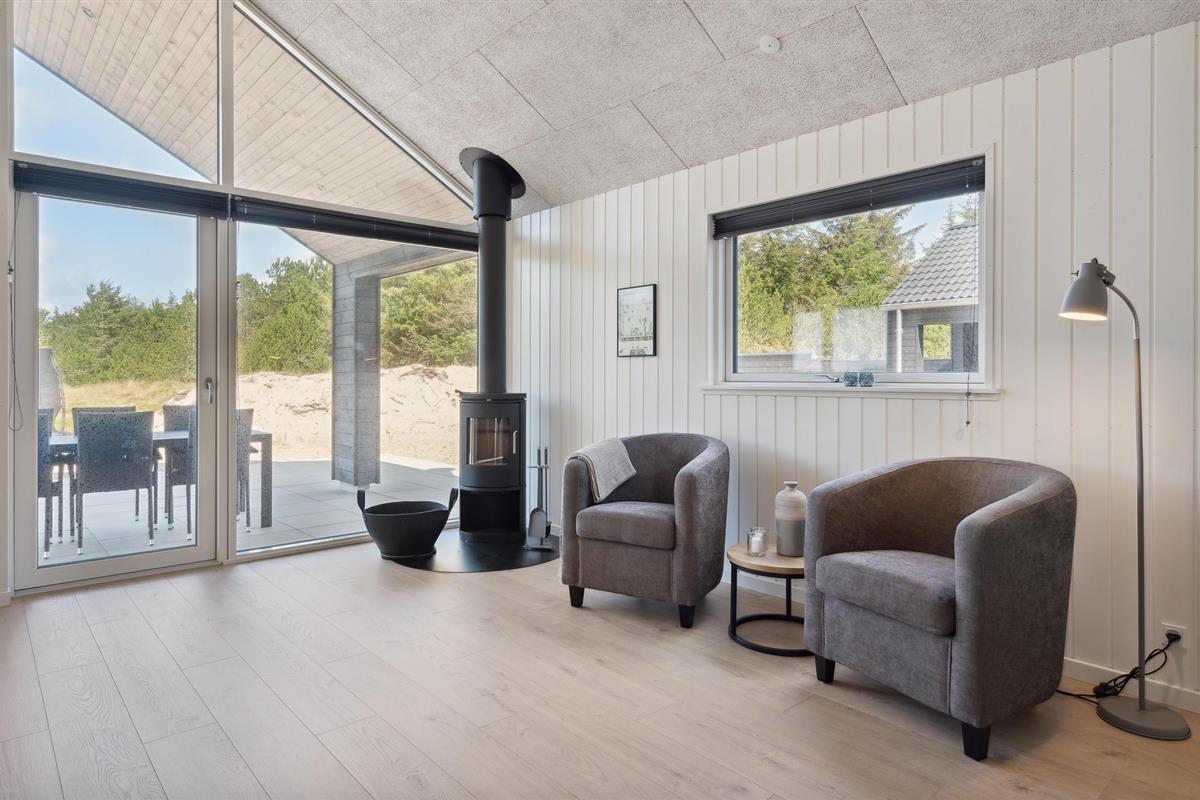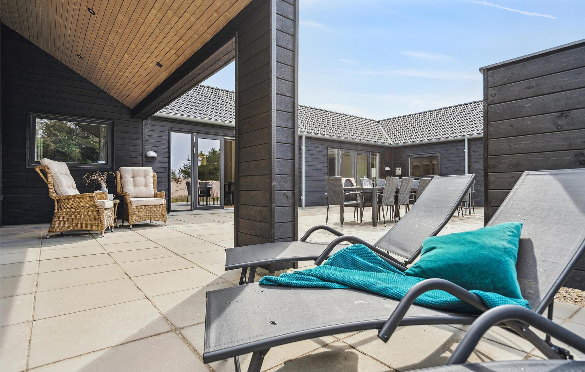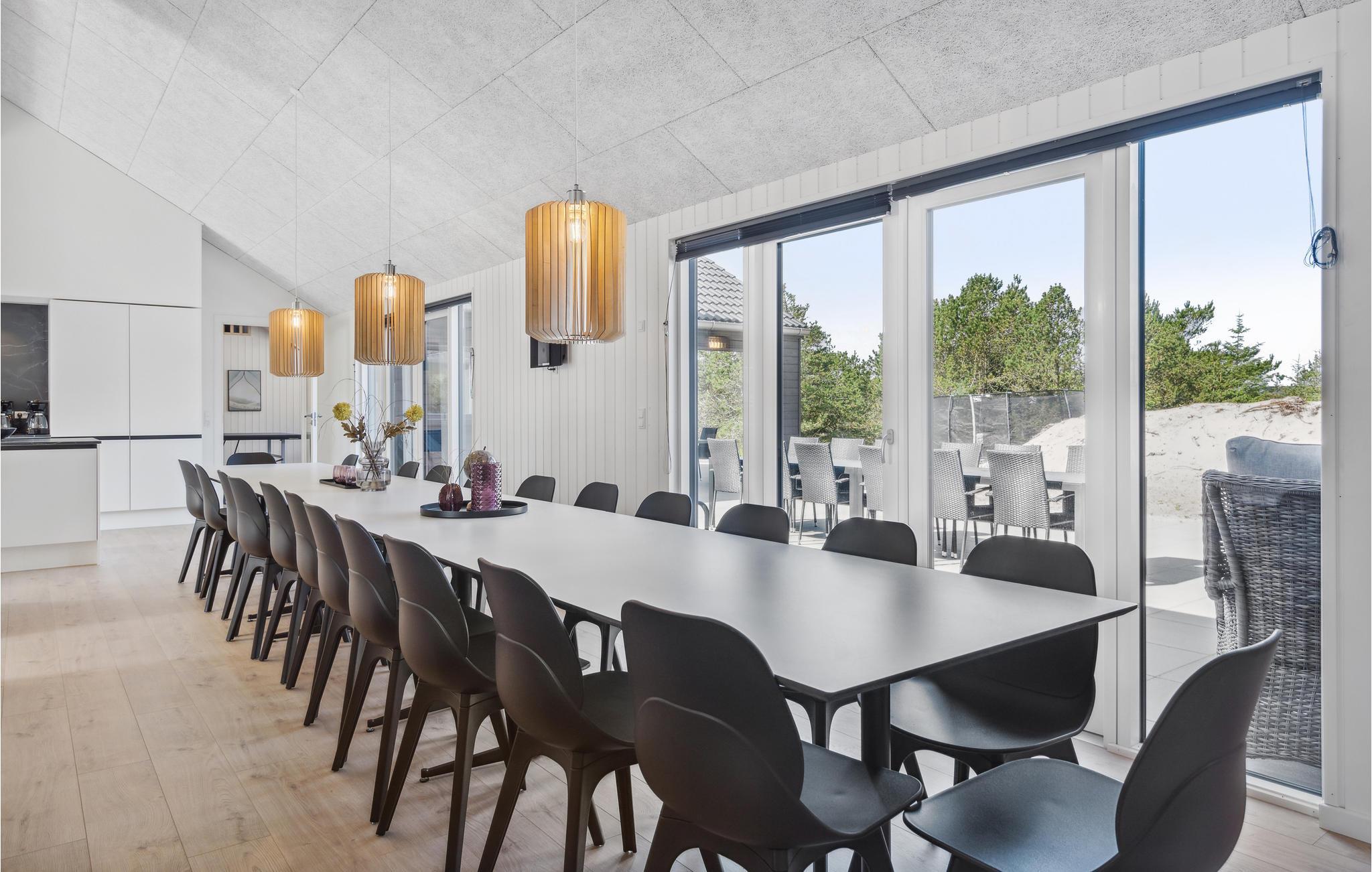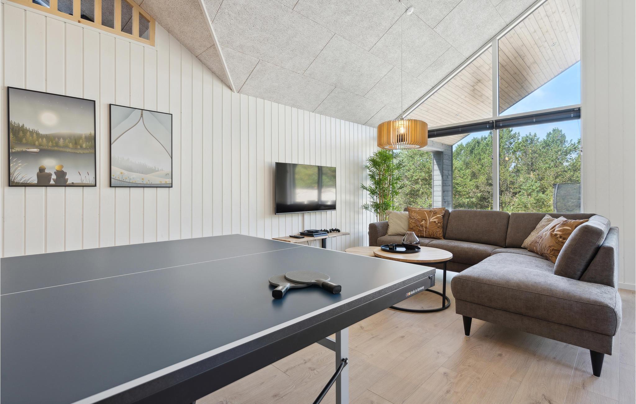 Dit goed uitgeruste vakantiehuis ligt tussen de Noordzee en Ringkøbing Fjord en is de perfecte plek voor een fantastische vakantie. Het biedt voldoende ruimte voor meerdere gezinnen of een groter reisgezelschap. Het huis is licht en modern met stijlvolle inrichtingsoplossingen die je verblijf extra comfortabel zullen maken. Geniet van uren zwemplezier in het zwembad, speel een potje tafeltennis of biljart in de activiteitenruimte en maak later van koken een gezamenlijk project in de stijlvolle keuken. Na een lange wandeling in de frisse lucht kun je opwarmen in de sauna of whirlpool. En 's avonds kun je het jezelf gemakkelijk maken op de bank voor de gezellige houtkachel.