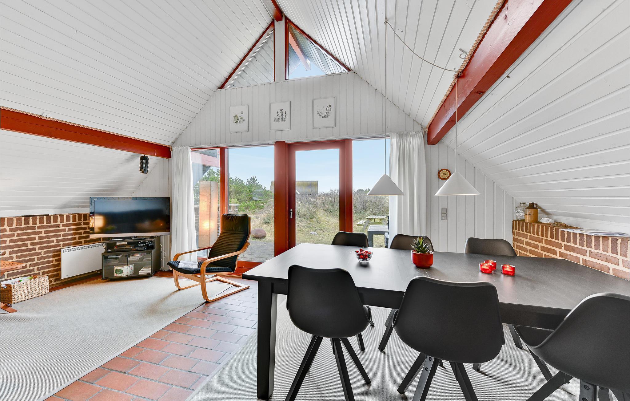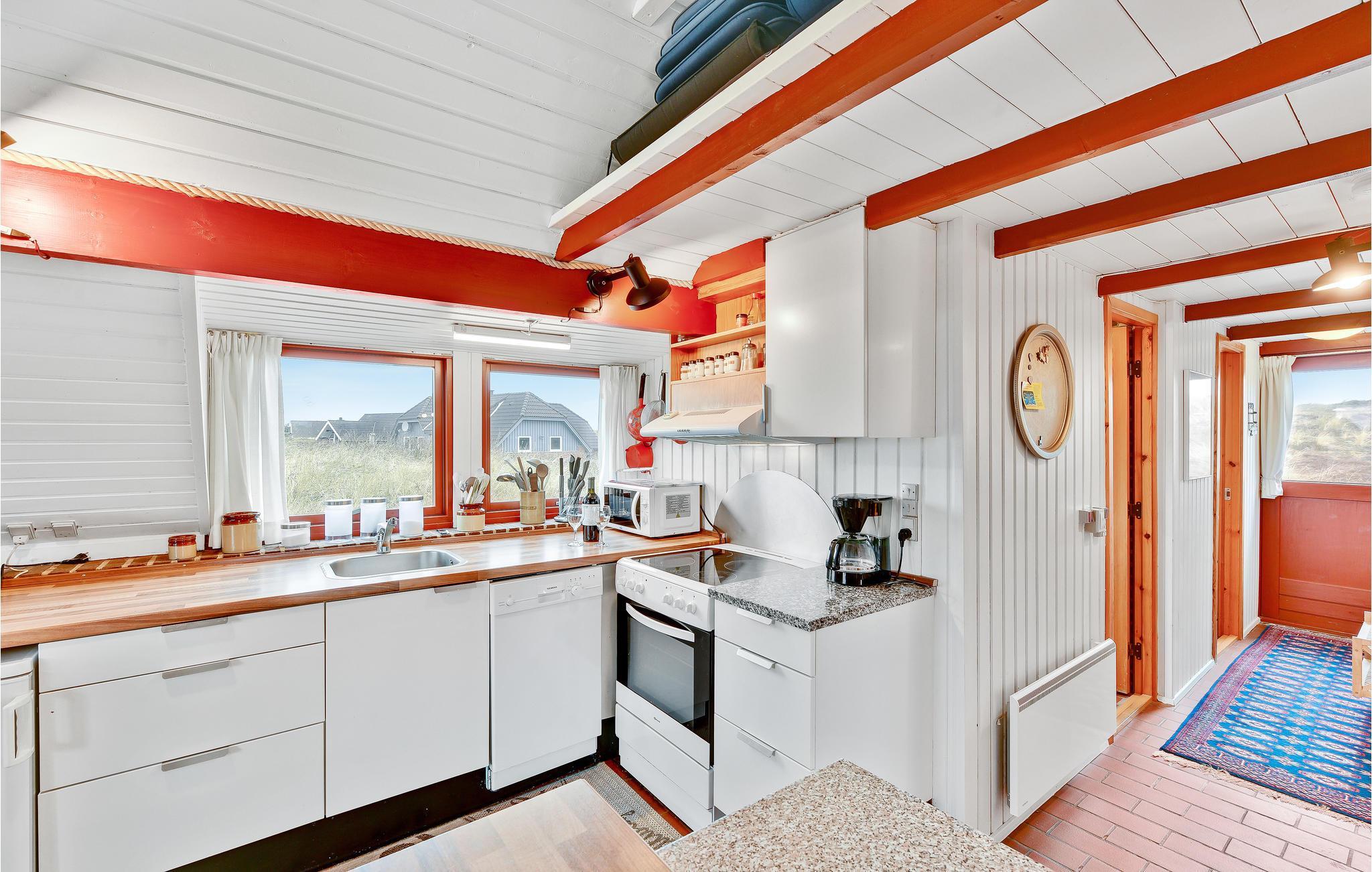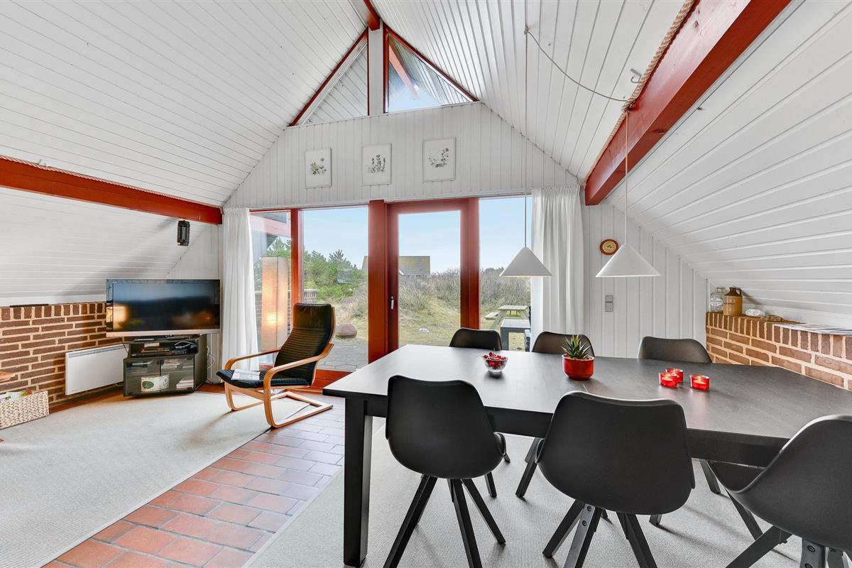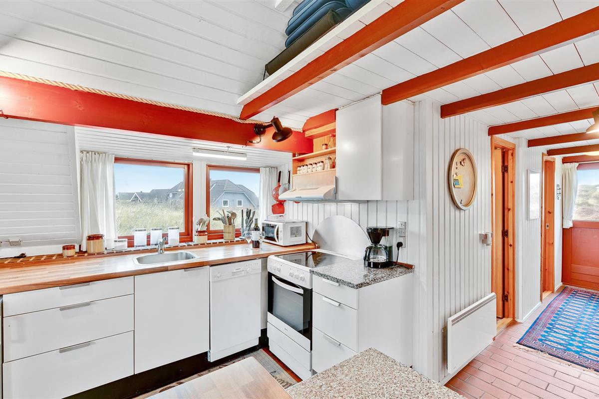 Gezellig vakantiehuis met rieten dak op een mooi natuurperceel in Bjerregård tussen Ringkøbing Fjord en de Noordzee. De gezellige keuken-woonkamer ligt in het midden van het huis. Grote ramen zorgen voor een goede lichtinval. Er zijn twee tweepersoons slaapkamers en een slaapkamer met een stapelbed en een slaapbank. Hier kunt u de wind en het gebrul van de zee van dichtbij meemaken. Geniet ervan op de twee terrassen of tijdens verkenningen in het prachtige duinlandschap. Er zijn goede wandel- en fietspaden in de omgeving, fietspaden brengen u van Nymindegab in het zuiden naar Søndervig in het noorden. Het allerbeste aan Hvide Sande zijn de brede, witte zandstranden. Ze zijn het hele jaar door de beste speelplaats voor kinderen en volwassenen en nodigen uit tot lange strandwandelingen. Hvide Sande is ook een goede plaats om te winkelen, koffie te drinken en uit eten te gaan. Er is ook een haven. Paardrijden in de natuur rond Ringkøbing Fjord is een heel bijzondere ervaring. U kunt rijden door de duinen, de bossen of langs het strand.