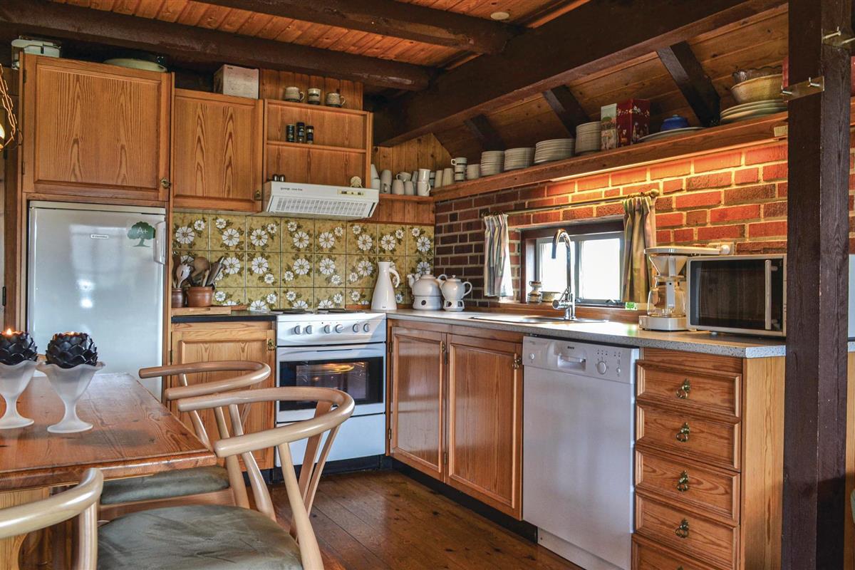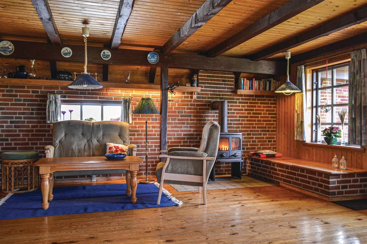 Dit eenvoudige, gezellige vakantiehuis in Bjerregård biedt u een goede uitvalsbasis voor een ontspannen vakantie tussen Ringkøbing Fjord en de wilde Noordzee. Het huis is omgeven door natuurgrond en nodigt u uit om te genieten van de rust en de schoonheid van het duinlandschap. Binnen in het huis vind je een charmante woonkamer met rustieke meubels, balkenplafond en bakstenen muren. Maak het jezelf gemakkelijk in de gezellige zitmeubels, terwijl de houtkachel voor knusse warmte zorgt op koelere dagen. De open woonkamer loopt over in de goed uitgeruste keuken, die alles heeft wat je nodig hebt om samen met gemak maaltijden te bereiden. Neem plaats aan de eettafel en plan je excursies in de omgeving.