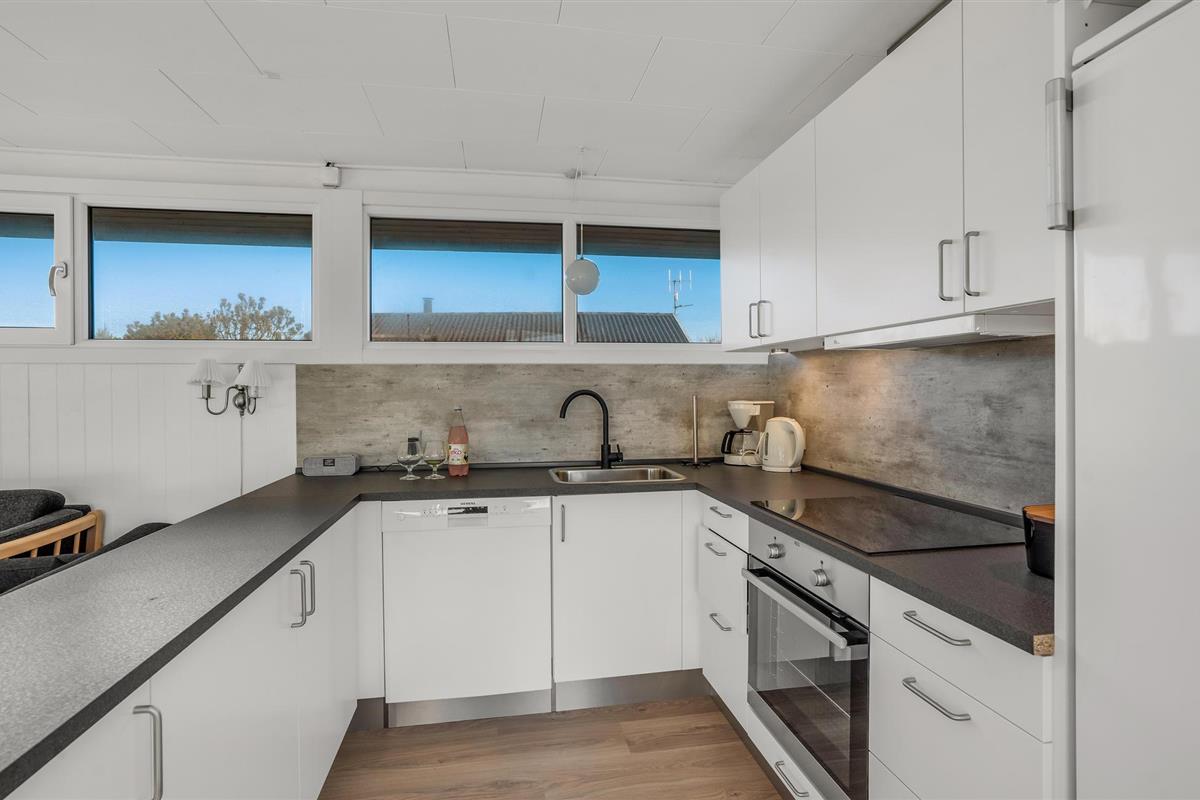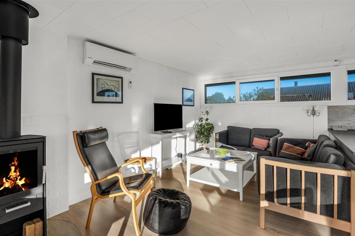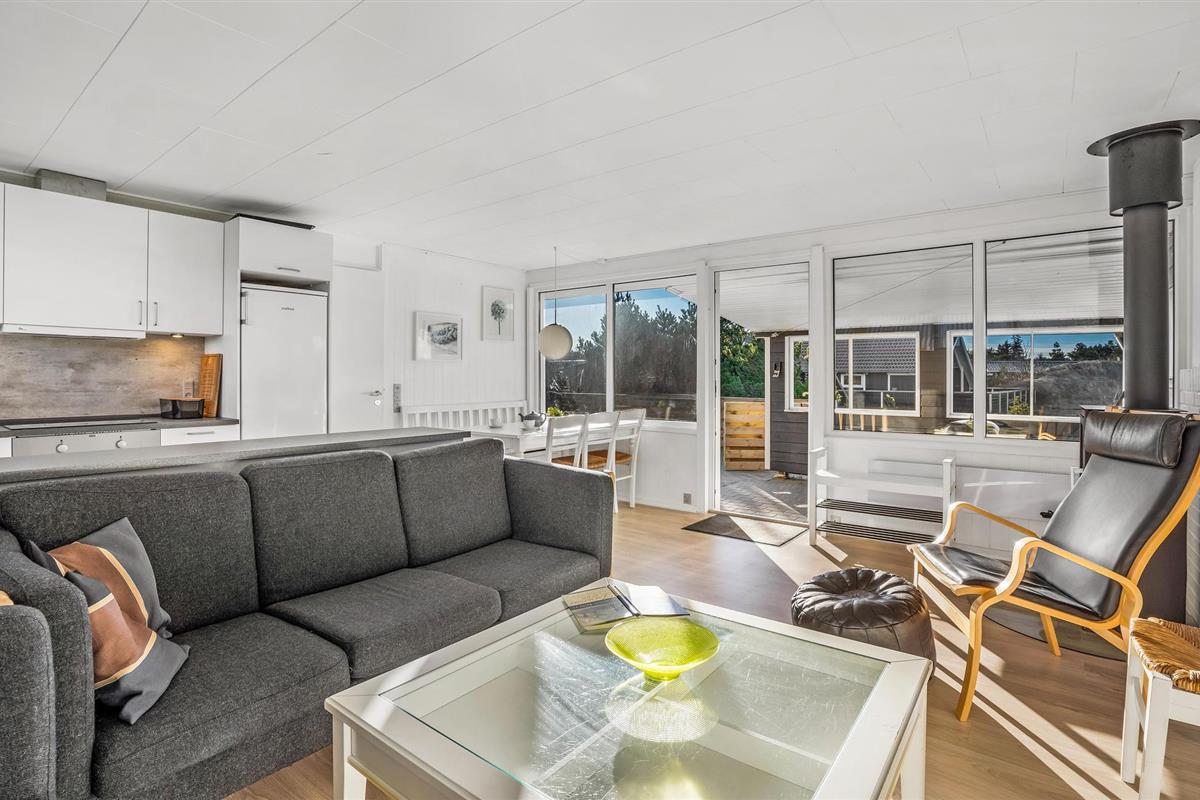 Ontspan in dit licht en modern vakantiehuis in Bjerregård, met houtkachel, groot terras en prachtig uitzicht op de natuur.