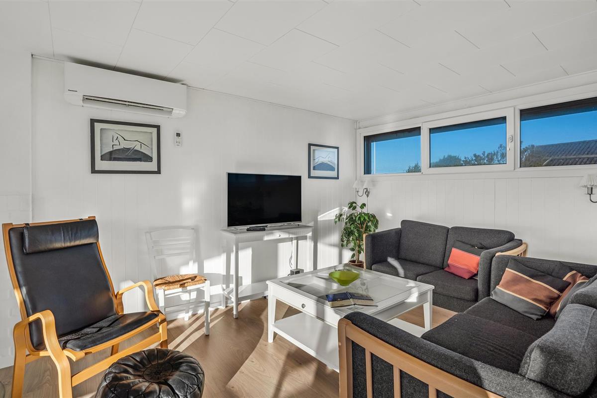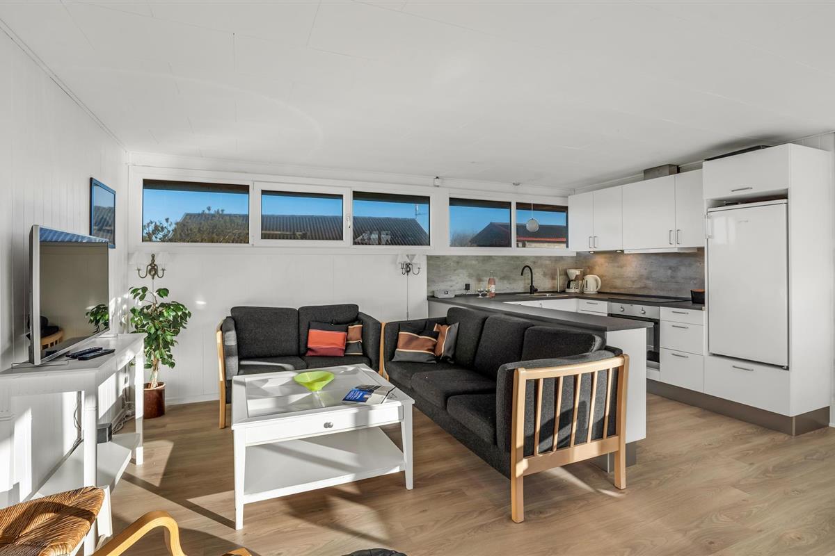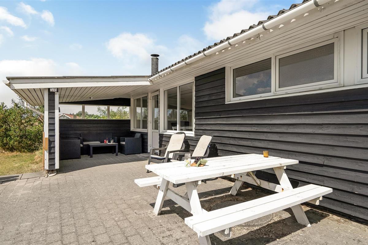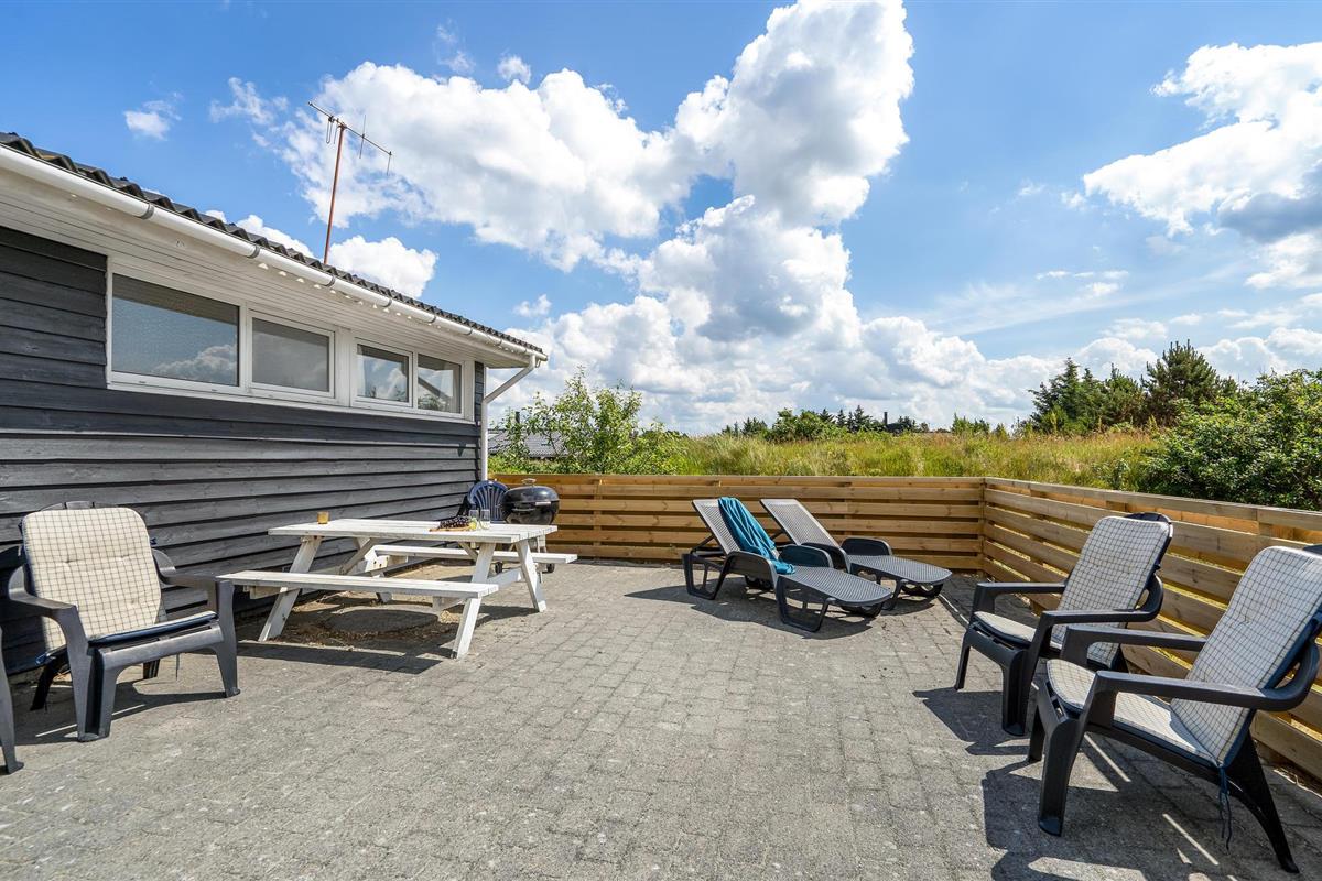 Ontspan in dit licht en modern vakantiehuis in Bjerregård, met houtkachel, groot terras en prachtig uitzicht op de natuur.