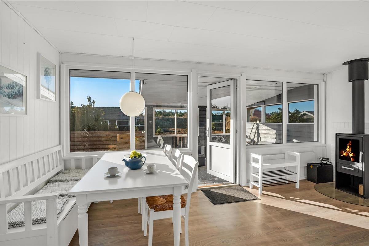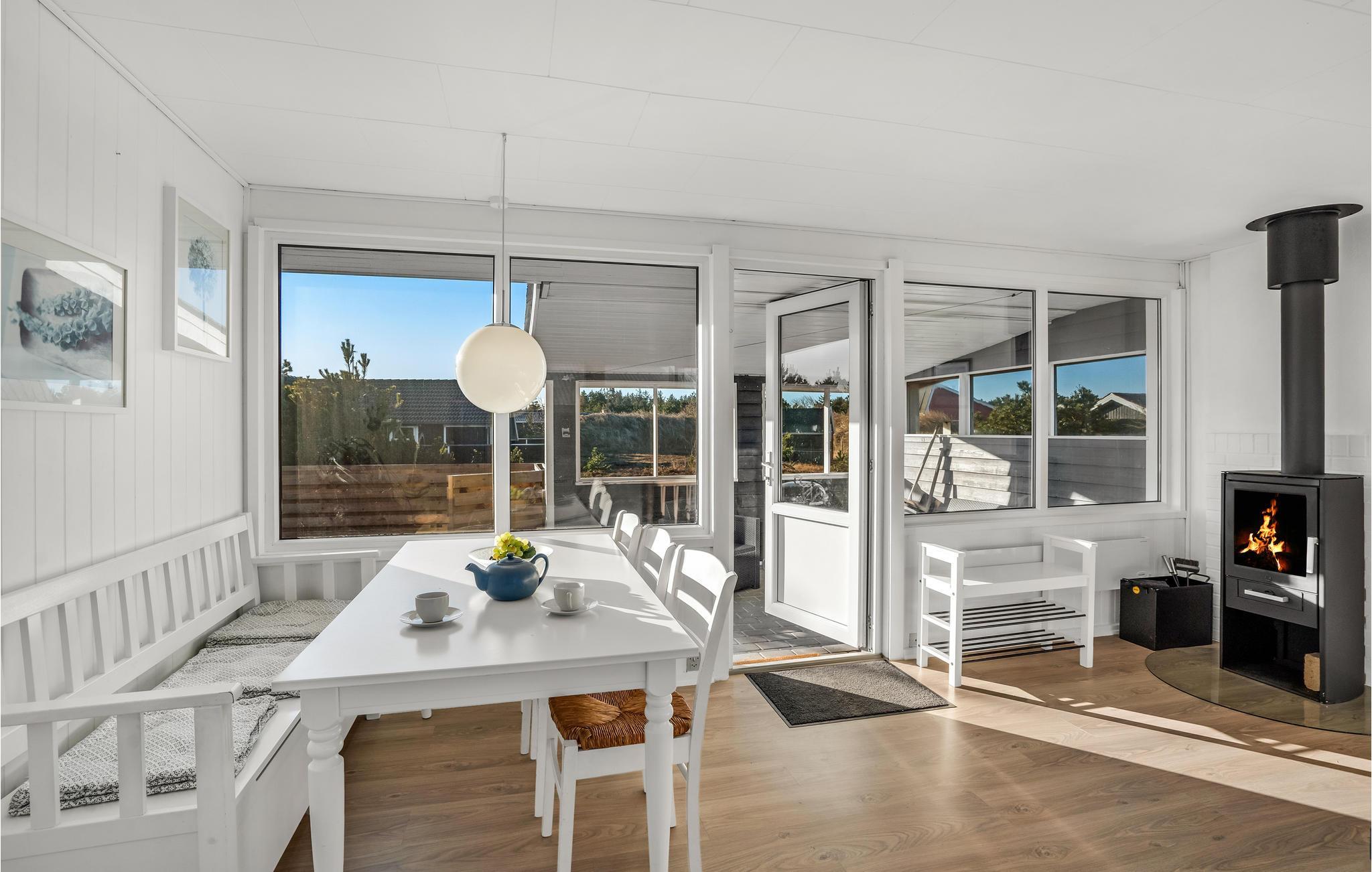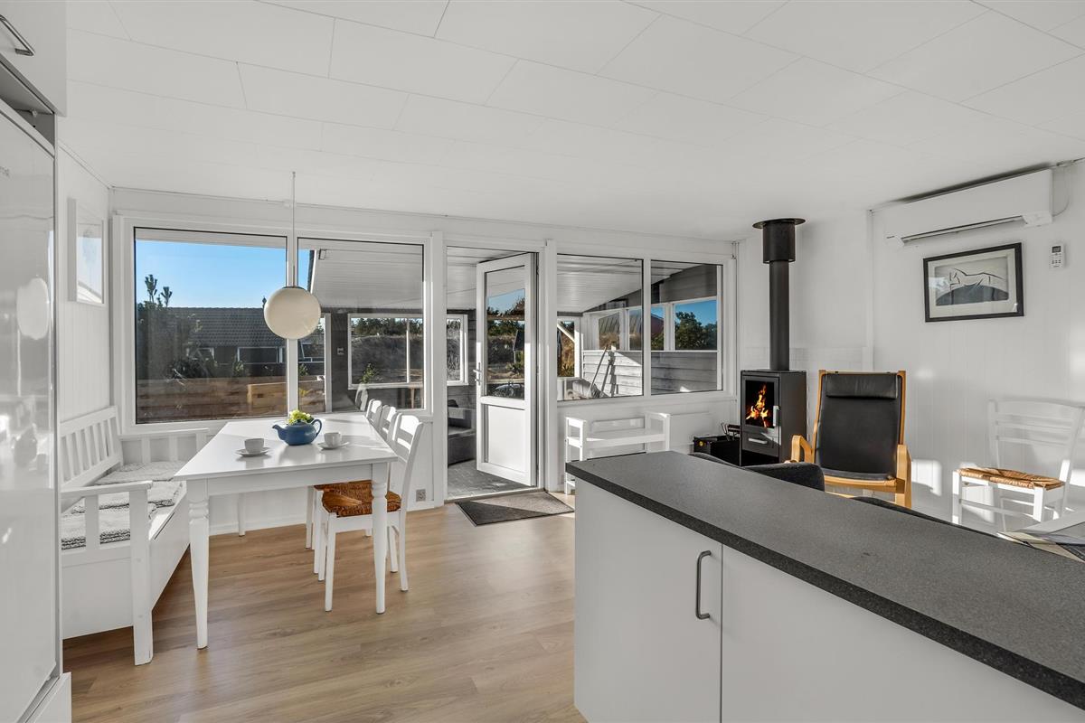 Je vakantiehuis biedt je een eenvoudige maar comfortabele uitvalsbasis voor een ontspannen vakantie in Bjerregård. Het huis ligt op een mooi natuurgrondstuk. Het huis is licht en vriendelijk en heeft een moderne vakantiehuisstijl. De woonkamer heeft een gezellige zithoek met een houtkachel. De grote ramen laten veel licht binnen en bieden een prachtig uitzicht op de omgeving. Direct aangrenzend is de open eethoek, ideaal voor gezellige maaltijden. De moderne keuken heeft alles wat je nodig hebt om eenvoudige maaltijden te bereiden.