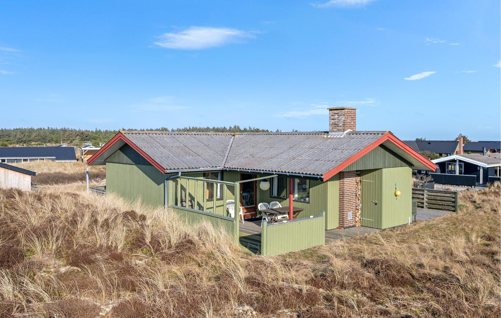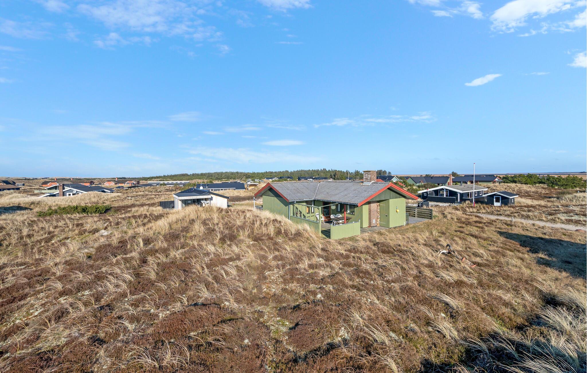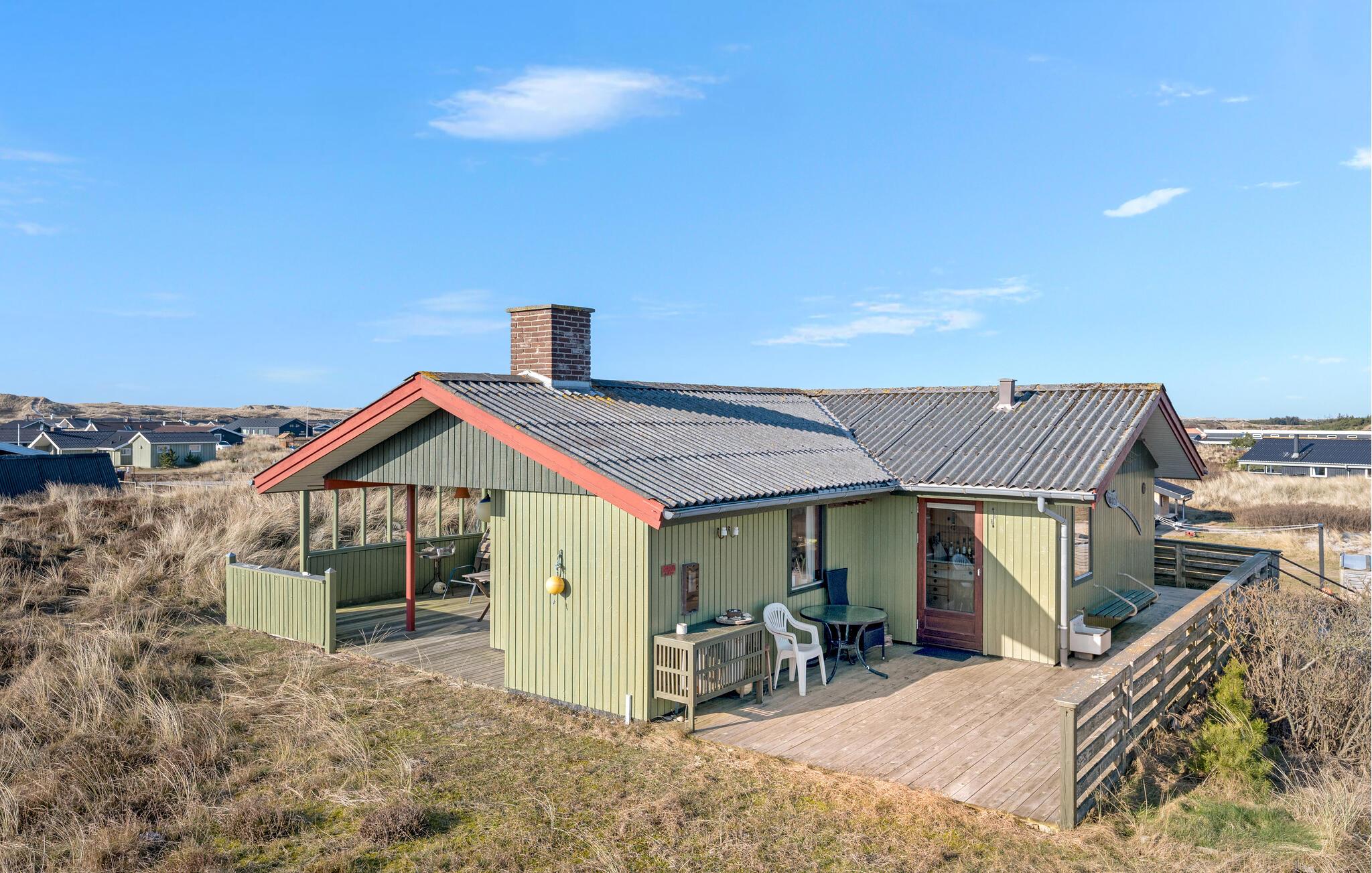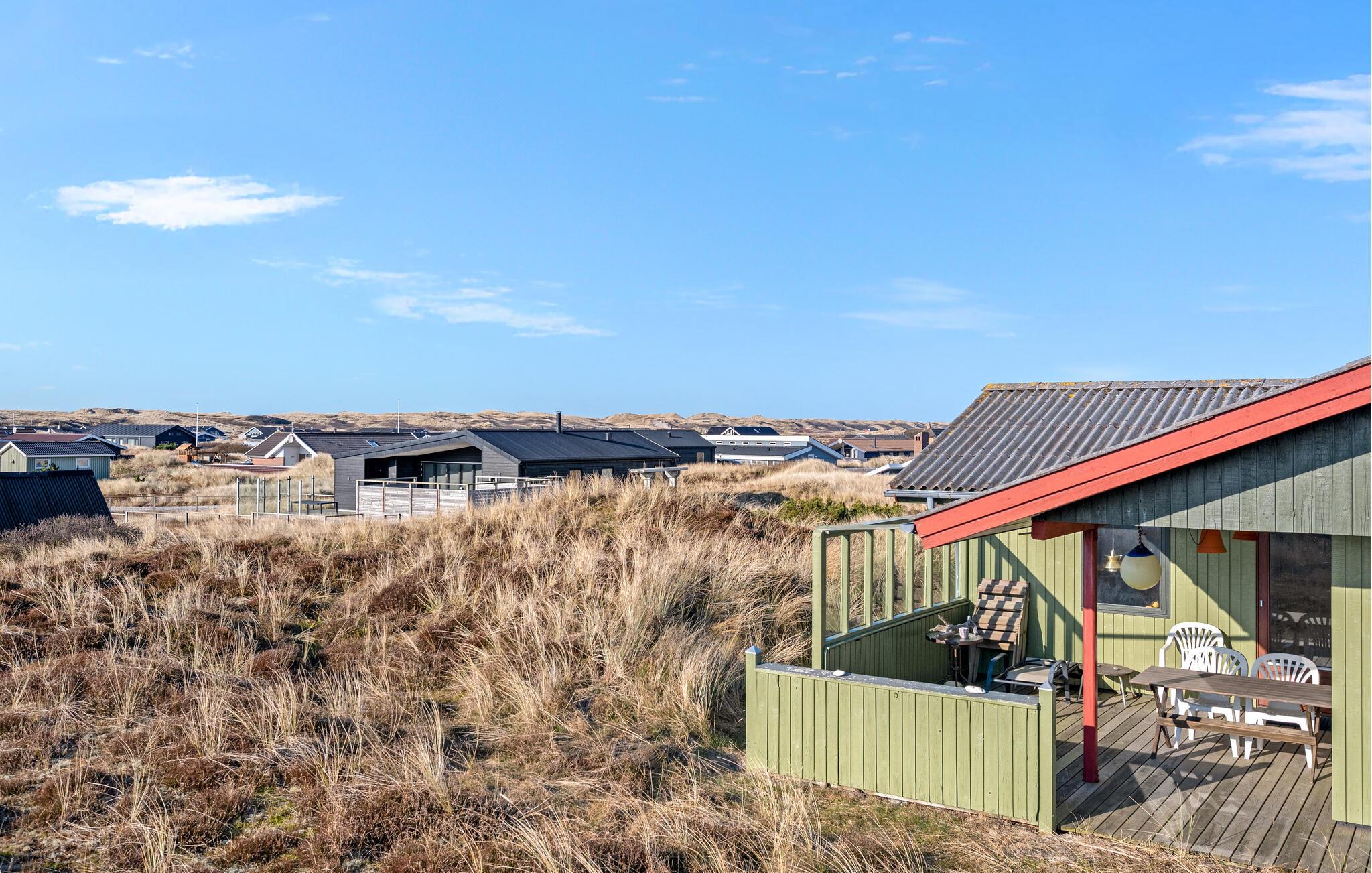 Geniet van een sfeervol vakantiehuis in Hvide Sande met sauna, houtkachel en prachtig uitzicht op de duinen.