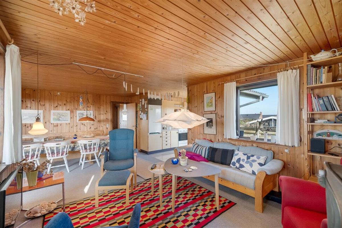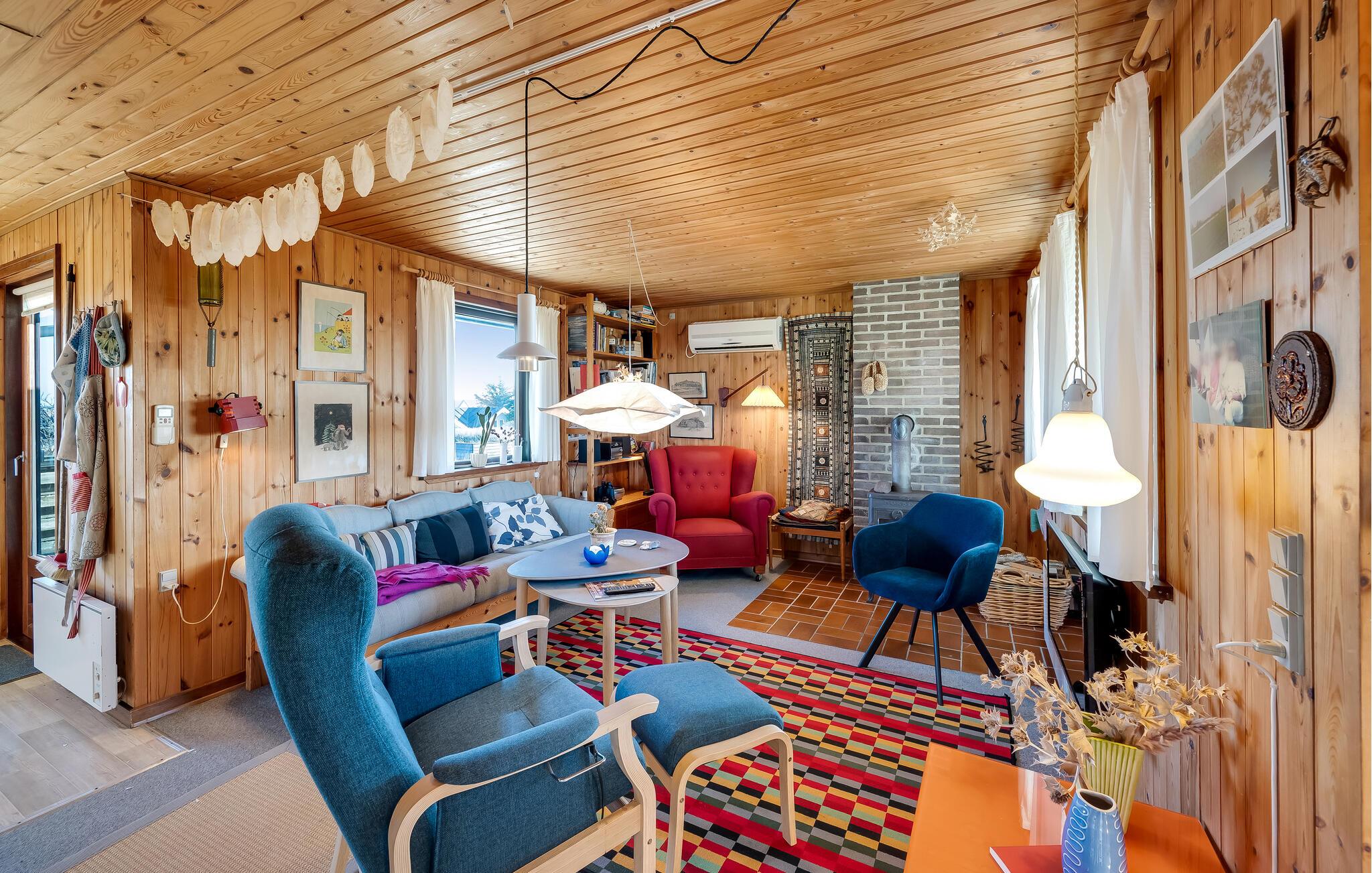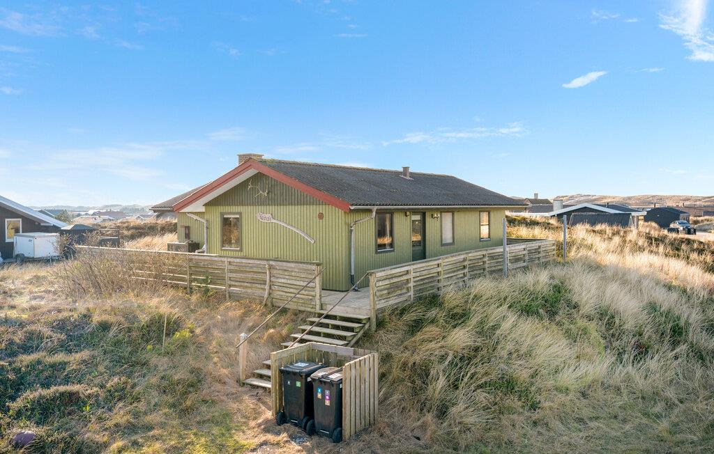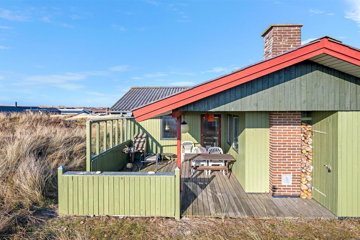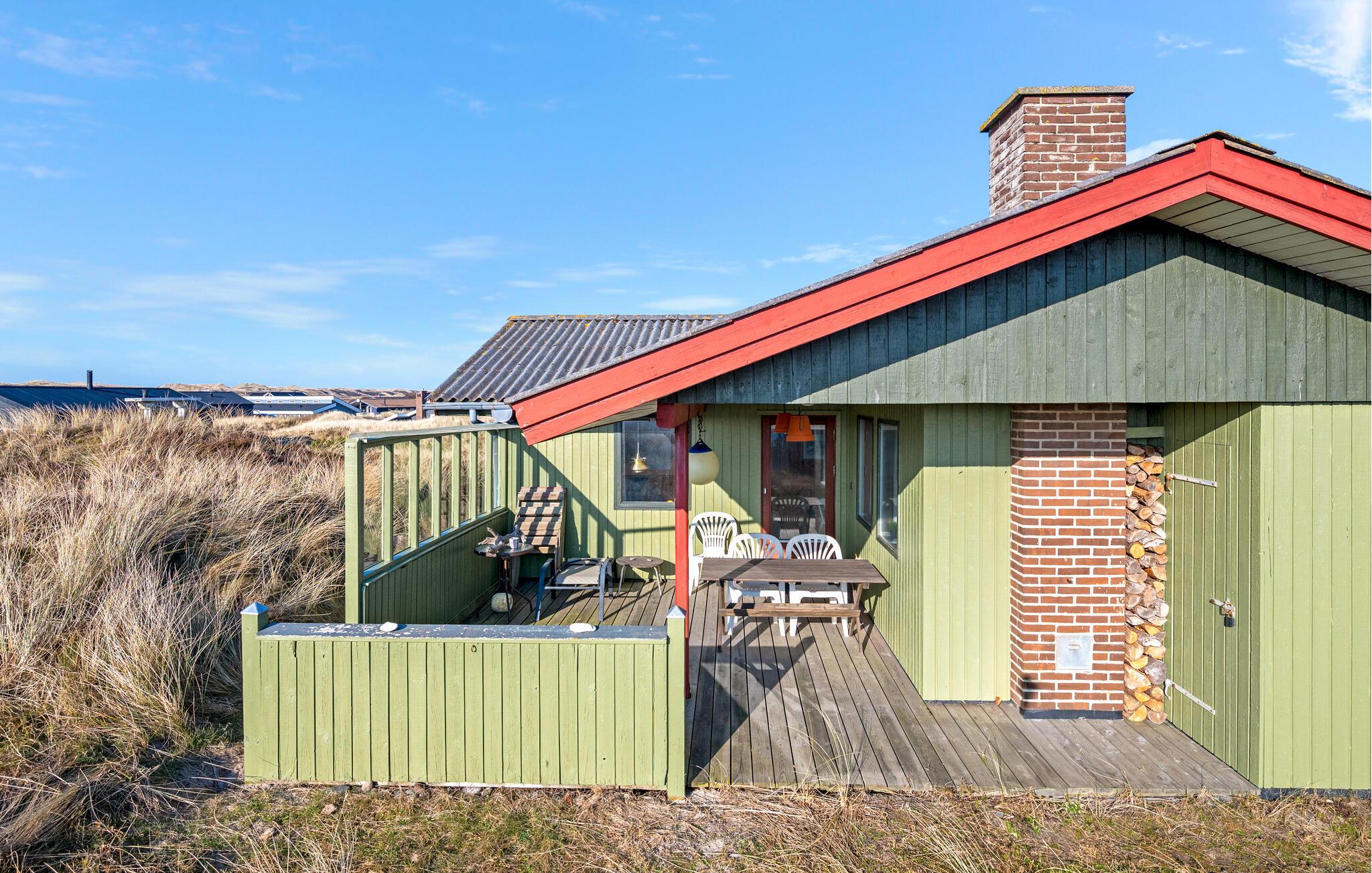 Geniet van een sfeervol vakantiehuis in Hvide Sande met sauna, houtkachel en prachtig uitzicht op de duinen.