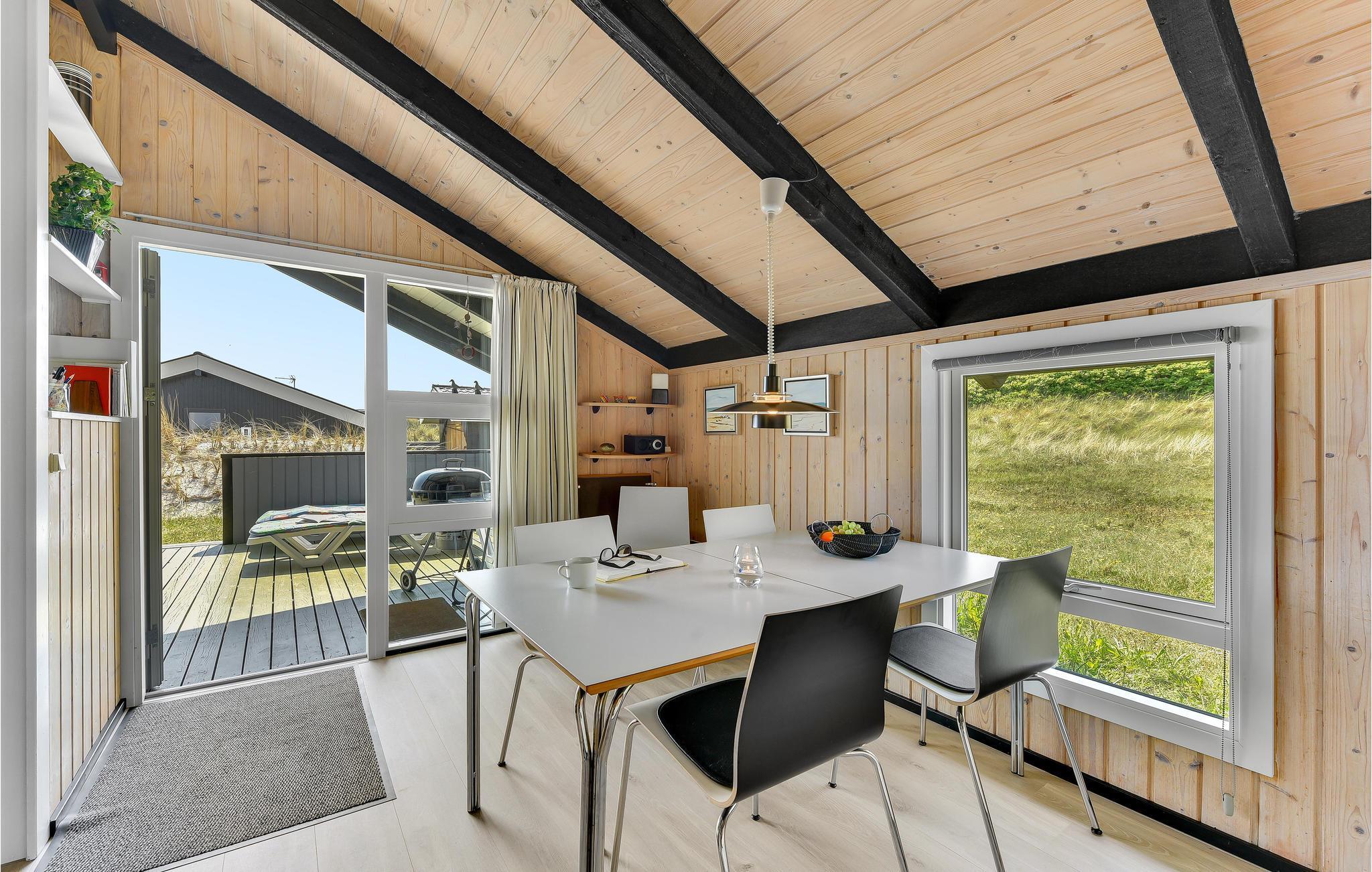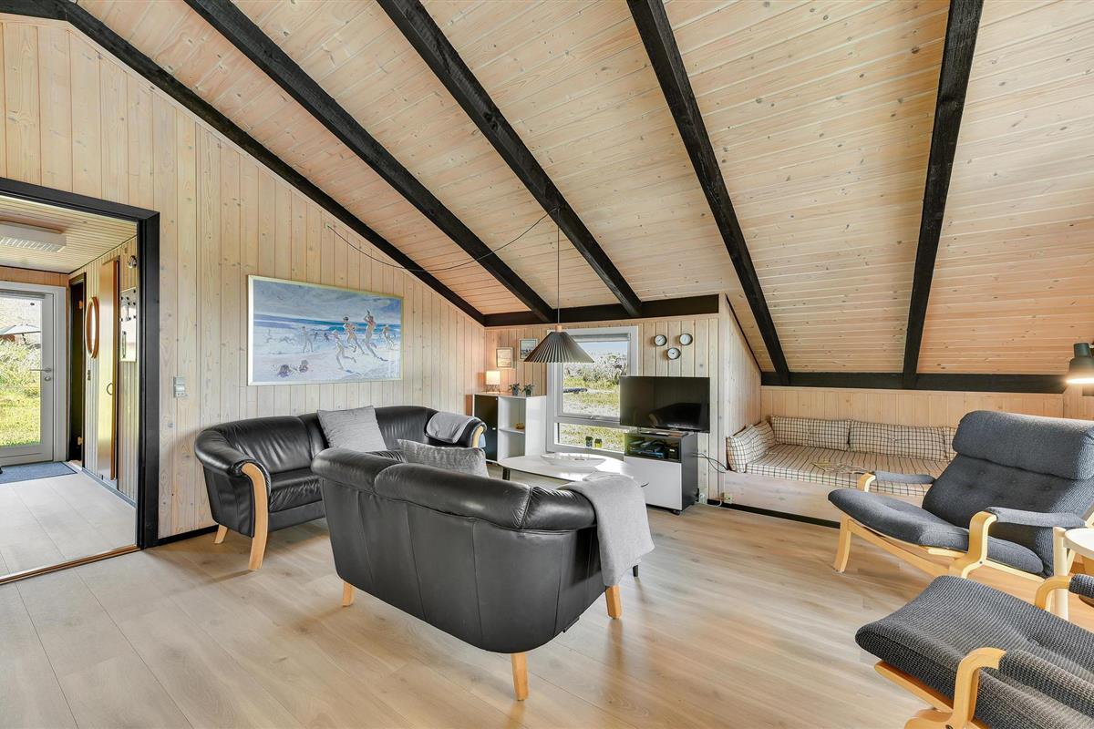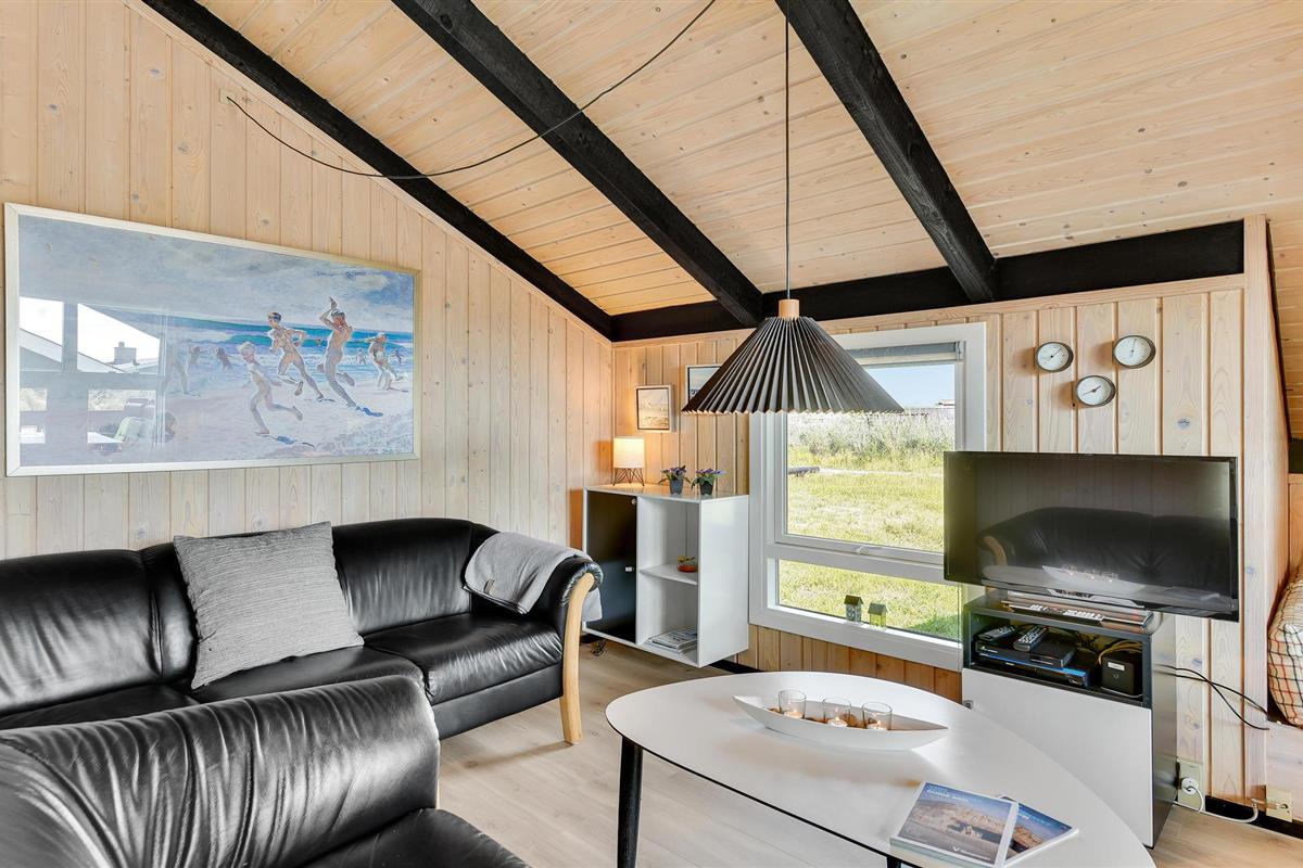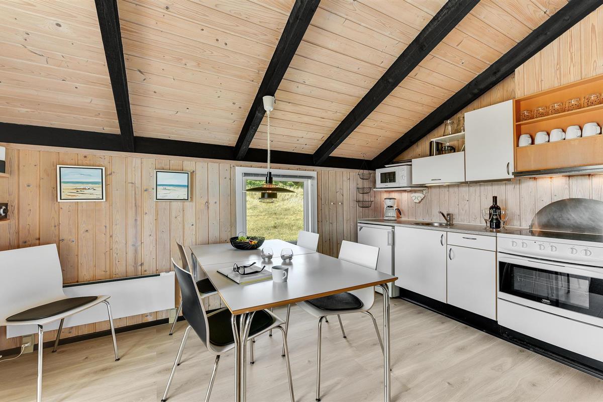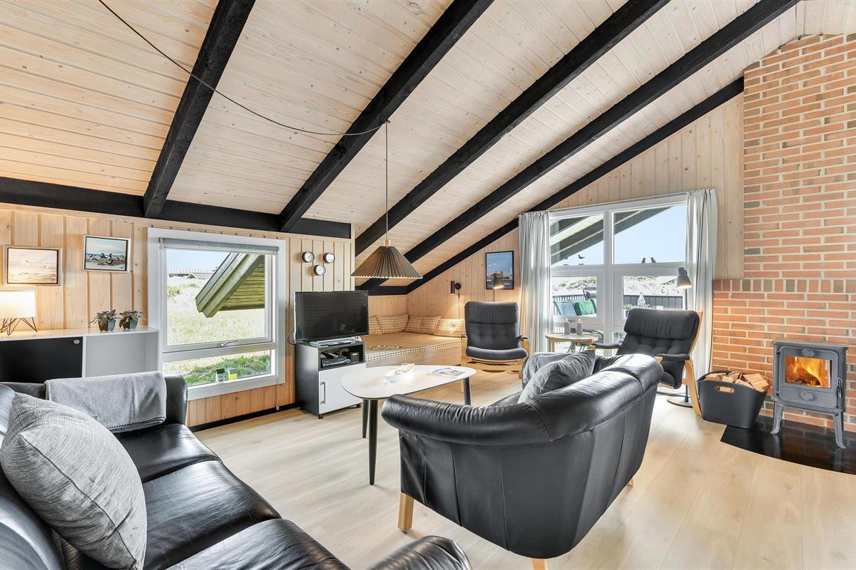 Hier woont u aan de rand van de duinen, met aan de ene kant het Ringkøbing Fjord en aan de andere kant de Noordzee. U kunt het zoute water ruiken want u woont slechts 50 m van het strand. Geniet van het geluid van de golven op het deels overdekte en zo goed als omheinde terras. Er is een schommel en een zandbak op het natuurlijke perceel.