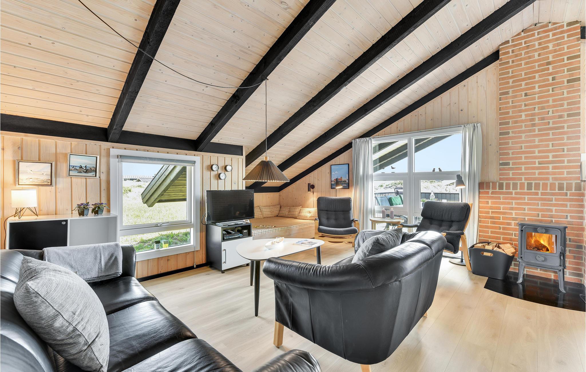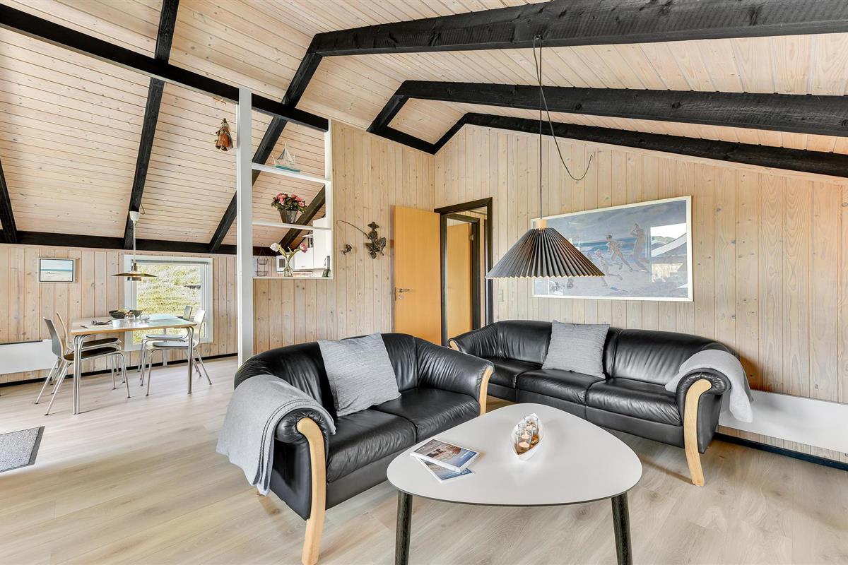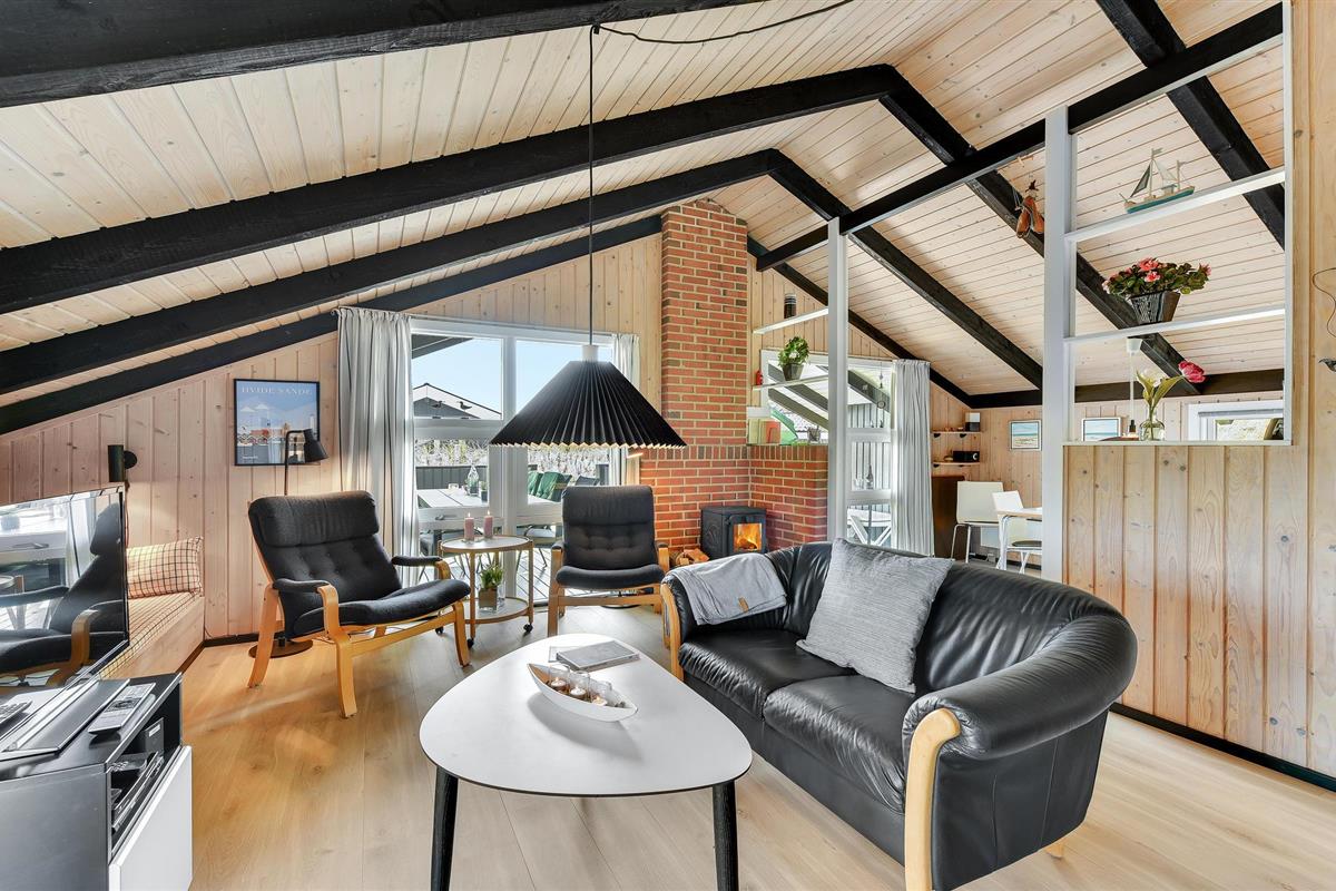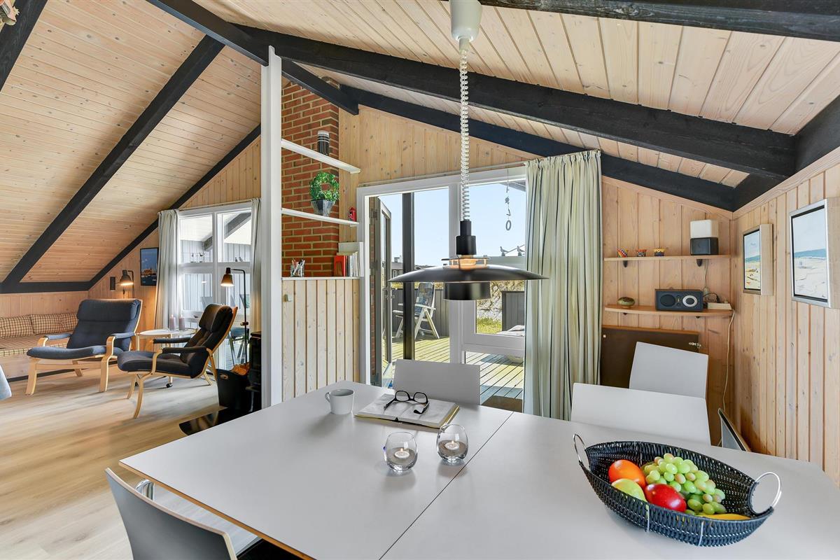 Hier woont u aan de rand van de duinen, met aan de ene kant het Ringkøbing Fjord en aan de andere kant de Noordzee. U kunt het zoute water ruiken want u woont slechts 50 m van het strand. Geniet van het geluid van de golven op het deels overdekte en zo goed als omheinde terras. Er is een schommel en een zandbak op het natuurlijke perceel.