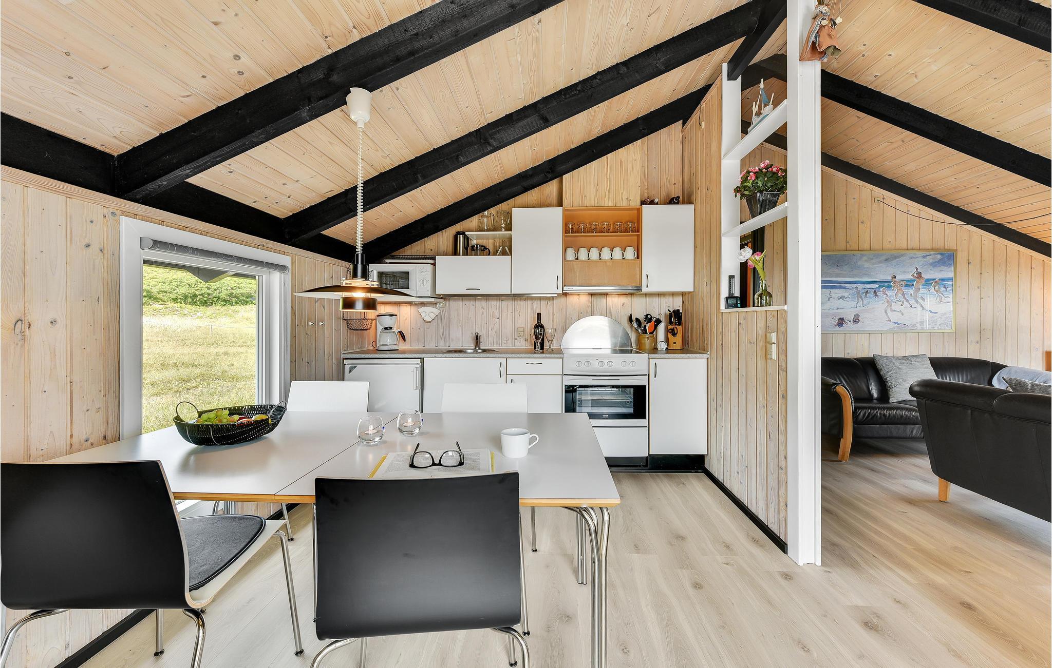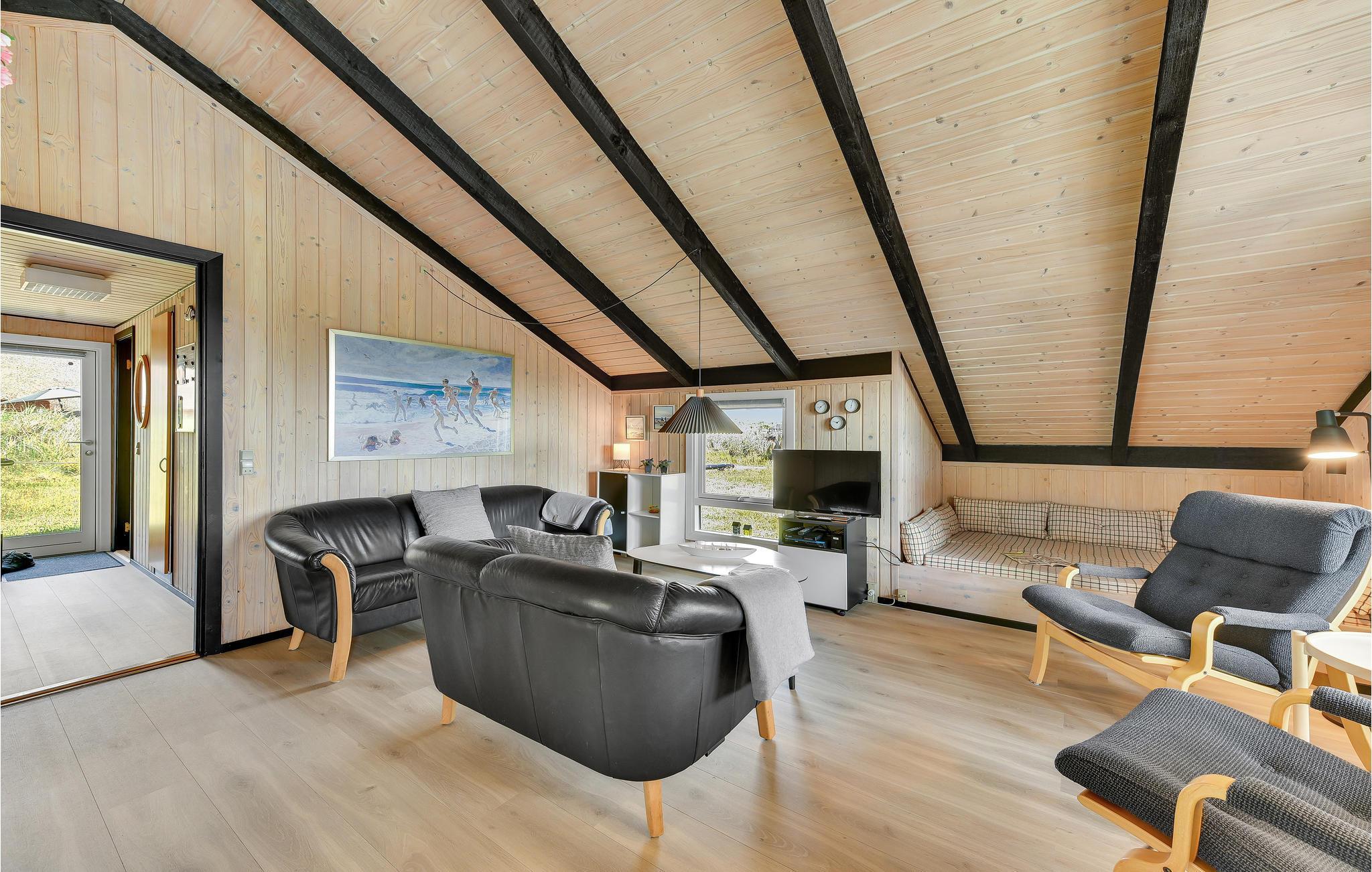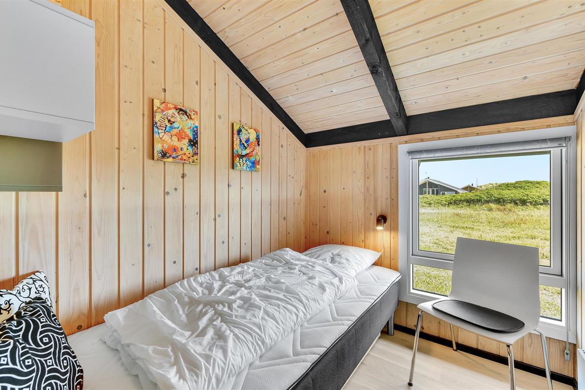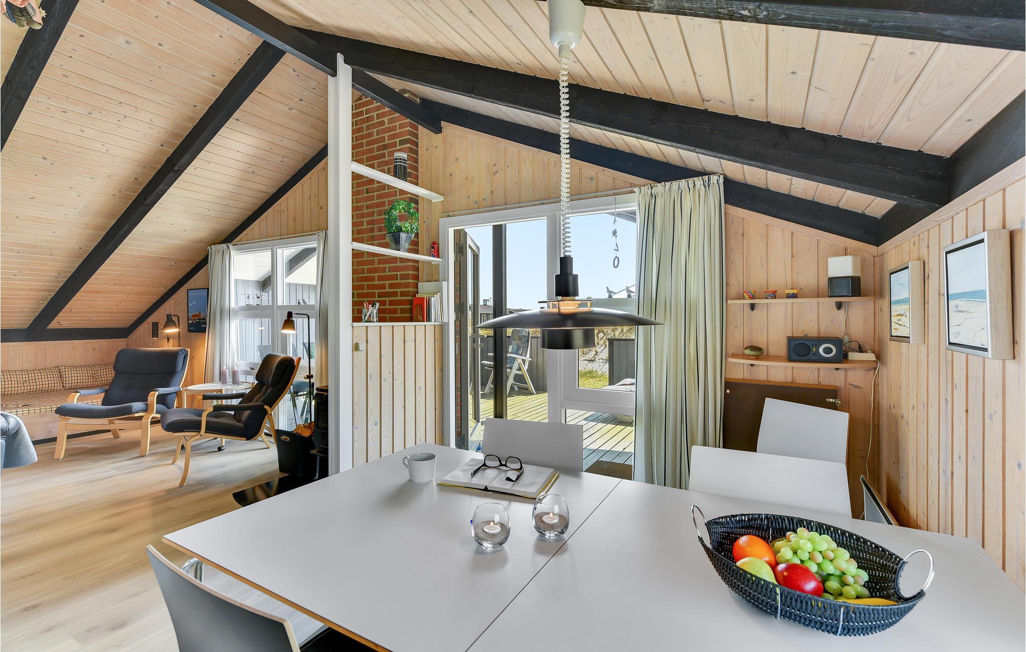 Hier woont u aan de rand van de duinen, met aan de ene kant het Ringkøbing Fjord en aan de andere kant de Noordzee. U kunt het zoute water ruiken want u woont slechts 50 m van het strand. Geniet van het geluid van de golven op het deels overdekte en zo goed als omheinde terras. Er is een schommel en een zandbak op het natuurlijke perceel.