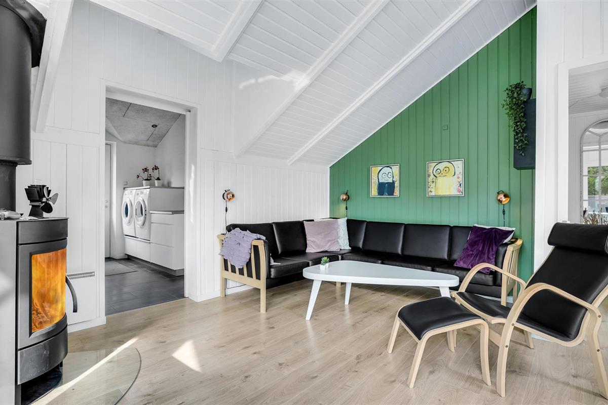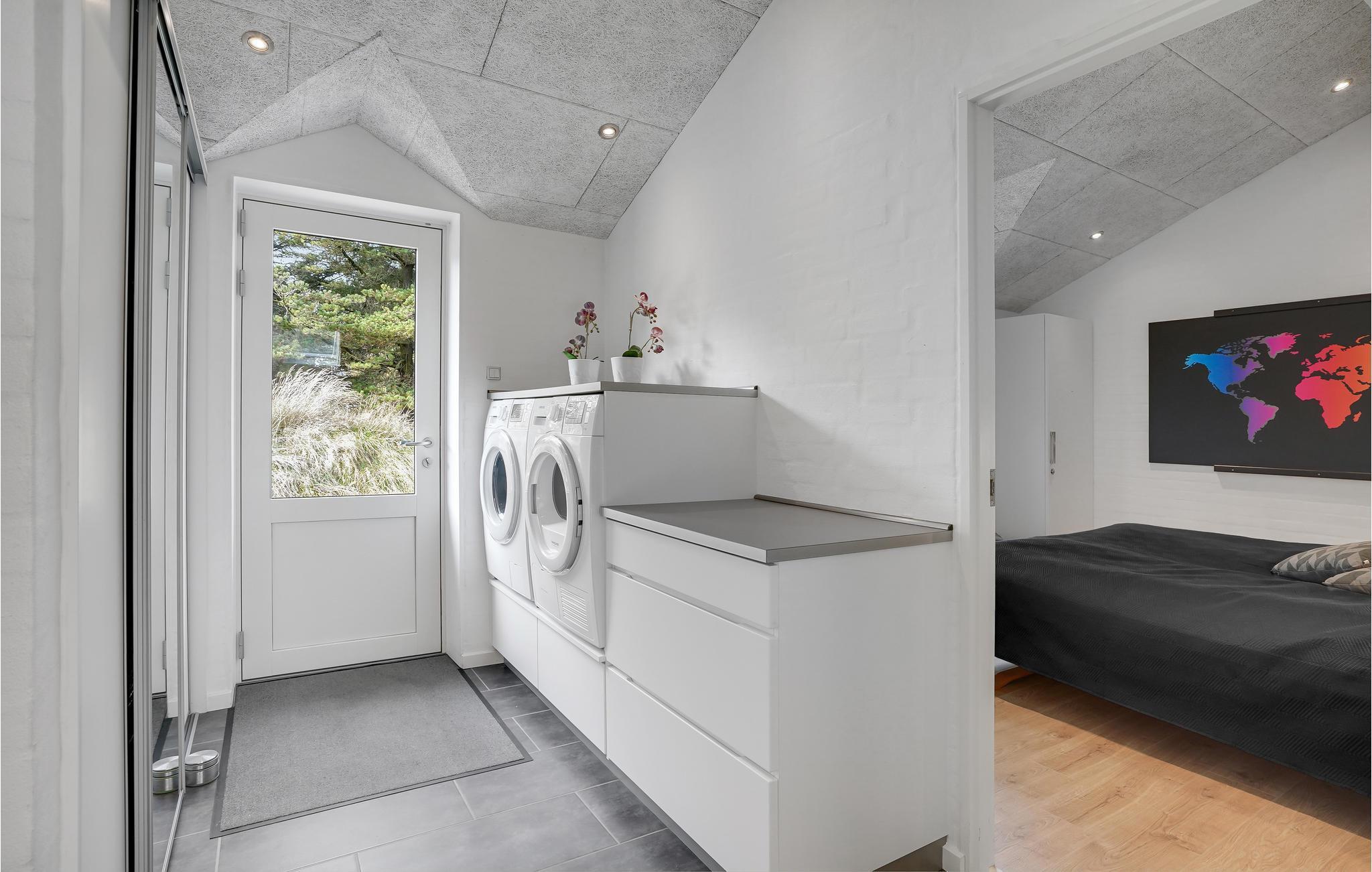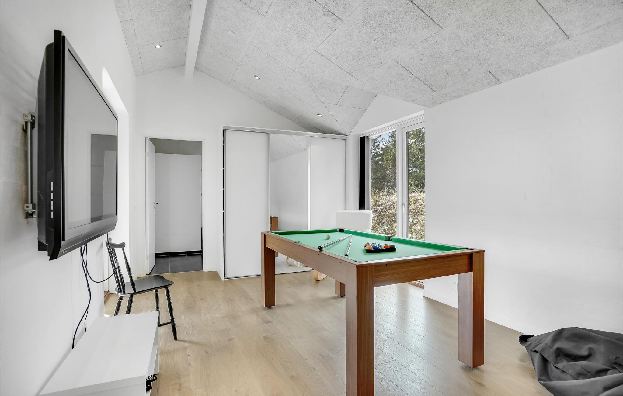 Welkom in dit mooie vakantiehuis. Het is gelegen in het mooie Bjerregård en op loopafstand van de Noordzee. Op het terrein groeien bomen die voor windschaduw zorgen. Het terras is 100 m² groot, het ligt op het oosten, zuiden en westen en laat u heerlijk ontspannen. Samen met de verlaagde trampoline biedt het een mooie omgeving voor een actieve vakantie. Het huis heeft een persoonlijk en modern interieur. De ramen reiken van vloer tot plafond en laten veel licht binnen. De houtkachel maakt de keuken-woonkamer echt gezellig. Er zijn 3 goede slaapkamers in het huis - twee met tweepersoonsbedden en één met twee eenpersoonsbedden. Er zijn ook 2 badkamers - een met een whirlpool en een activiteitenruimte met een biljarttafel. Voor een dagje uit is Hvide Sande een goede plaats om te eten en te winkelen. De stad heeft een uitstekend strand en is een levendige vissersplaats.