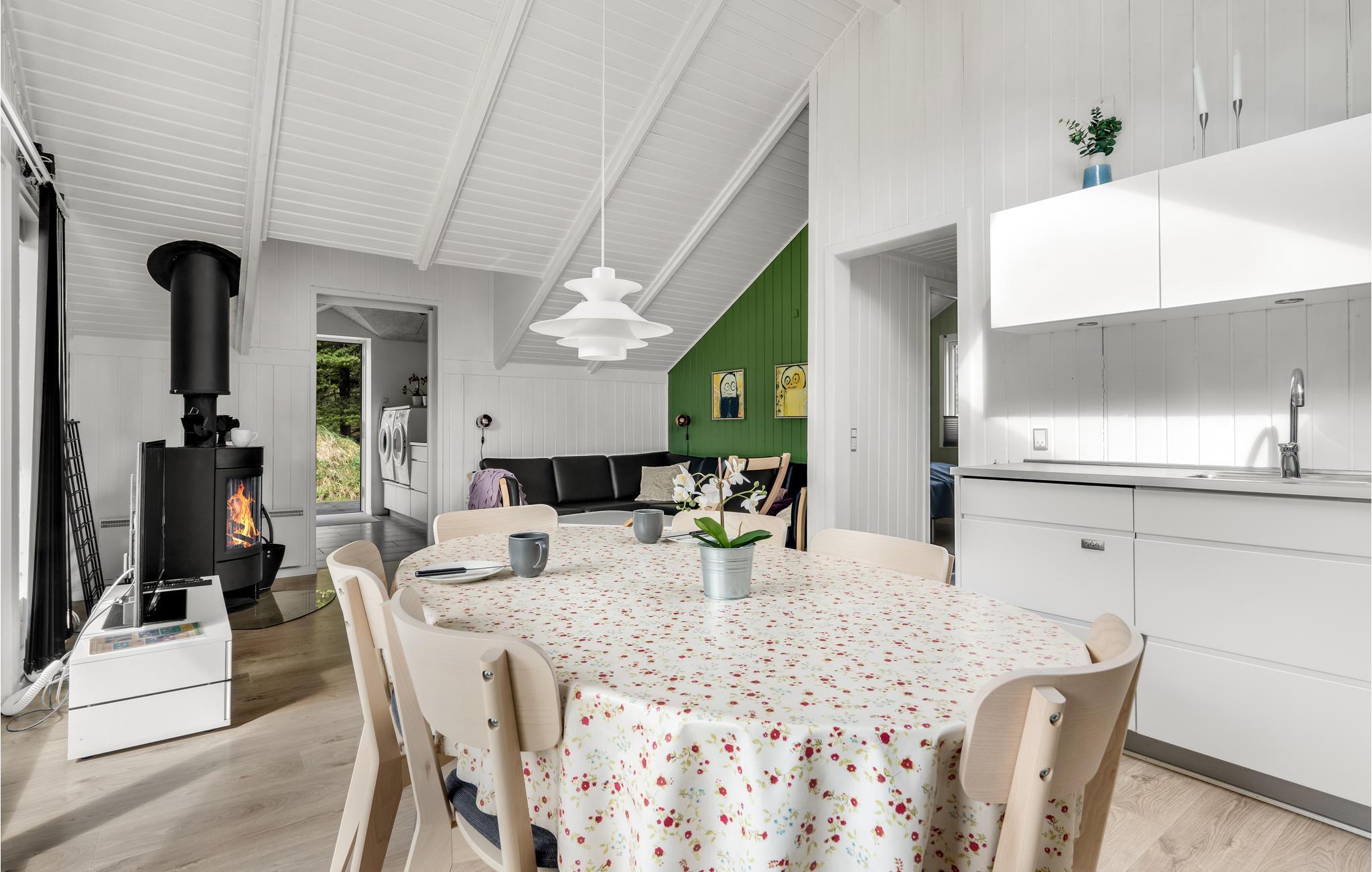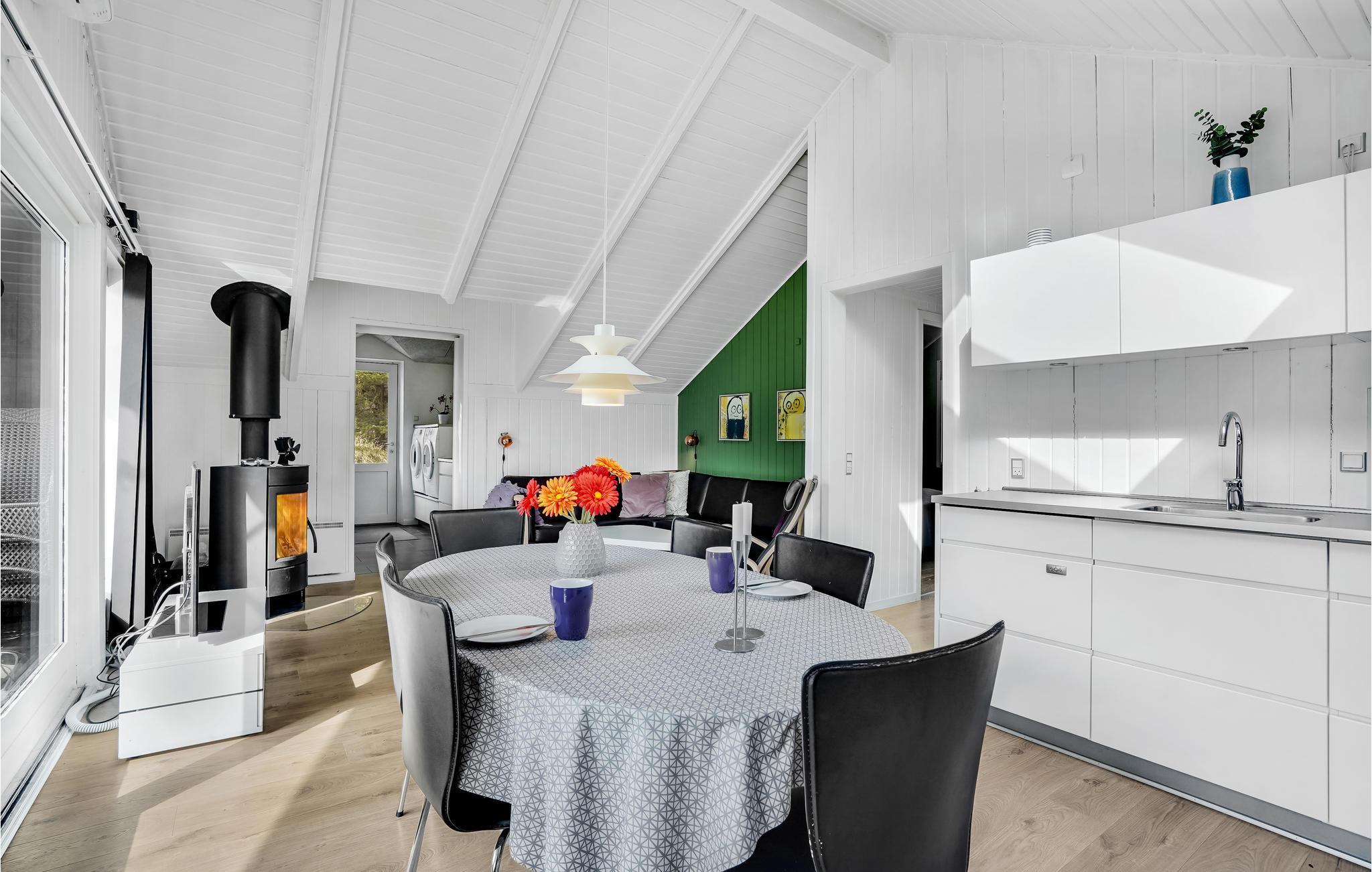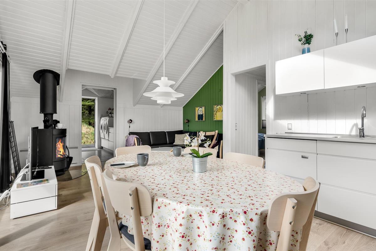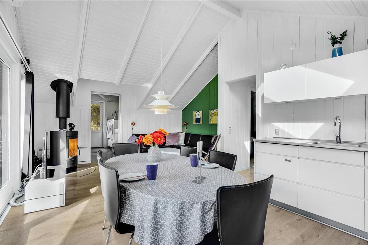 Welkom in dit mooie vakantiehuis. Het is gelegen in het mooie Bjerregård en op loopafstand van de Noordzee. Op het terrein groeien bomen die voor windschaduw zorgen. Het terras is 100 m² groot, het ligt op het oosten, zuiden en westen en laat u heerlijk ontspannen. Samen met de verlaagde trampoline biedt het een mooie omgeving voor een actieve vakantie. Het huis heeft een persoonlijk en modern interieur. De ramen reiken van vloer tot plafond en laten veel licht binnen. De houtkachel maakt de keuken-woonkamer echt gezellig. Er zijn 3 goede slaapkamers in het huis - twee met tweepersoonsbedden en één met twee eenpersoonsbedden. Er zijn ook 2 badkamers - een met een whirlpool en een activiteitenruimte met een biljarttafel. Voor een dagje uit is Hvide Sande een goede plaats om te eten en te winkelen. De stad heeft een uitstekend strand en is een levendige vissersplaats.