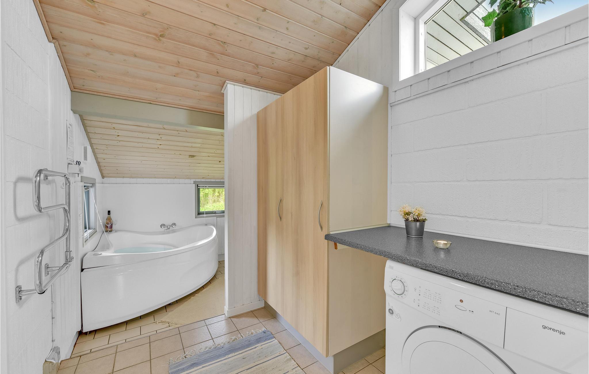 Dit gemoderniseerde en goed onderhouden houten huis wacht op u in het populaire en goed bezochte Bjerregård. Het natuurlijke terrein heeft ook een gazon. Het meubilair in dit huis is erg gezellig, in 2010 zijn een nieuwe keuken en een nieuwe badkamer met whirlpool en sauna geïnstalleerd. Bjerregård staat bekend om zijn hoge duinen en prachtige ligging aan de Noordzee. Als u thuiskomt van een dagje strand of van een wandeling door de duinen, wachten u hier vele gezellige uurtjes, bijvoorbeeld voor de open haard.