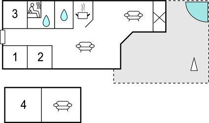 Slaapkamer (nr. 4) - 2 Slaapplaatsen. (1-persoonsbed(den)).