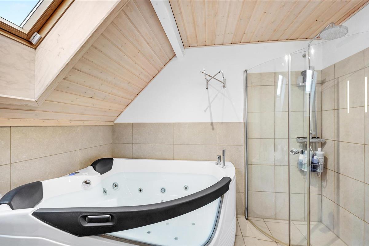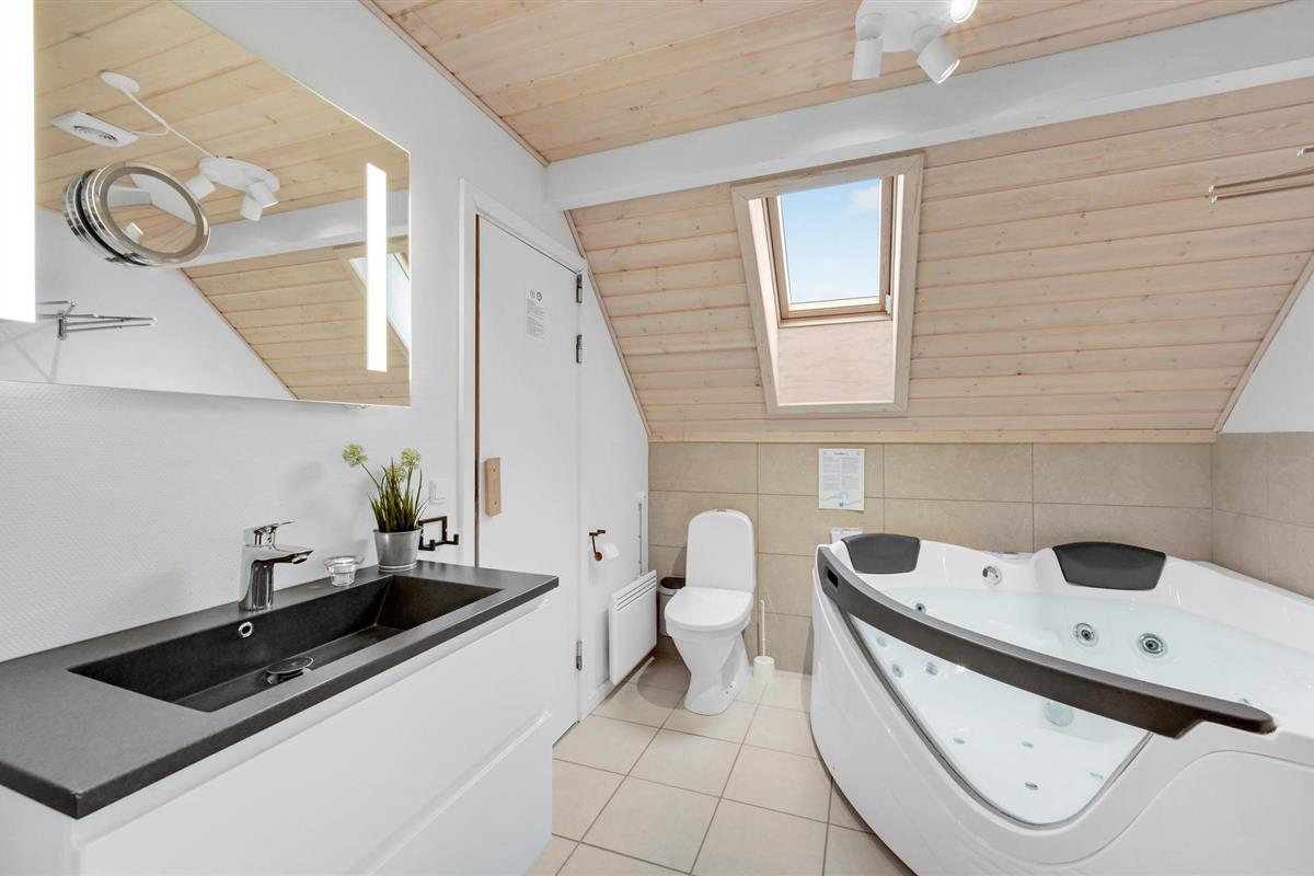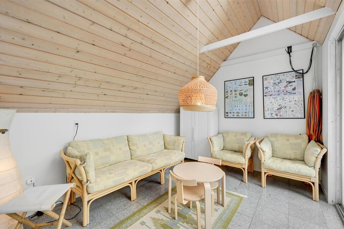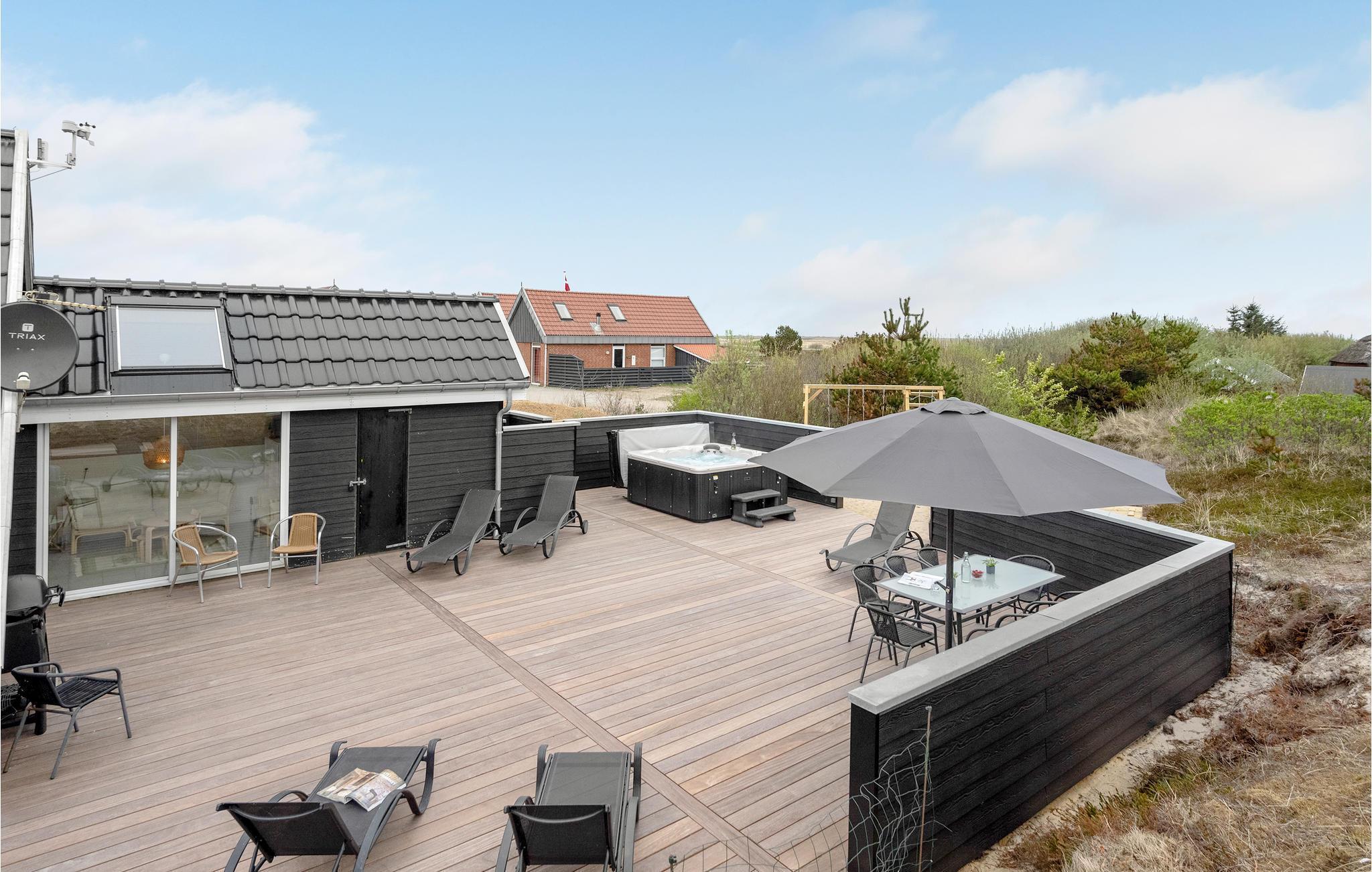 Van hieruit heeft u toegang tot het op het zuidoosten gelegen, gedeeltelijk afgeschermde terras met tuinmeubelen, ligstoelen, barbecue en buitenwhirlpool. Hier geniet u van vele, zomerse uren en heeft u een prachtig uitzicht op het golvende, met heide begroeide duingoed. Het terras grenst direct aan de gezellige serre, waar u op sterrenavonden door het dakraam naar de sterrenhemel kunt kijken. Op het terrein vinden uw kinderen diverse speeltoestellen en volop ruimte om zich uit te leven.