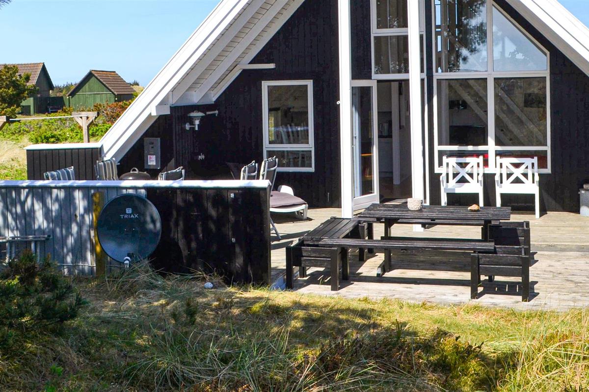 Als u droomt van een echte westkust-sfeer, dan is dit vakantiehuis de perfecte keuze. Hier heeft u de mogelijkheid om te genieten van een licht en gezellig huis op een natuurlijk perceel. De authentieke omgeving roept bij aankomst een gevoel van rust en vrede op. Het terras is goed afgeschermd, zodat u beschutting vindt tegen de Noordzeewind. 100 m ten noorden van het huis ligt een groot beschermd duingebied, waar u heerlijk kunt wandelen. Na de activiteiten van de dag kunt u ontspannen voor de gezellige houtkachel, die de sfeer bepaalt in de keuken-woonkamer, waar de familie samenkomt voor maaltijden en gezellige activiteiten.