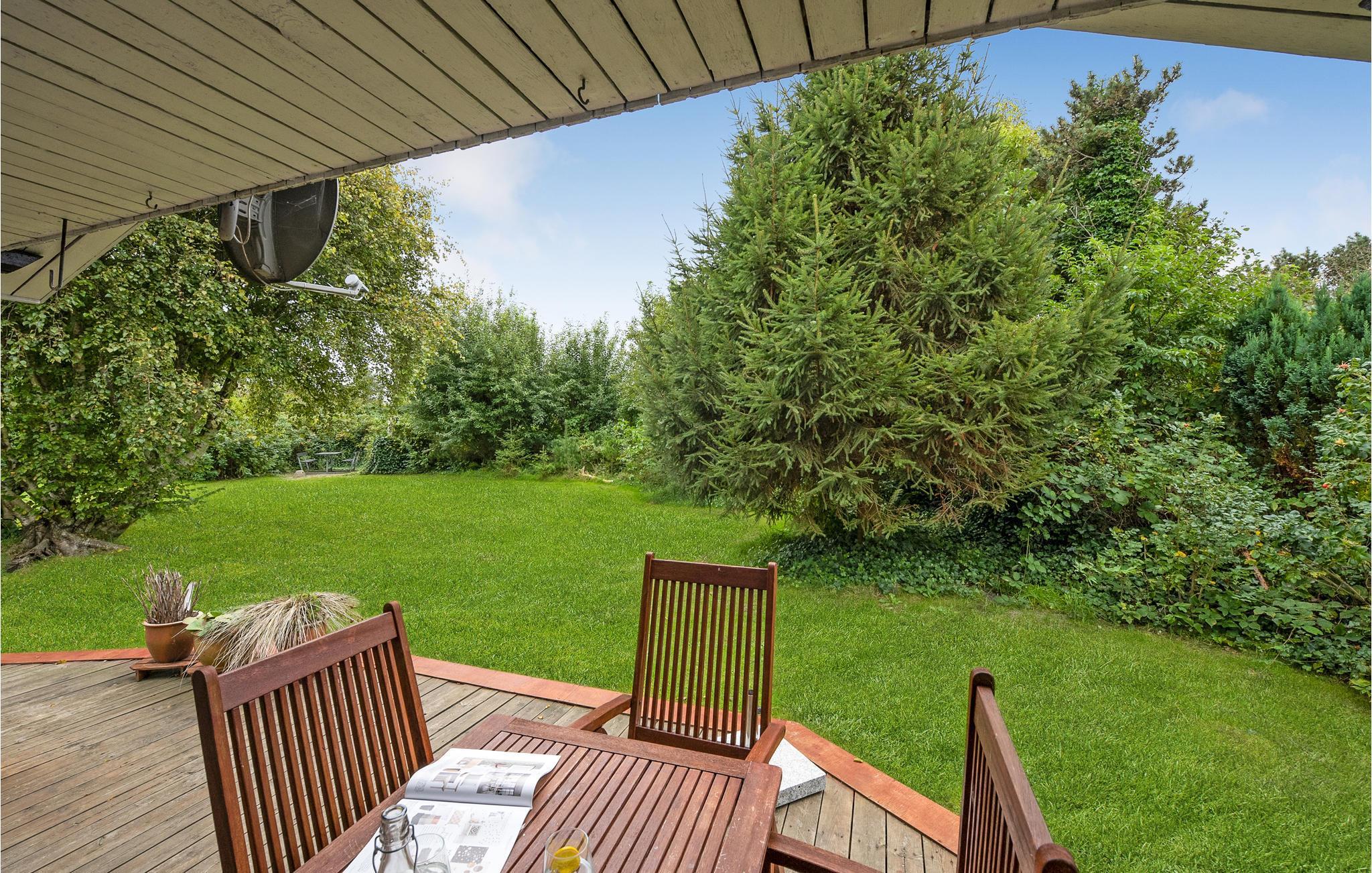 Gerenoveerd vakantiehuis in Bjerregård met modern interieur en zonnig terras, perfect voor natuurliefhebbers en watersporters.