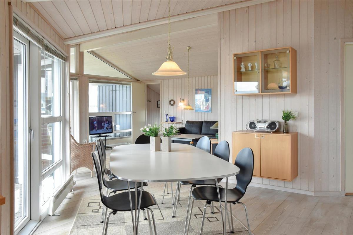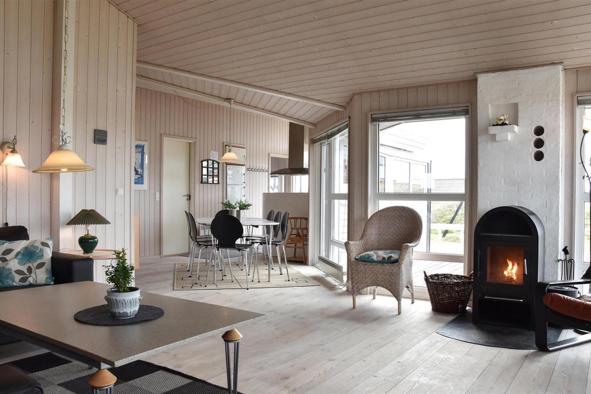 Mooi, goed ingericht en goed onderhouden vakantiehuis, 105 m² groot en op slechts 250 m van de Noordzee met zijn heerlijke zandstrand en ruisende zee. Het huis wordt voortdurend verzorgd en is een uitstekende omgeving voor een ontspannende vakantie. U woont hier op een heuvelachtig perceel in de duinen aan het einde van een doodlopende weg, met prachtig uitzicht op heide en duinen vanaf verschillende van de terrassen. In het huis vindt u een woonkamer open naar de keuken, vier slaapkamers en twee prachtige badkamers met vloerverwarming, waarvan één met een bubbelbad. Geniet met familie en vrienden rond het knapperende vuur in de kachel. Of maak een uitstapje naar het strand en de blauwe golven van de Noordzee en de geweldige natuur, of naar Hvide Sande, waar u interessante winkels, spannende restaurants en andere activiteiten vindt.