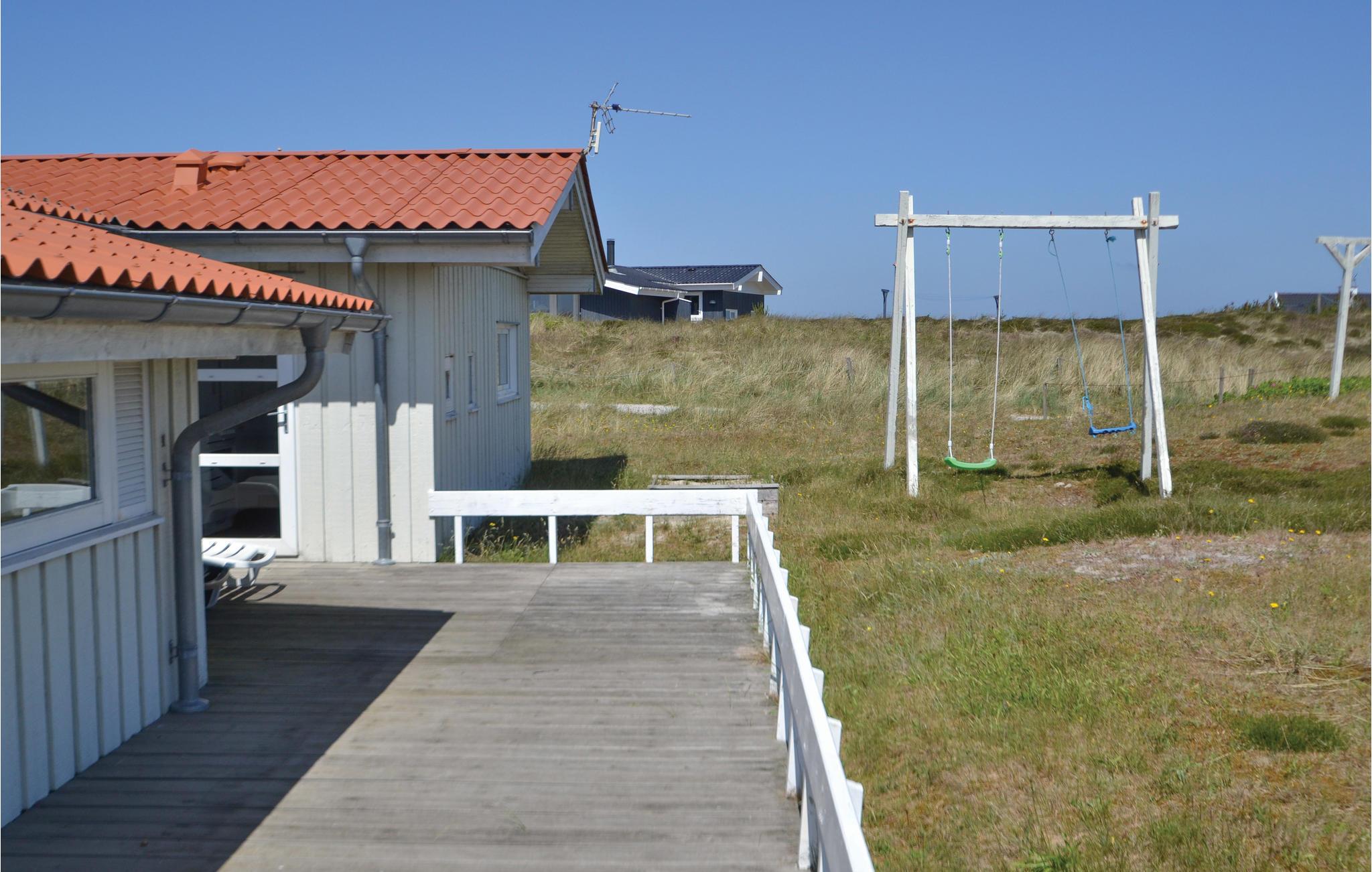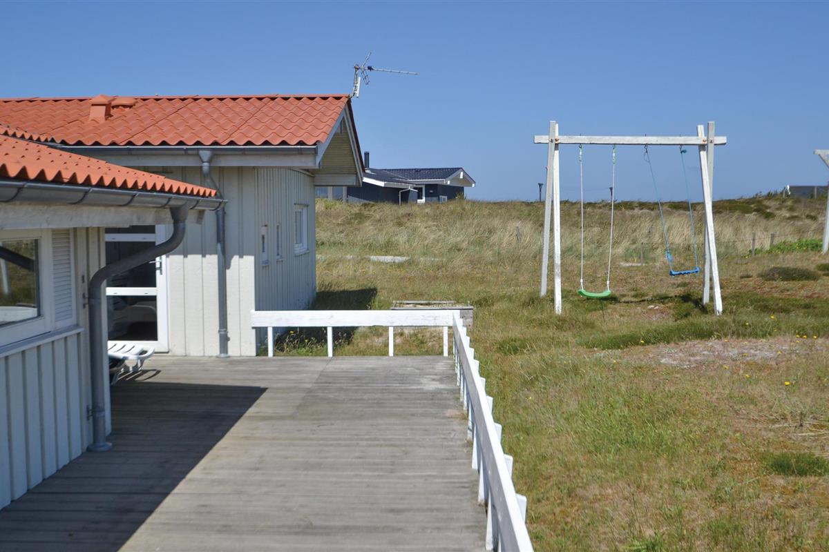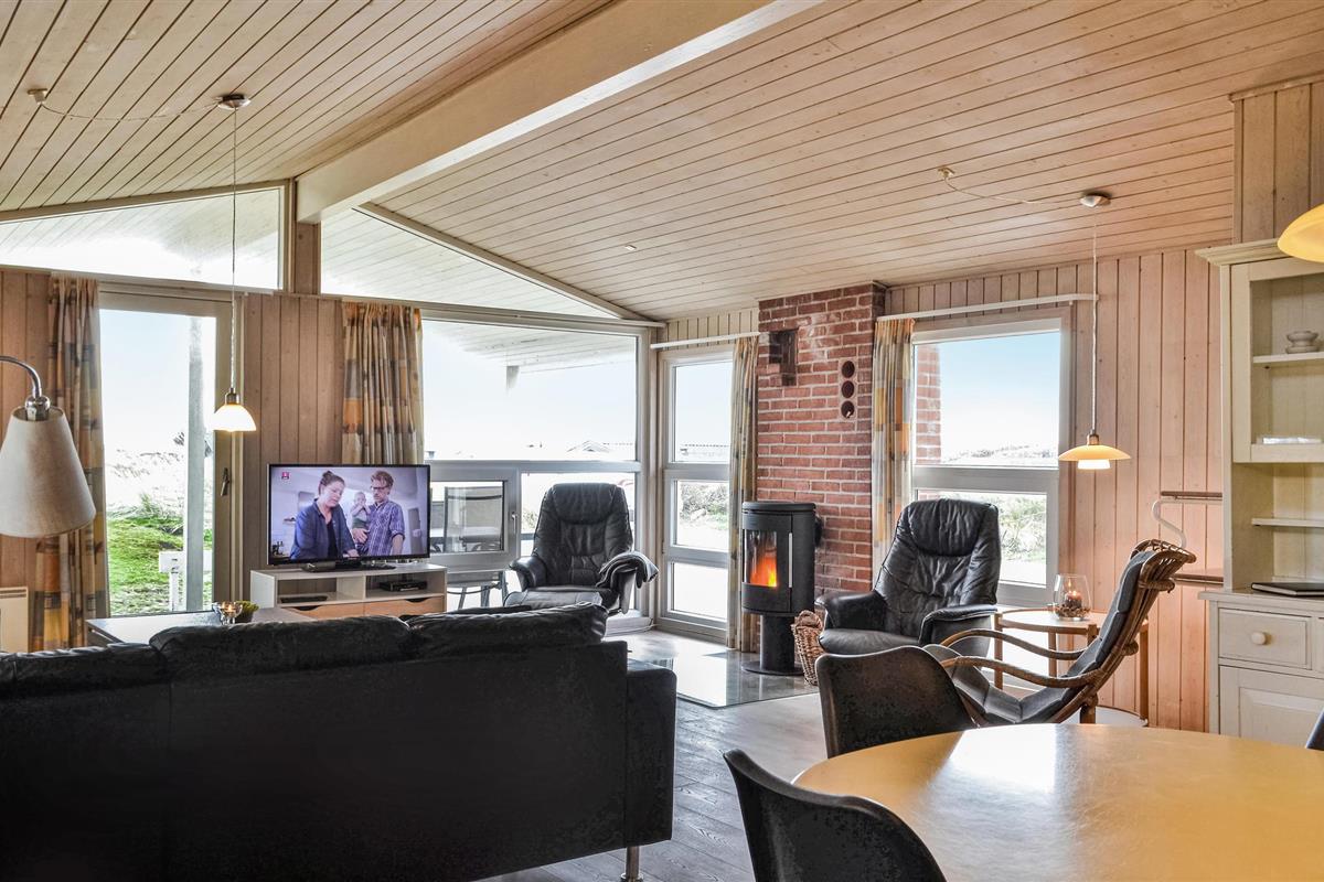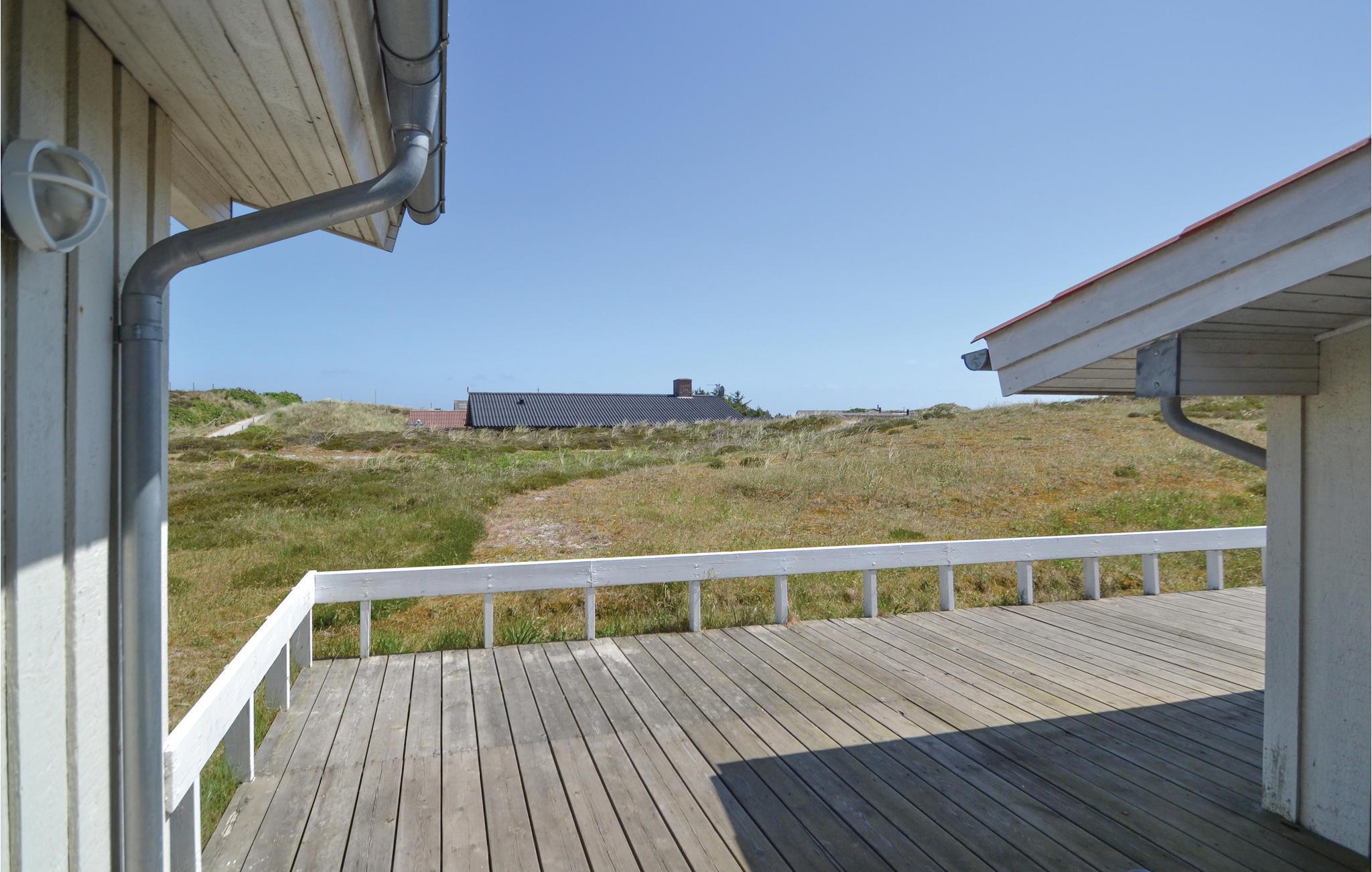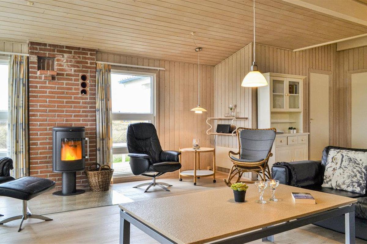 Een heel mooi en uitnodigend vakantiehuis, op 95 gemoderniseerde vierkante meter, op een prachtige locatie aan het einde van een doodlopende weg. Het huis is goed ingericht met een keuken in open verbinding met de woonkamer, vier slaapkamers en een mooie badkamer met sauna en vloerverwarming. Aan drie zijden van het huis zijn deels overdekte, deels open terrassen, zodat u vele uren van de dag buiten kunt doorbrengen. U bent slechts 400 m van de Noordzee en bent snel op het strand, waar u de golven, de wind en het zand tussen uw tenen kunt voelen. Het is ook een genot om rond de warme open haard in de ruime woonkamer te zitten. U vindt veel verschillende activiteiten in de omgeving: Ringkøbing Fjord is een eldorado voor waterratten, en u kunt hier uitstekend surfen. Het is ook niet ver naar het actieve vissersstadje Hvide Sande, waar niet alleen een haven op u wacht, maar ook vismogelijkheden, winkels, restaurants en musea.