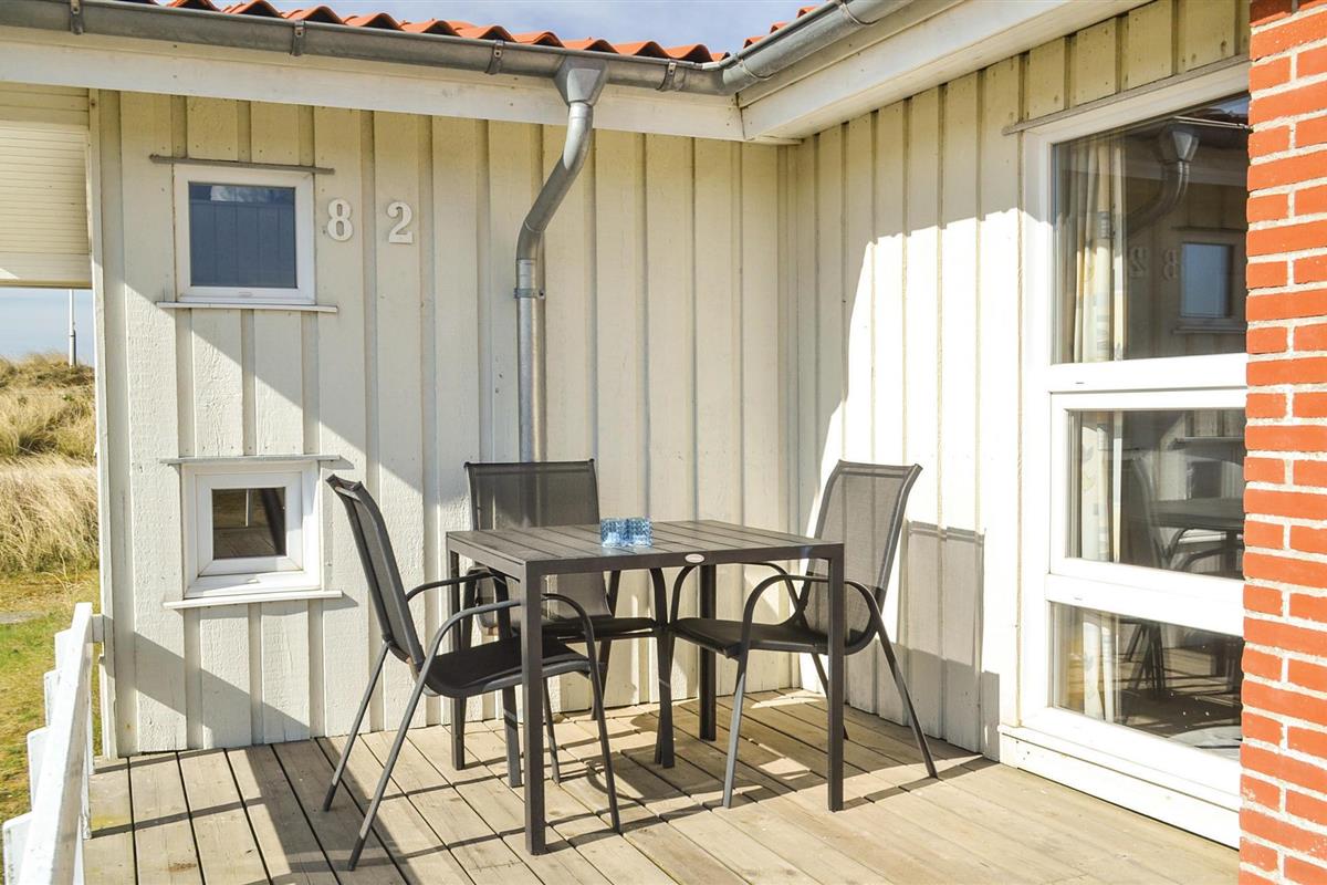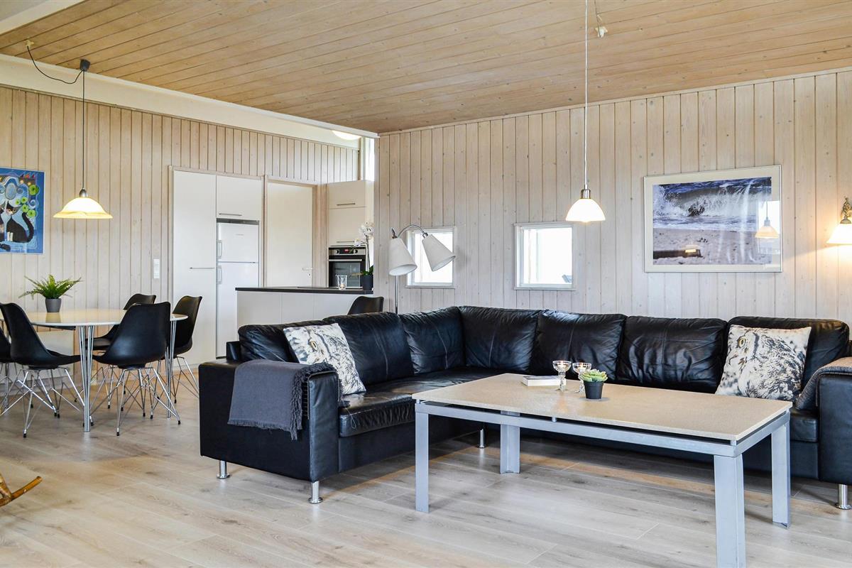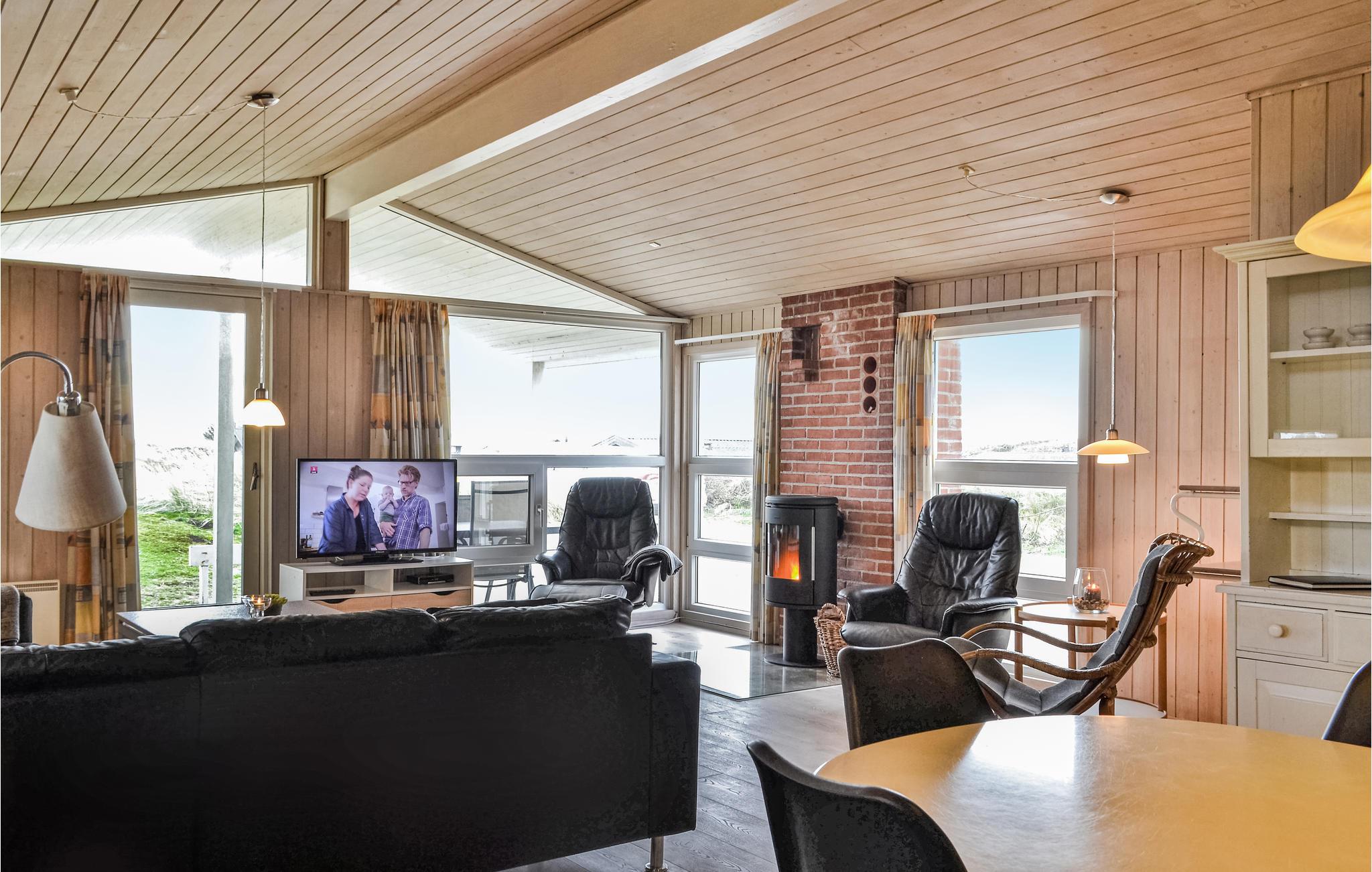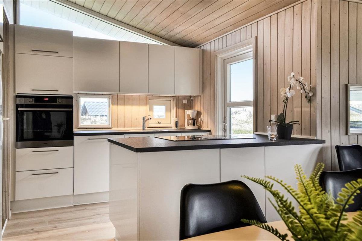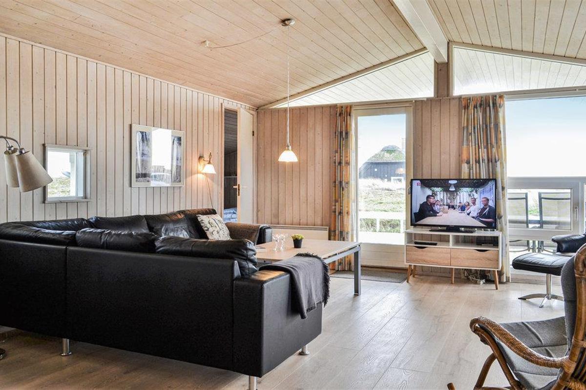 Een heel mooi en uitnodigend vakantiehuis, op 95 gemoderniseerde vierkante meter, op een prachtige locatie aan het einde van een doodlopende weg. Het huis is goed ingericht met een keuken in open verbinding met de woonkamer, vier slaapkamers en een mooie badkamer met sauna en vloerverwarming. Aan drie zijden van het huis zijn deels overdekte, deels open terrassen, zodat u vele uren van de dag buiten kunt doorbrengen. U bent slechts 400 m van de Noordzee en bent snel op het strand, waar u de golven, de wind en het zand tussen uw tenen kunt voelen. Het is ook een genot om rond de warme open haard in de ruime woonkamer te zitten. U vindt veel verschillende activiteiten in de omgeving: Ringkøbing Fjord is een eldorado voor waterratten, en u kunt hier uitstekend surfen. Het is ook niet ver naar het actieve vissersstadje Hvide Sande, waar niet alleen een haven op u wacht, maar ook vismogelijkheden, winkels, restaurants en musea.