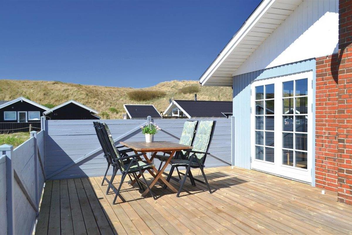 Dit ruime en moderne huis ligt op een duinperceel, dicht bij de duinen en de Noordzee. Het is gerenoveerd en heeft in 2017 een moderne badkamer gekregen. In de keuken-woonkamer zorgt de houtkachel voor een gezellige sfeer. Alle drie de slaapkamers hebben goede bedden en zijn geschikt voor 6 personen. Het zuidwestelijke terras met 75 m² is gedeeltelijk afgeschermd. U kunt dus altijd heerlijk buiten genieten in de beschutting van de wind. Als u graag vis eet, bent u hier ook aan het juiste adres. In Hvide Sande zijn er verschillende restaurants die verse en lekkere vis op het menu hebben staan. In en rond Bjerrgård kunt u een actieve vakantie doorbrengen. Er zijn kilometers aan fietspaden, wandelpaden, bospaden en mogelijkheden voor watersporten in Ringkøbing Fjord voor het hele gezin.