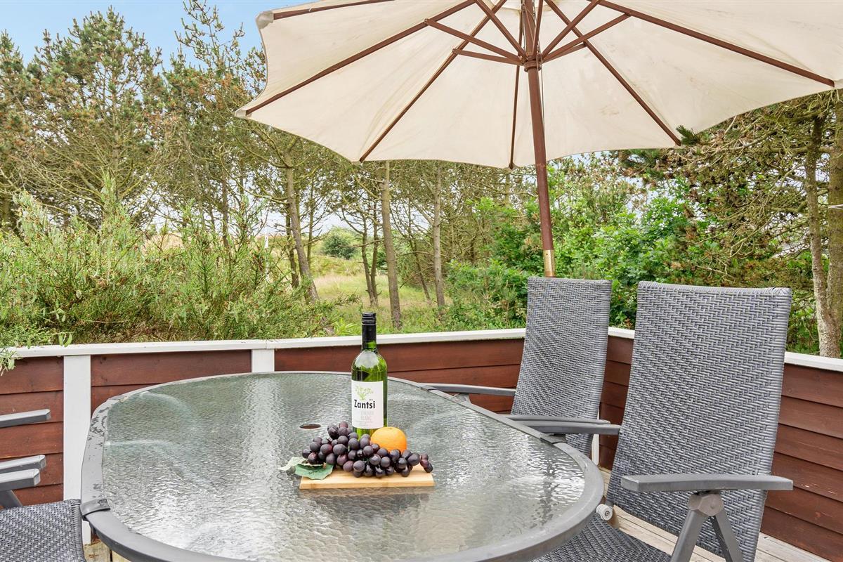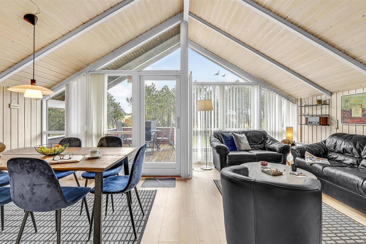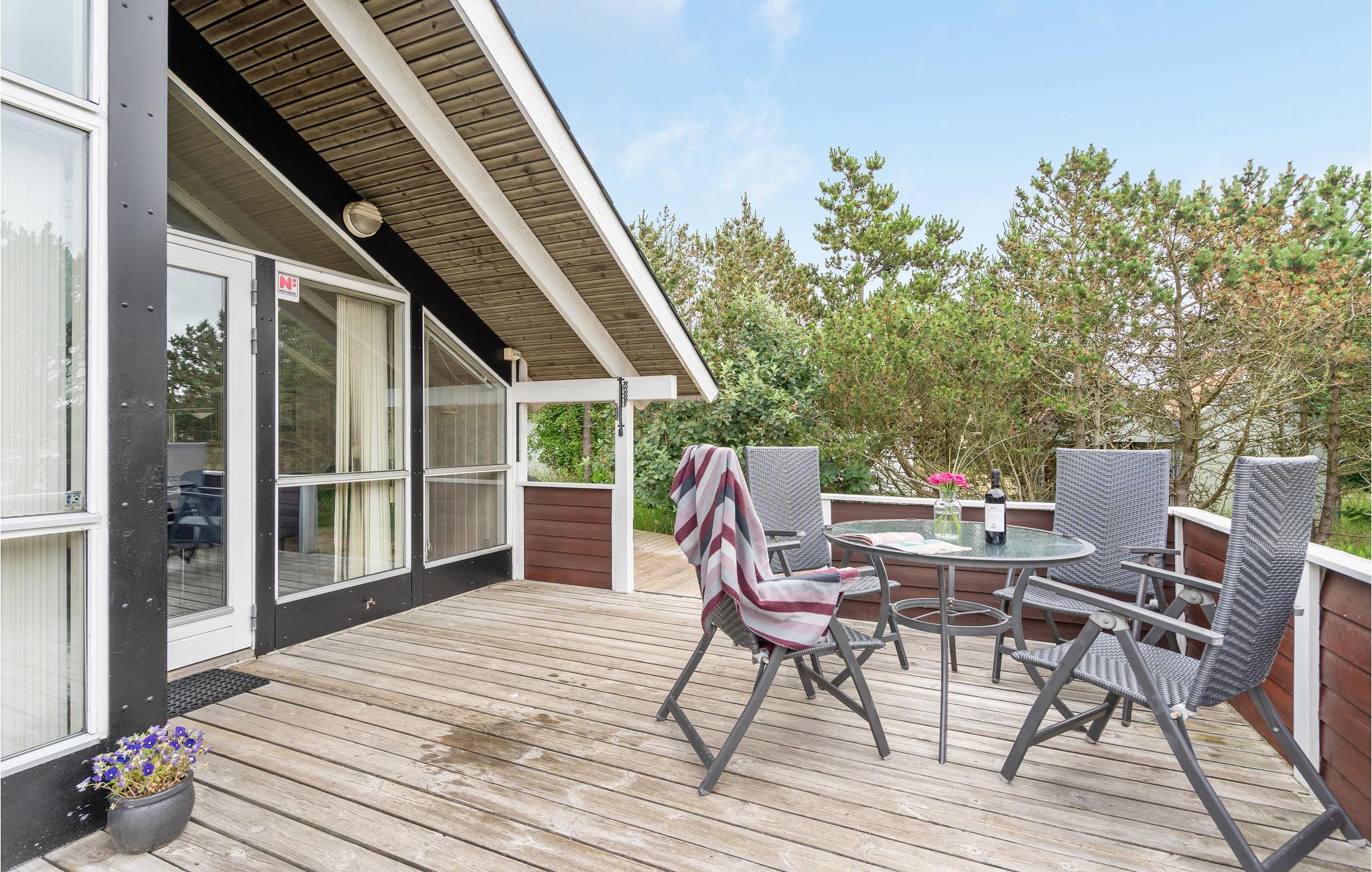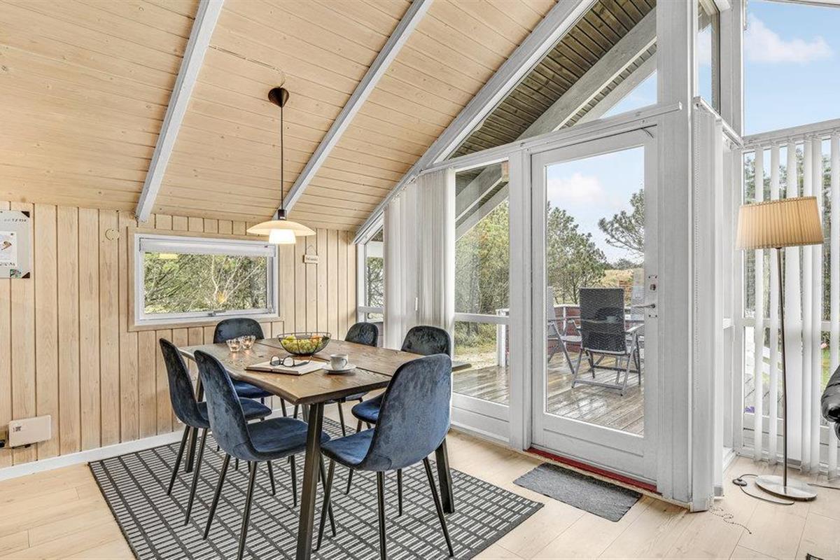 Mooie en goed uitgeruste luxe woning, gelegen op een golvende duingrond en deels afgeschermd van de omgeving door kleinere pijnbomen. Deze woning wordt voortdurend onderhouden en is voorzien van een eetkeuken met een lichte ambiance en een houtkachel. Voor het moderne gezin zijn glasvezelkabel voor een snelle internetverbinding, Apple TV en Chromecast beschikbaar. Groot, mooi terras, uitgerust met moderne meubels en barbecue. Dicht bij het huis is er een voetpad naar het Noordzeestrand. Het gebied bij de zee en Ringkøbing Fjord biedt veel mogelijkheden voor ontwikkeling. U kunt onder andere vissen op haring vanaf de sluis in het vissersdorp Hvide Sande, watersporten beoefenen op het fjord, musea bezoeken, winkelen en goede restaurants bezoeken.