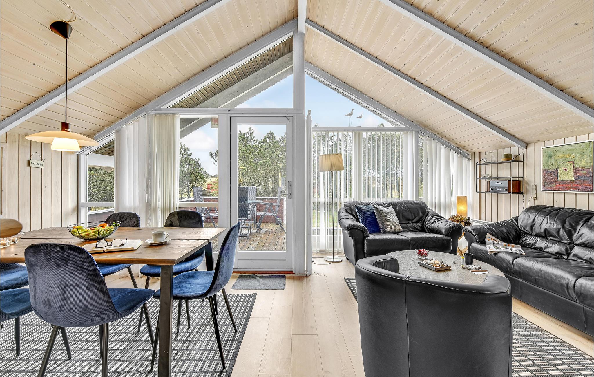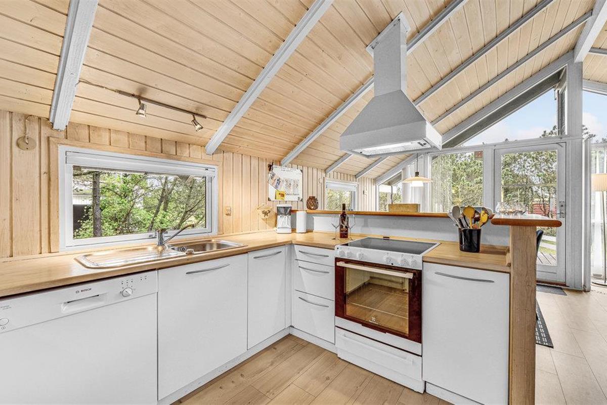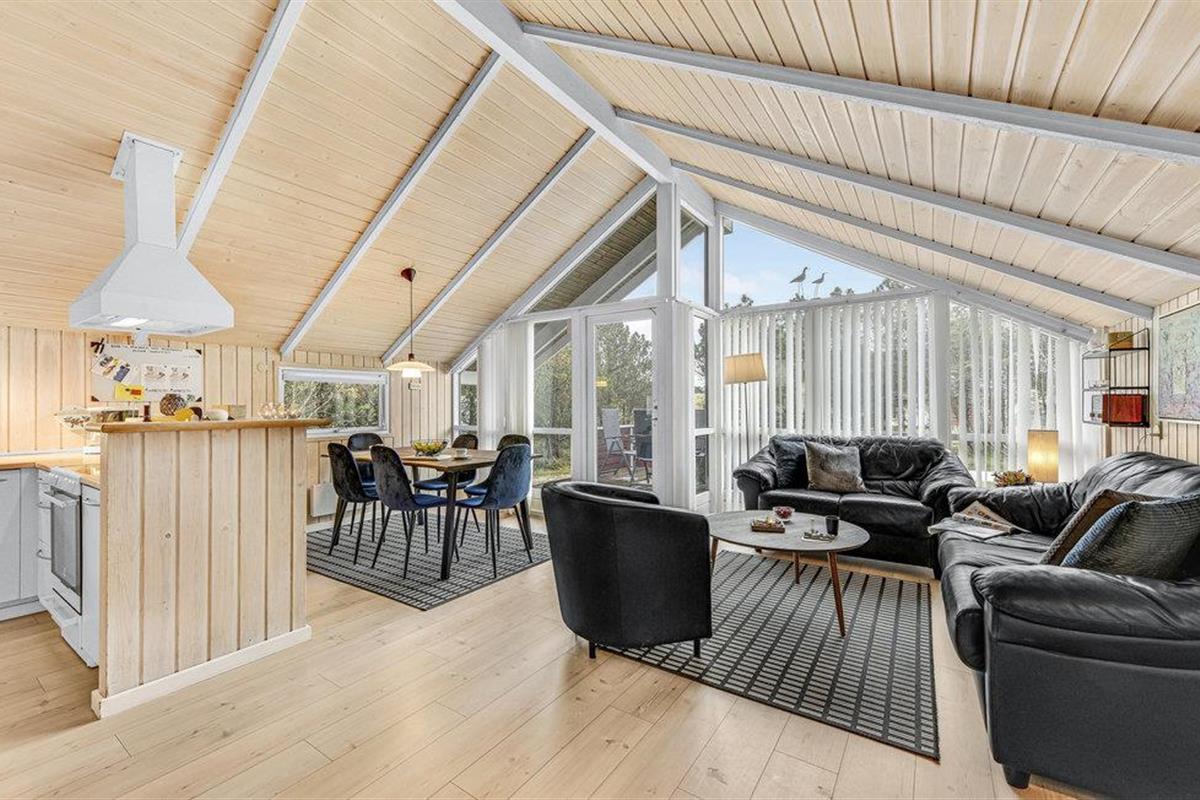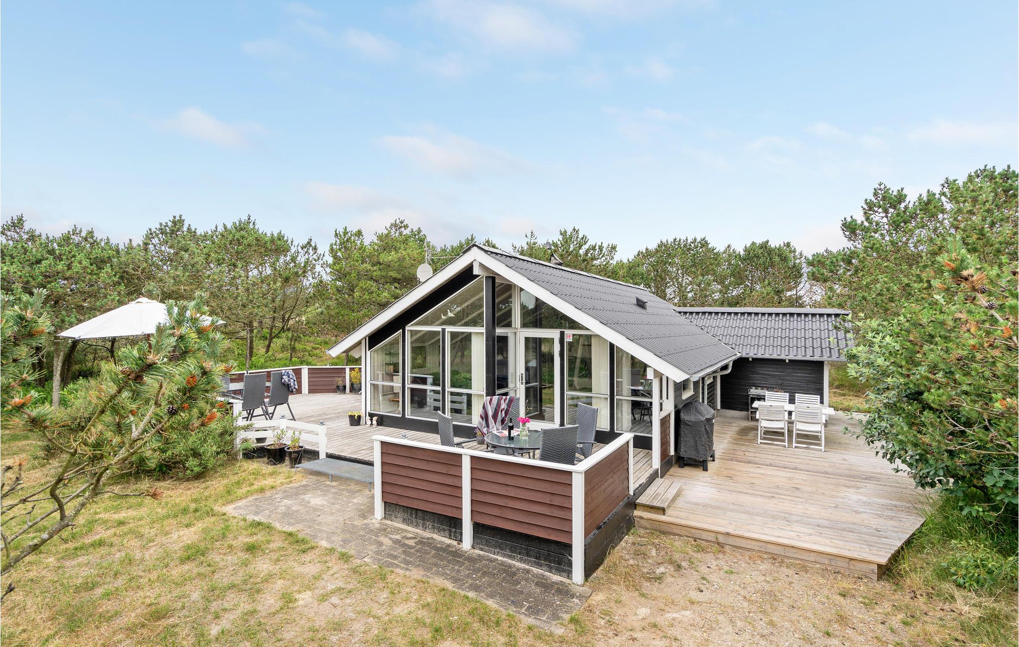 Mooie en goed uitgeruste luxe woning, gelegen op een golvende duingrond en deels afgeschermd van de omgeving door kleinere pijnbomen. Deze woning wordt voortdurend onderhouden en is voorzien van een eetkeuken met een lichte ambiance en een houtkachel. Voor het moderne gezin zijn glasvezelkabel voor een snelle internetverbinding, Apple TV en Chromecast beschikbaar. Groot, mooi terras, uitgerust met moderne meubels en barbecue. Dicht bij het huis is er een voetpad naar het Noordzeestrand. Het gebied bij de zee en Ringkøbing Fjord biedt veel mogelijkheden voor ontwikkeling. U kunt onder andere vissen op haring vanaf de sluis in het vissersdorp Hvide Sande, watersporten beoefenen op het fjord, musea bezoeken, winkelen en goede restaurants bezoeken.