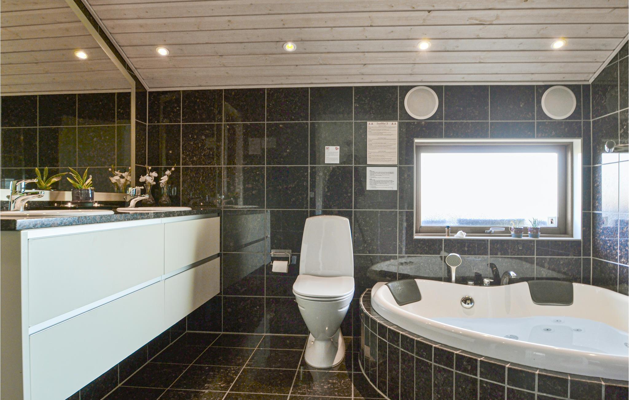 Er zijn luidsprekers in de grote, exclusieve badkamer zodat u naar uw favoriete muziek kunt luisteren terwijl u een massage in de whirlpool neemt. Rondom het huis ligt een gedeeltelijk overdekt terras, waar u altijd een beschut plekje vindt, zodat het terras het hele jaar door gebruikt kan worden.