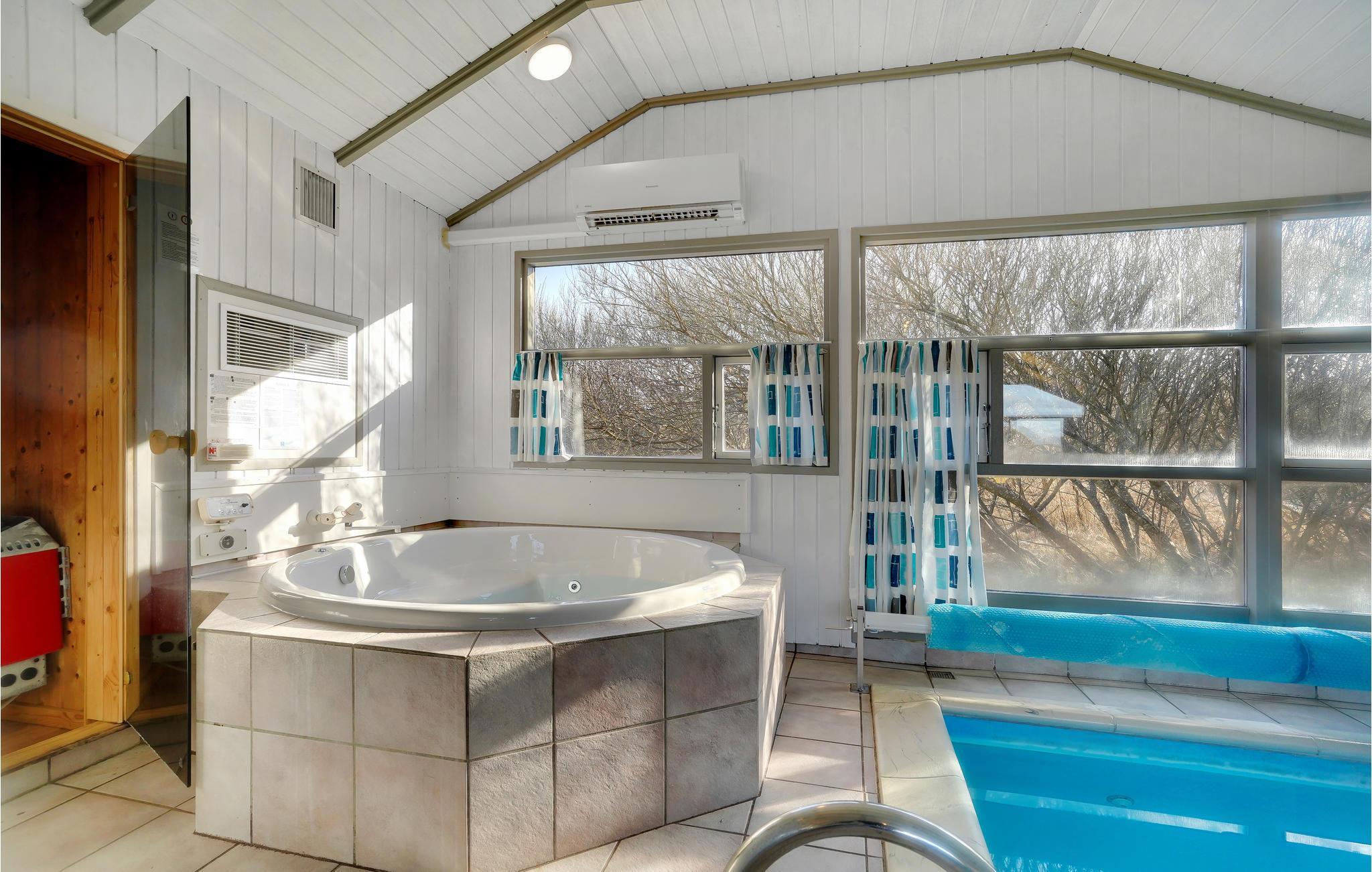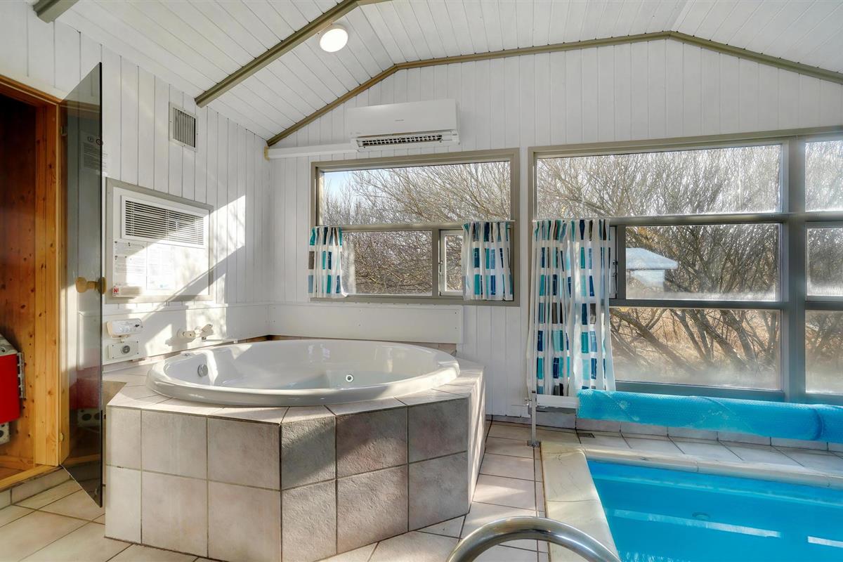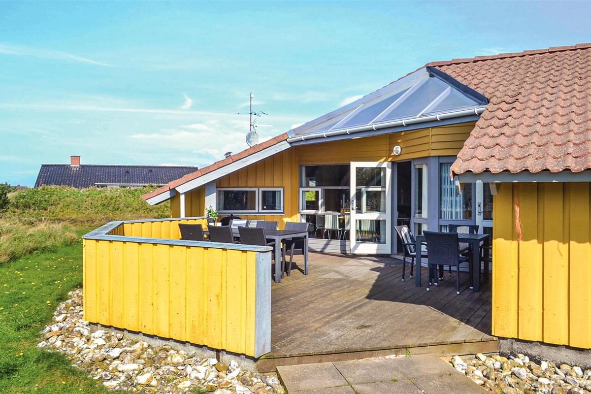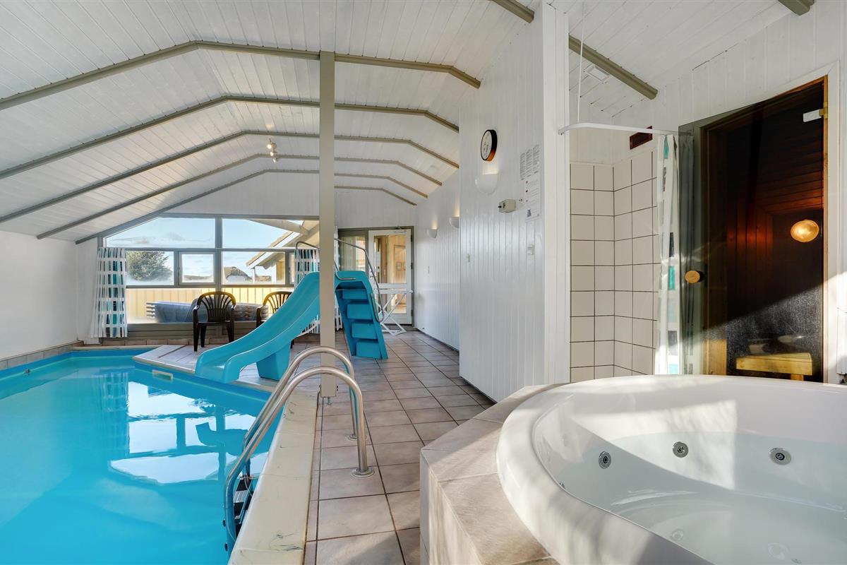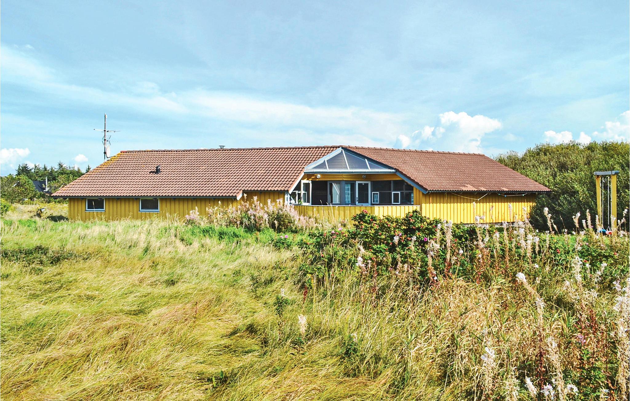Mooi vakantiehuis in Bjerregård, een van de populaire vakantiehuisgebieden van Holmsland Klit, op de landtong tussen Ringkøbing Fjord en de Noordzee. Binnen biedt het huis een prachtige wellnessruimte met zwembad en glijbaan, sauna en whirlpool; een gezellige en moderne woonkamer met houtkachel en een mooie, functionele keuken met veel kookruimte voor het hele gezin. Vijf goede slaapkamers bevinden zich aan weerszijden van het huis, waarvan 3 met tweepersoonsbedden en 2 met elk twee eenpersoonsbedden. Vanuit de woonkamer heeft u toegang tot een groot, deels overdekt terras met tuinmeubilair en ligstoelen, en voor de kinderen is er een schommel en zandbak. Vanuit Bjerregård is het niet ver naar Hvide Sande, het dichtstbijzijnde stadje met veel interessante restaurants, speciaalzaken en een rustige haven.