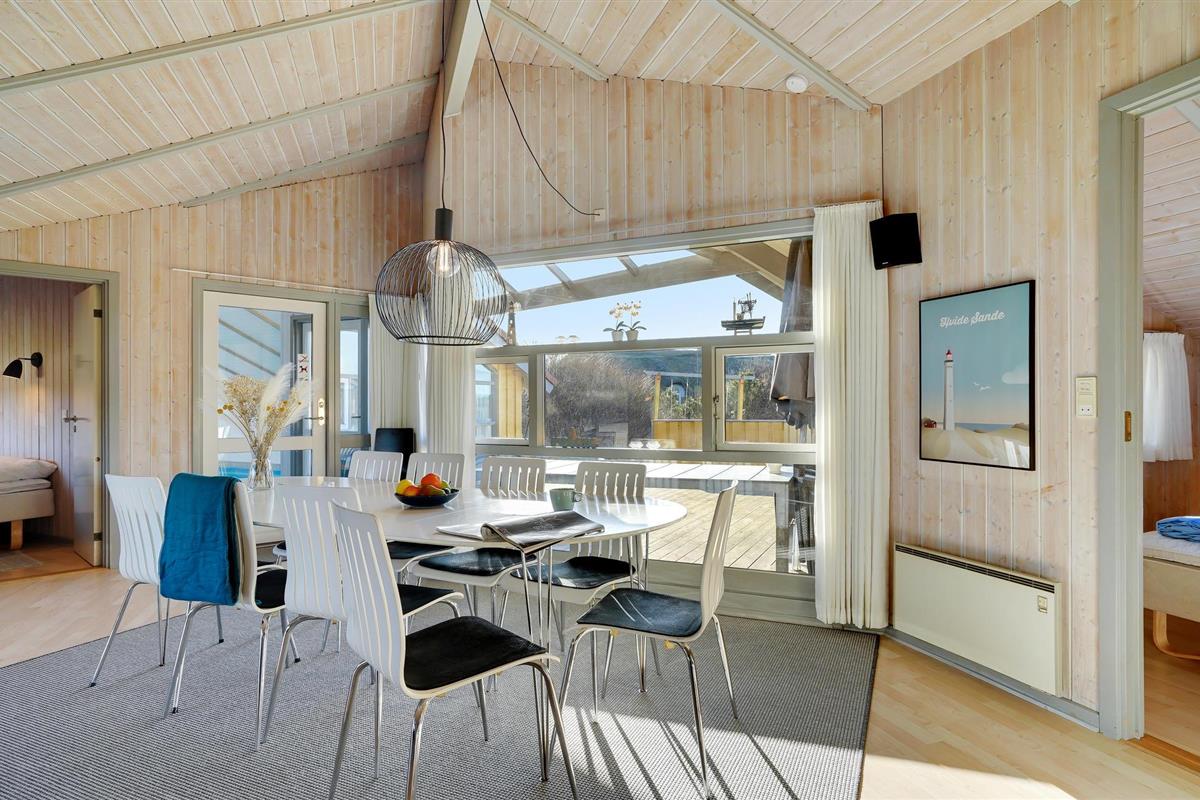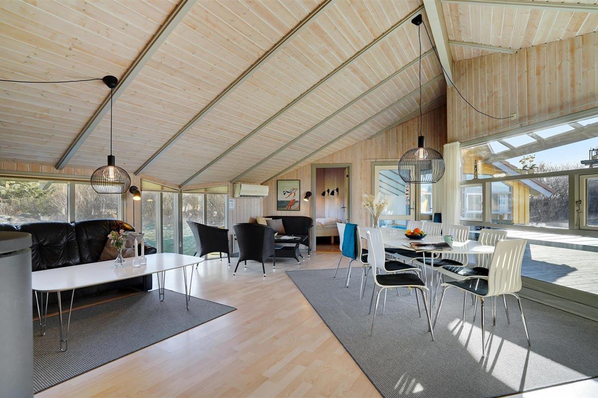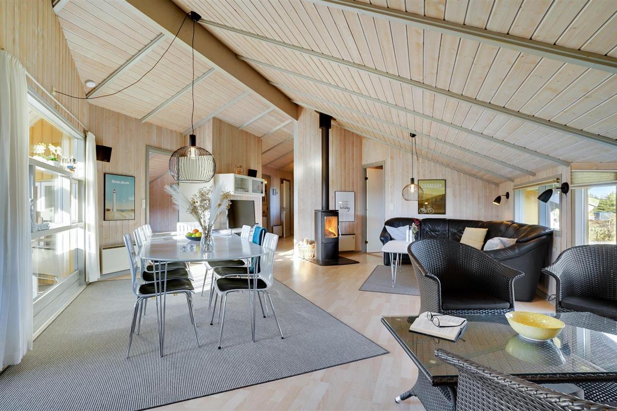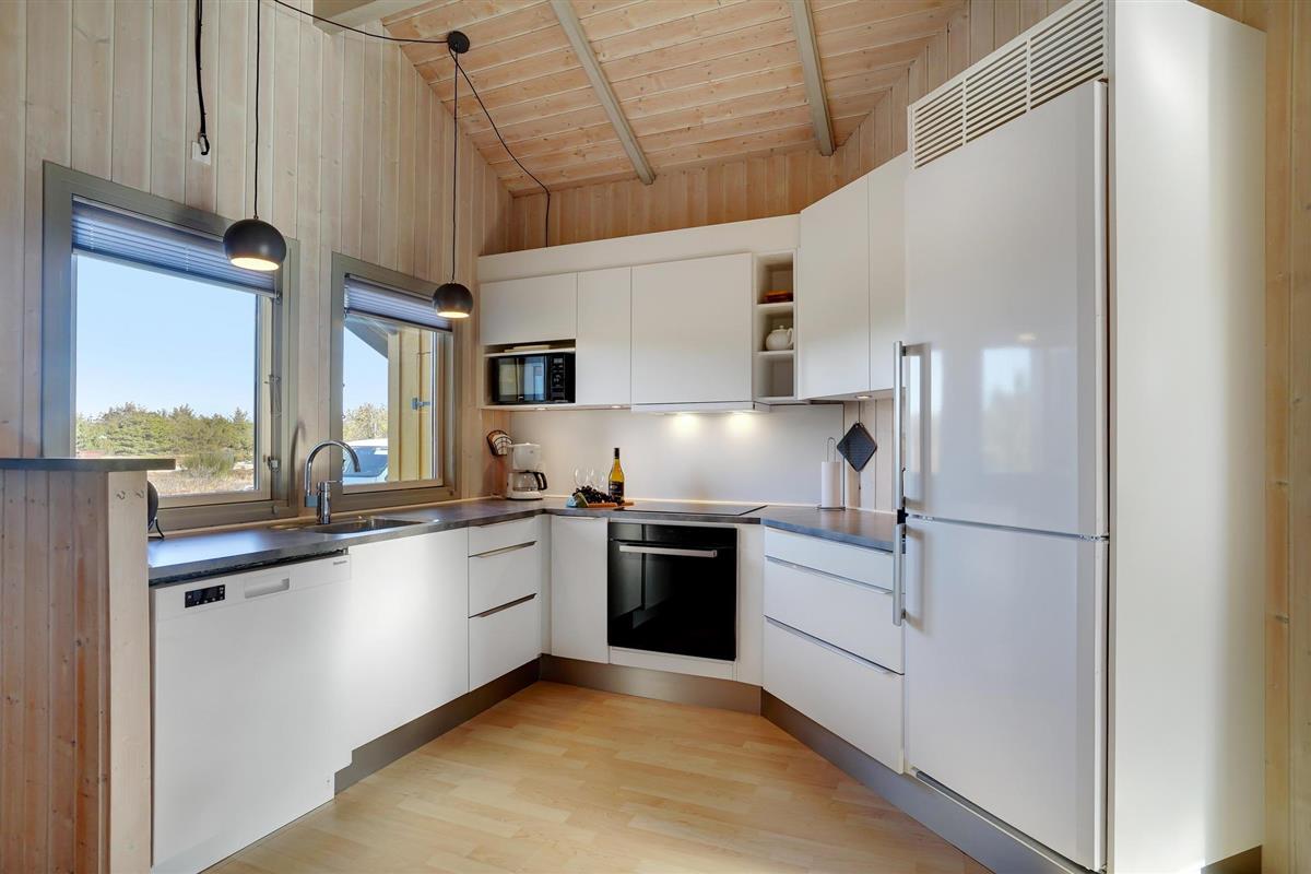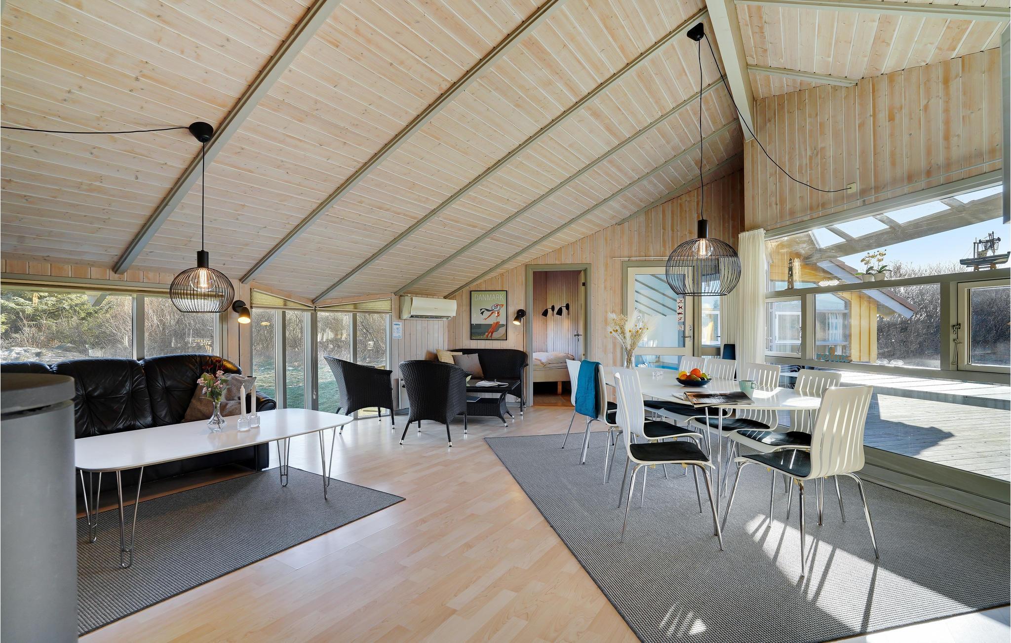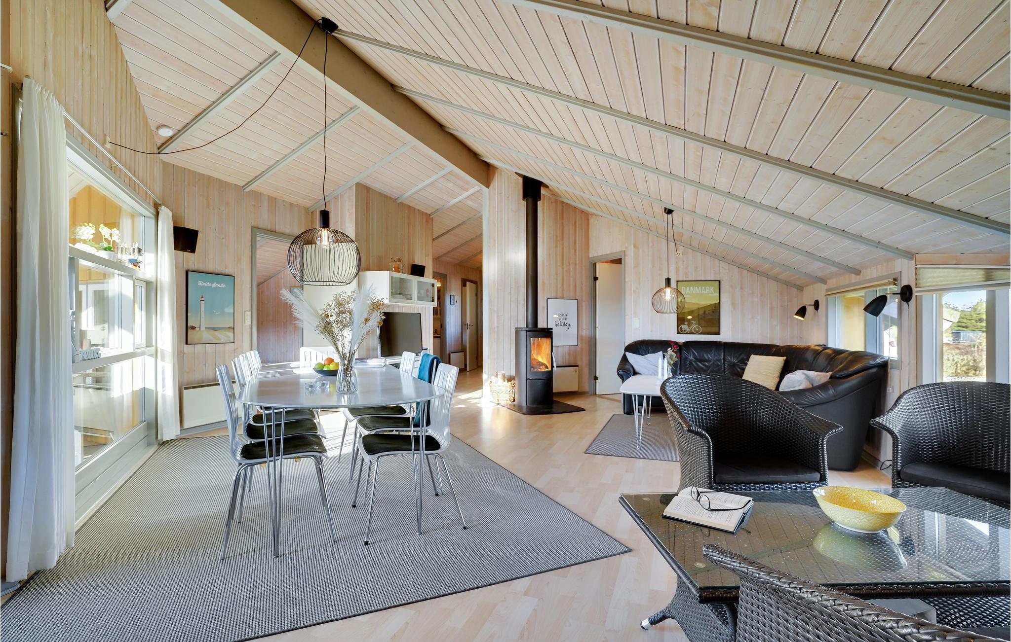 Mooi vakantiehuis in Bjerregård, een van de populaire vakantiehuisgebieden van Holmsland Klit, op de landtong tussen Ringkøbing Fjord en de Noordzee. Binnen biedt het huis een prachtige wellnessruimte met zwembad en glijbaan, sauna en whirlpool; een gezellige en moderne woonkamer met houtkachel en een mooie, functionele keuken met veel kookruimte voor het hele gezin. Vijf goede slaapkamers bevinden zich aan weerszijden van het huis, waarvan 3 met tweepersoonsbedden en 2 met elk twee eenpersoonsbedden. Vanuit de woonkamer heeft u toegang tot een groot, deels overdekt terras met tuinmeubilair en ligstoelen, en voor de kinderen is er een schommel en zandbak. Vanuit Bjerregård is het niet ver naar Hvide Sande, het dichtstbijzijnde stadje met veel interessante restaurants, speciaalzaken en een rustige haven.