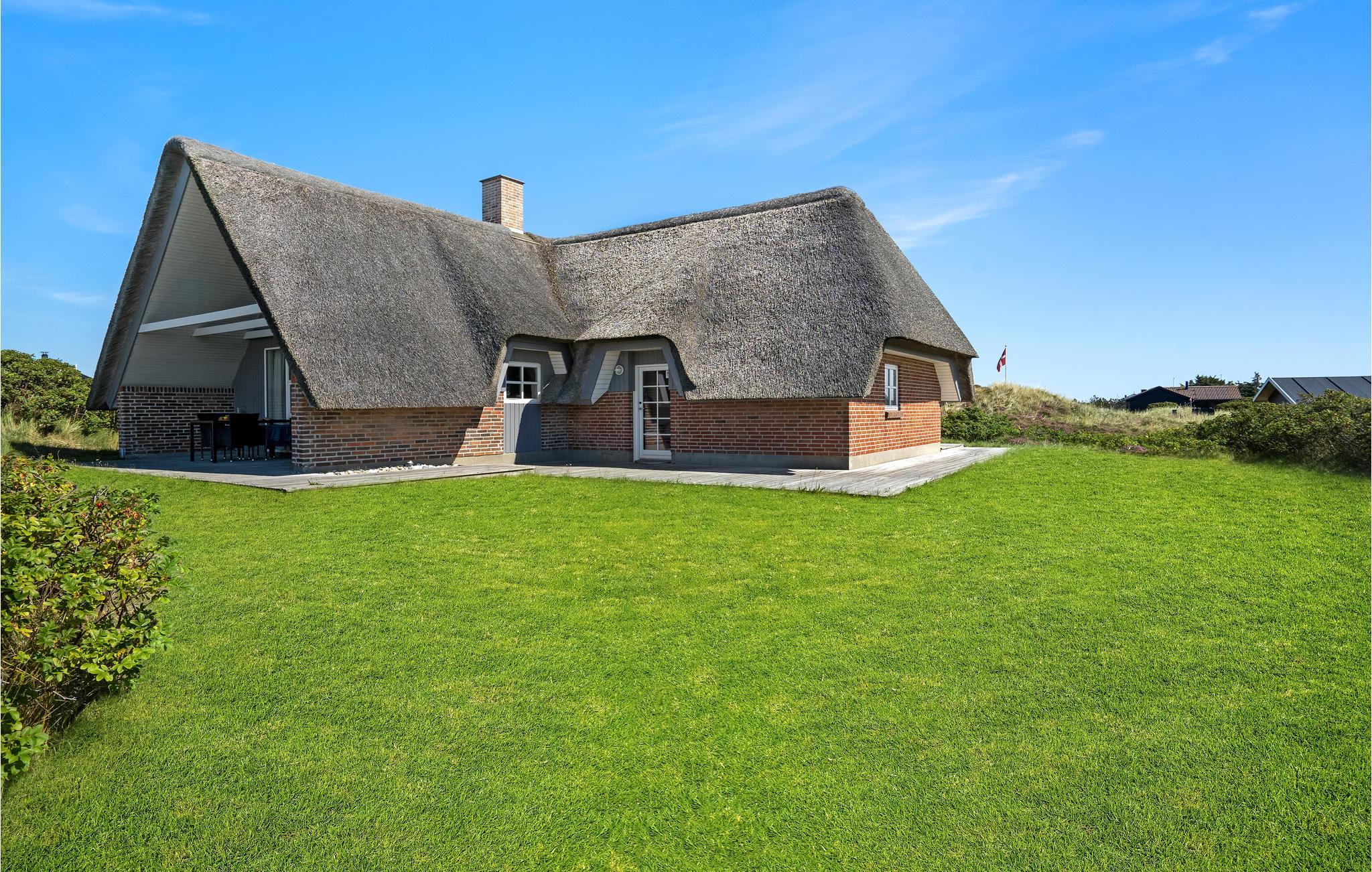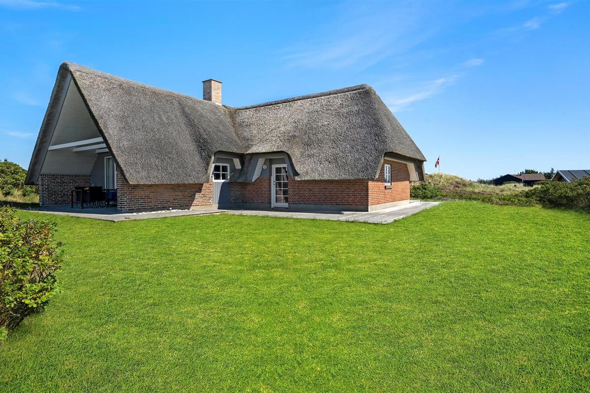 Dit prachtige rietgedekte vakantiehuis ligt op slechts 300 m van de bruisende Noordzee. Op een groot natuurgrondstuk in Bjerregård biedt het veel binnen- en buitenruimte. Het gebouw is zeer goed onderhouden en door regelmatig onderhoud oogt het licht en modern.