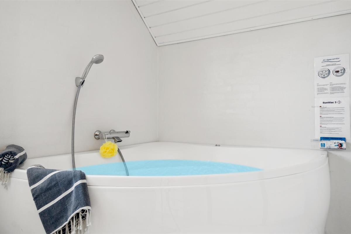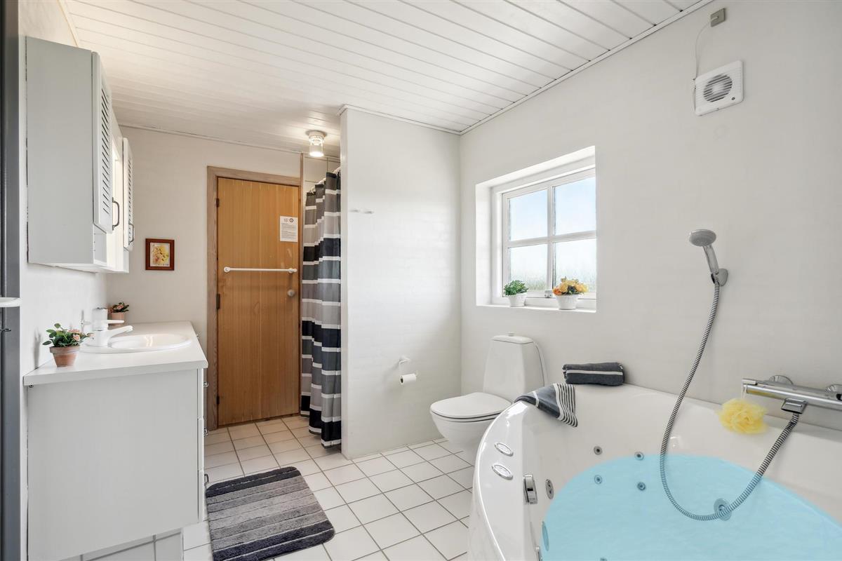 In het huis is er een comfortabele badkamer met douche, whirlpool en toegang tot de sauna en een apart gastentoilet.