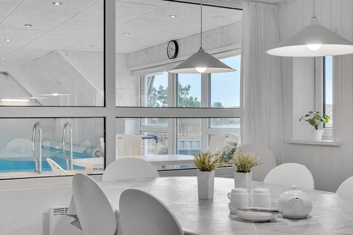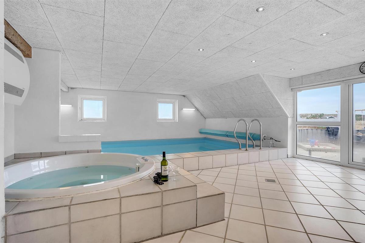 Een prachtig vakantiehuis met een groot zwembad en lage energiekosten door energiebesparende warmtebronnen. Ook heeft u een fantastisch uitzicht op de heide en de duinen bij de Noordzee. De uitnodigende inrichting van het huis, met goede slaapkamers, een gezellige woonkamer met open keuken en open haard, een whirlpool voor vijf personen en een sauna vormen het decor voor een geweldige en ontspannen vakantie. Het strand ligt op slechts 400 m afstand en nodigt uit tot zwemmen en wandelen, terwijl de zee en de beukende golven voor rust en ontspanning zorgen. Bezoek de omgeving, bijvoorbeeld Hvide Sande met vissershaven, mogelijkheden om te waterskiën, surfen en vissen; Ringkøbing, een oud stadje met smalle straatjes en steegjes of Bork Havn met gezellige fjordenhaven en een spannend Vikingmuseum. Rondom een perfect vakantiehuis en een geweldige omgeving.
