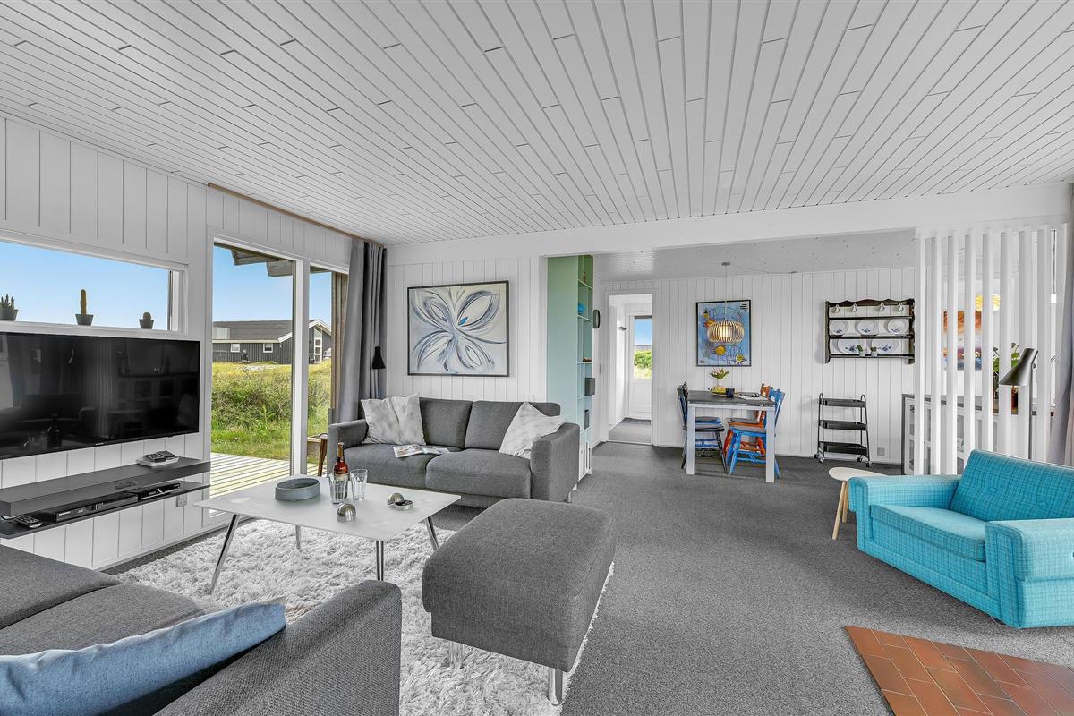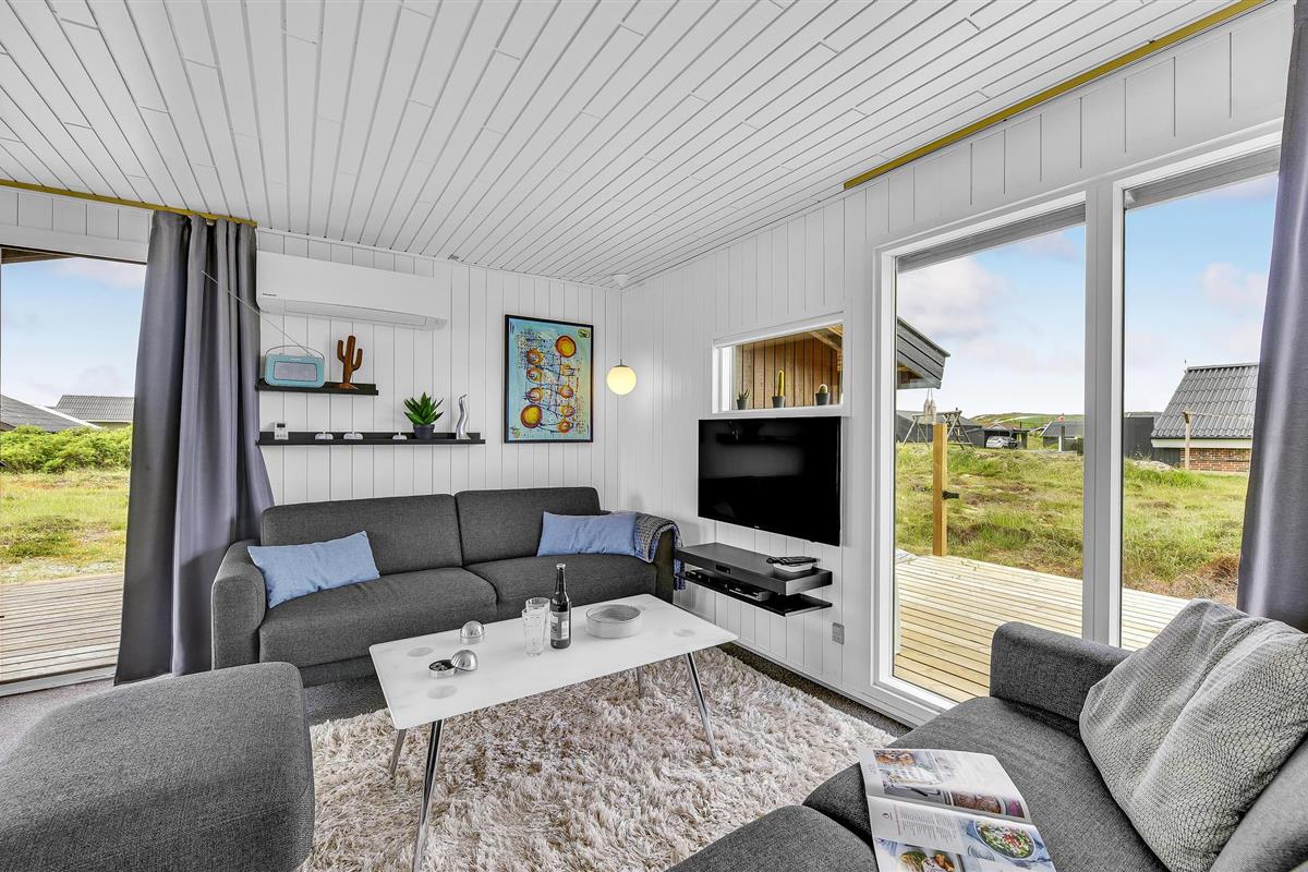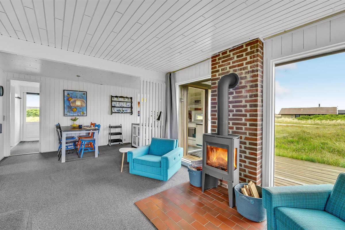 In het mooie vakantieoord Bjerregård ligt dit vakantiehuis op een open natuurperceel met direct uitzicht op de duinen. Vanaf het huis is het slechts 300 m in de ene richting naar Ringkøbing Fjord en 300 m in de andere richting naar de fantastische zandstranden van de Deense Noordzee.