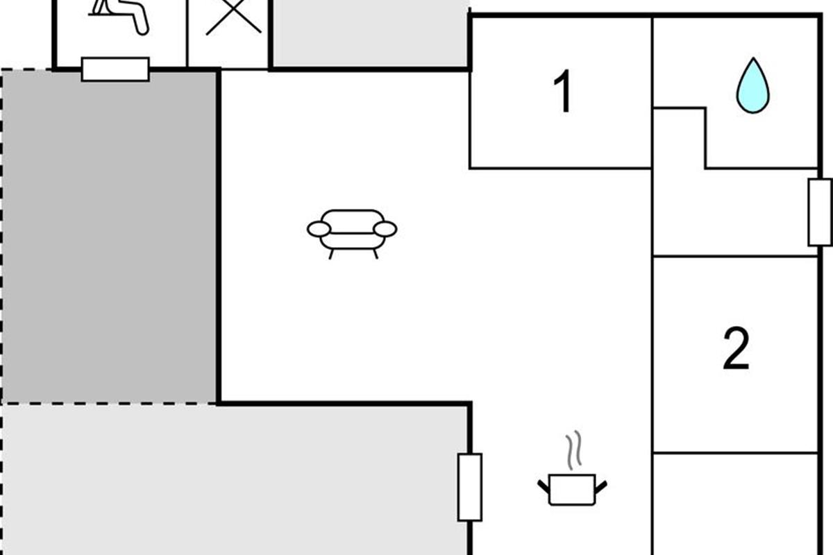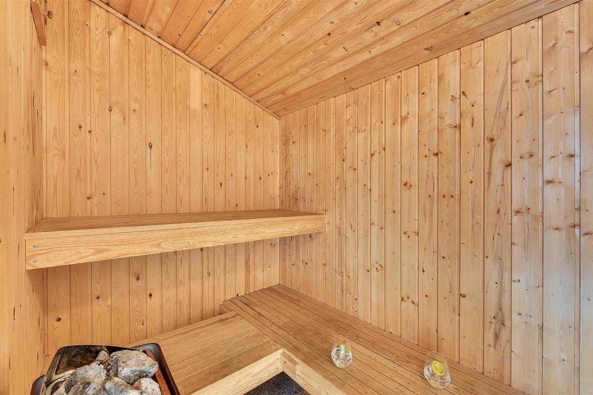 Vanuit de woonkamer leidt een deur direct naar het gedeeltelijk overdekte terras. Er is een zeer mooie badkamer met sauna en in totaal drie slaapkamers, ingericht met een tweepersoonsbed of een stapelbed.