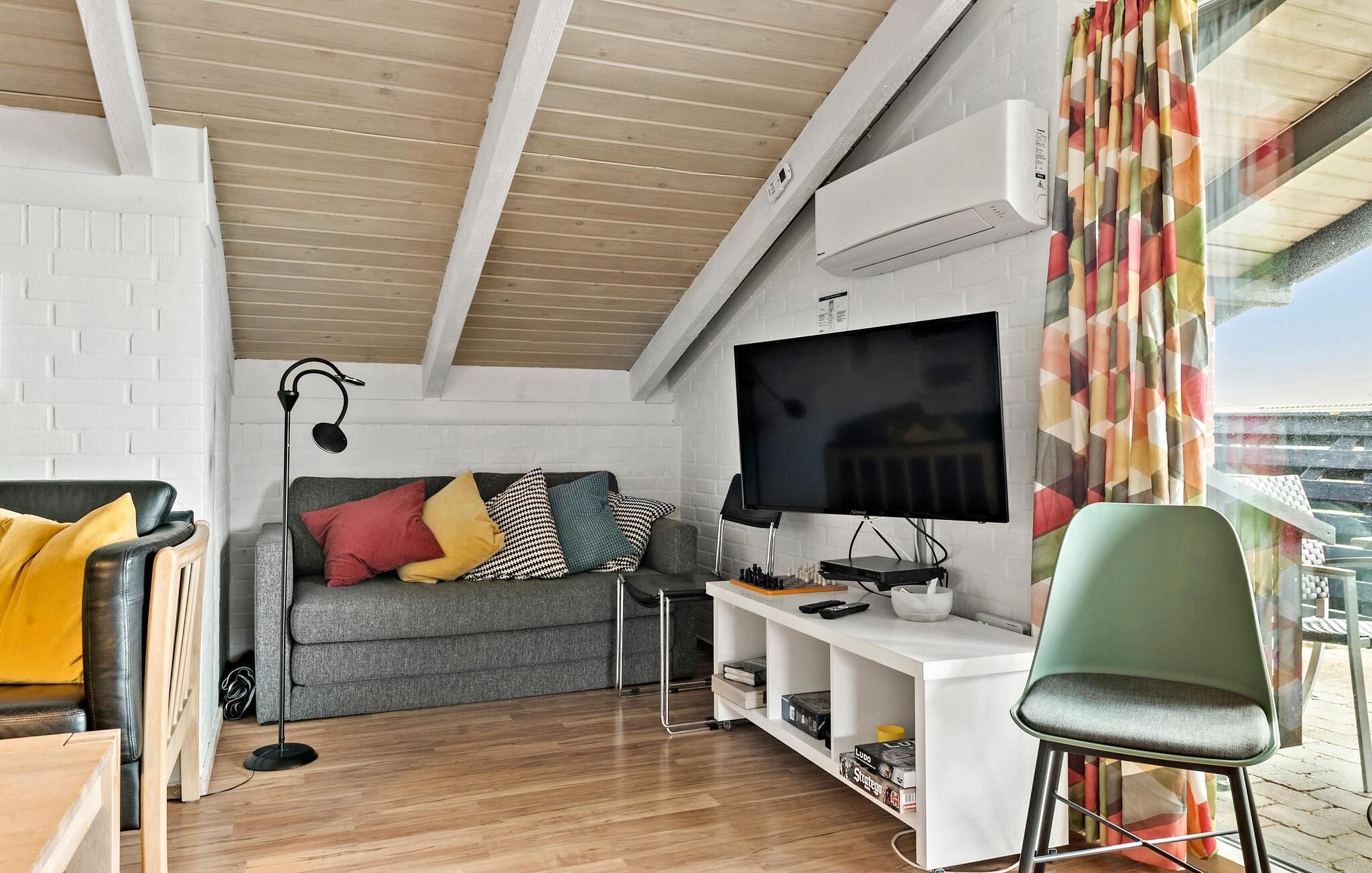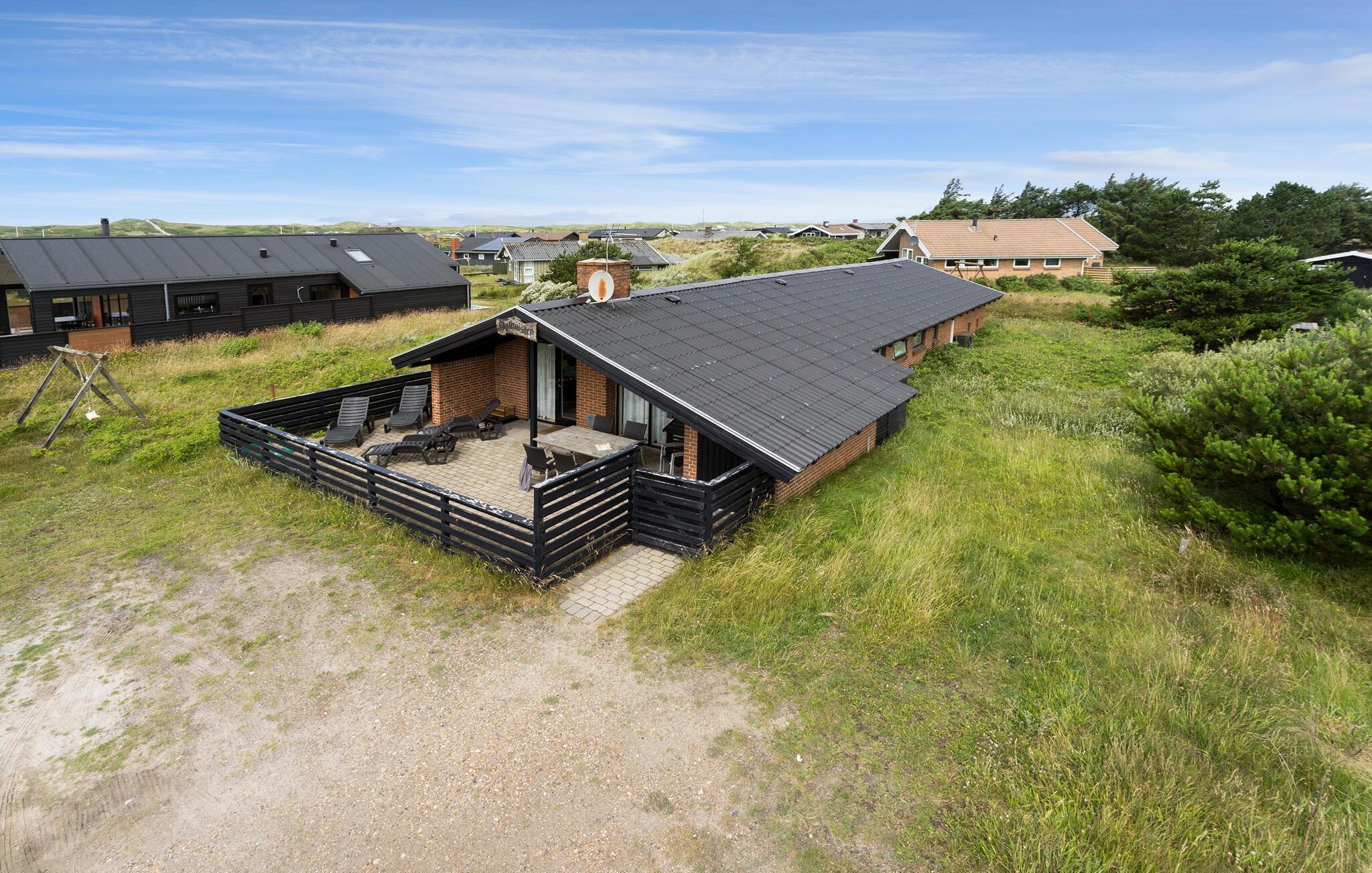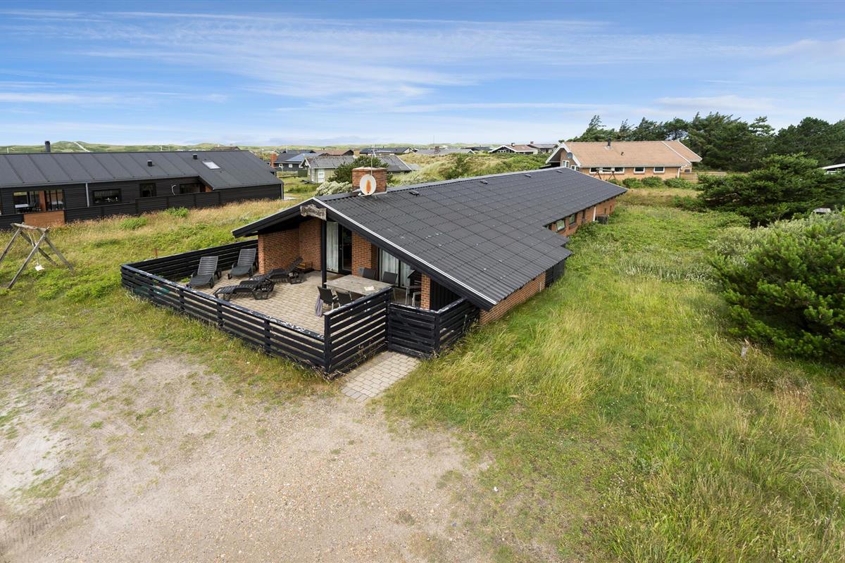 Vrolijk en energiezuinig vakantiehuis "Optimisten" met zwembad nabij het brede Noordzeestrand en Ringkøbing Fjord.