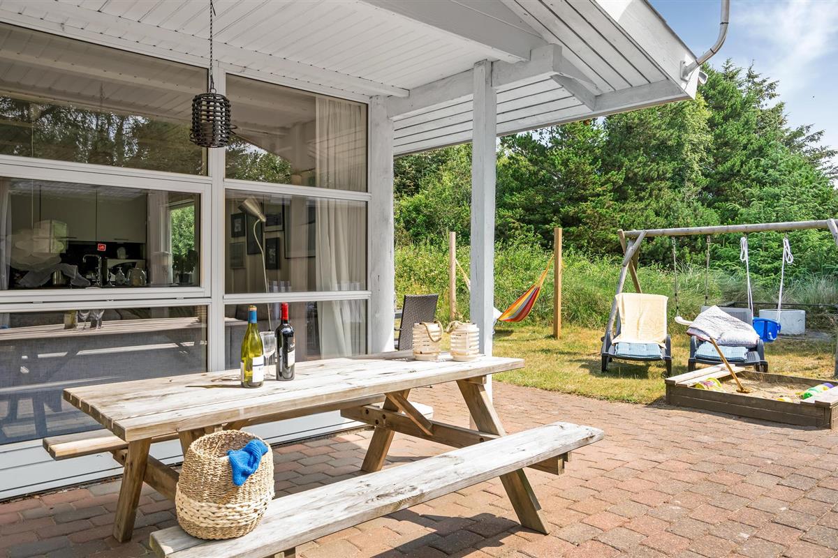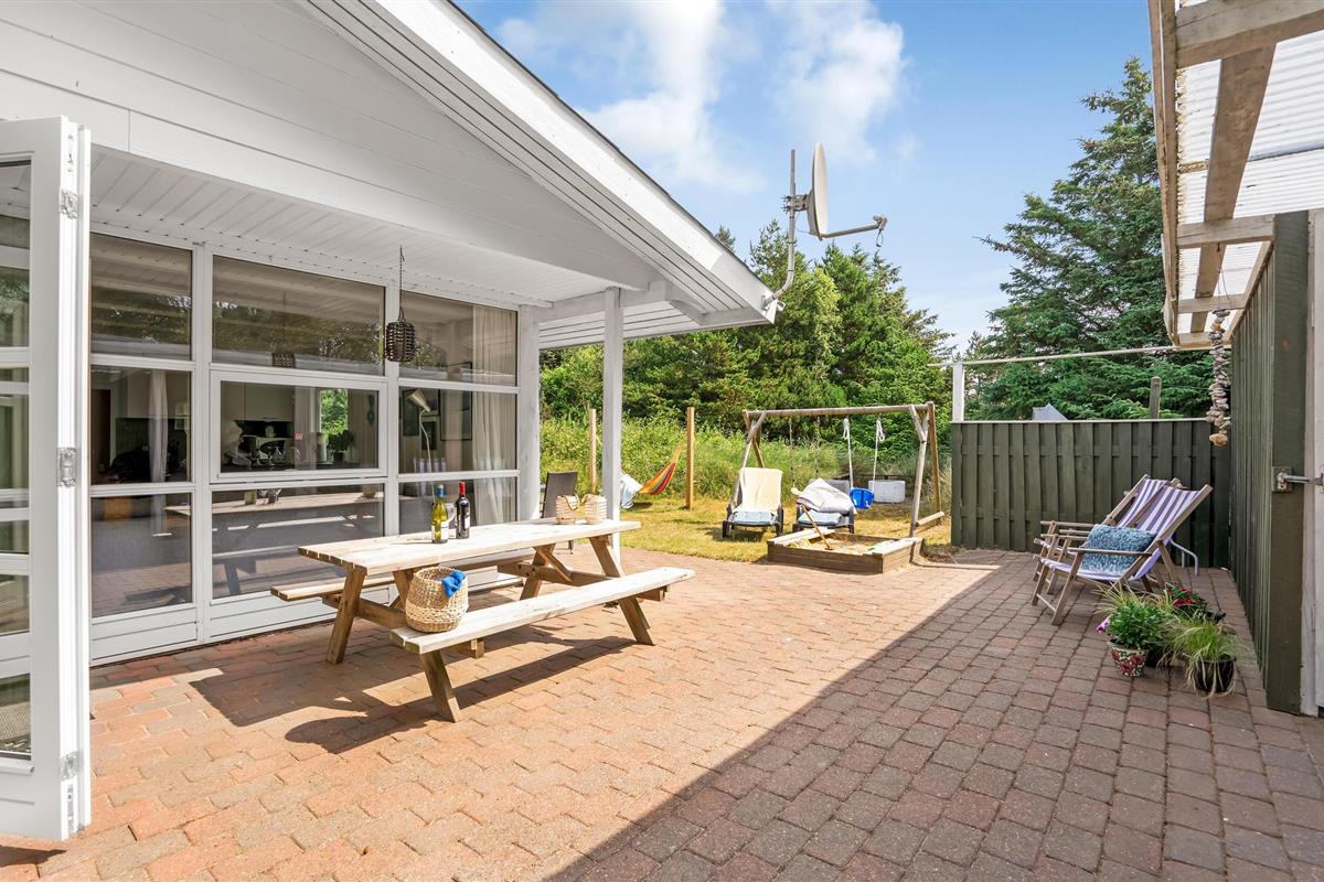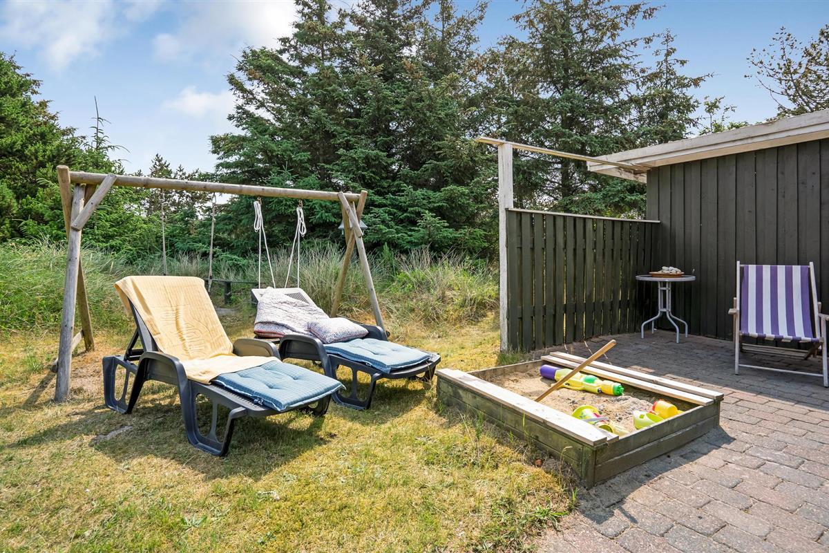 Buiten vindt u een groot, afgesloten terras aan de ene kant van het huis en een kleiner aan de andere kant. Gezellige hoekjes, een kampvuurplaats, zandbak en schommel maken de heerlijke buitenruimte compleet.