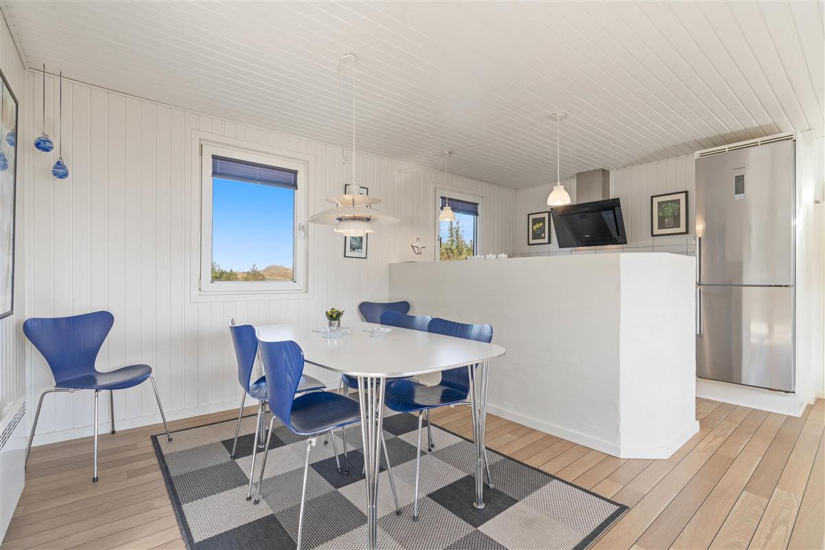 The bathroom has underfloor heating and access to a lovely sauna, perfect for relaxing wellness evenings. The attractive kitchen comes equipped with a dishwasher and opens onto the living and dining area. The living room features comfortable furniture, and from the sofa you can enjoy wonderful views of Ringkøbing Fjord while relaxing by the crackling wood-burning stove.