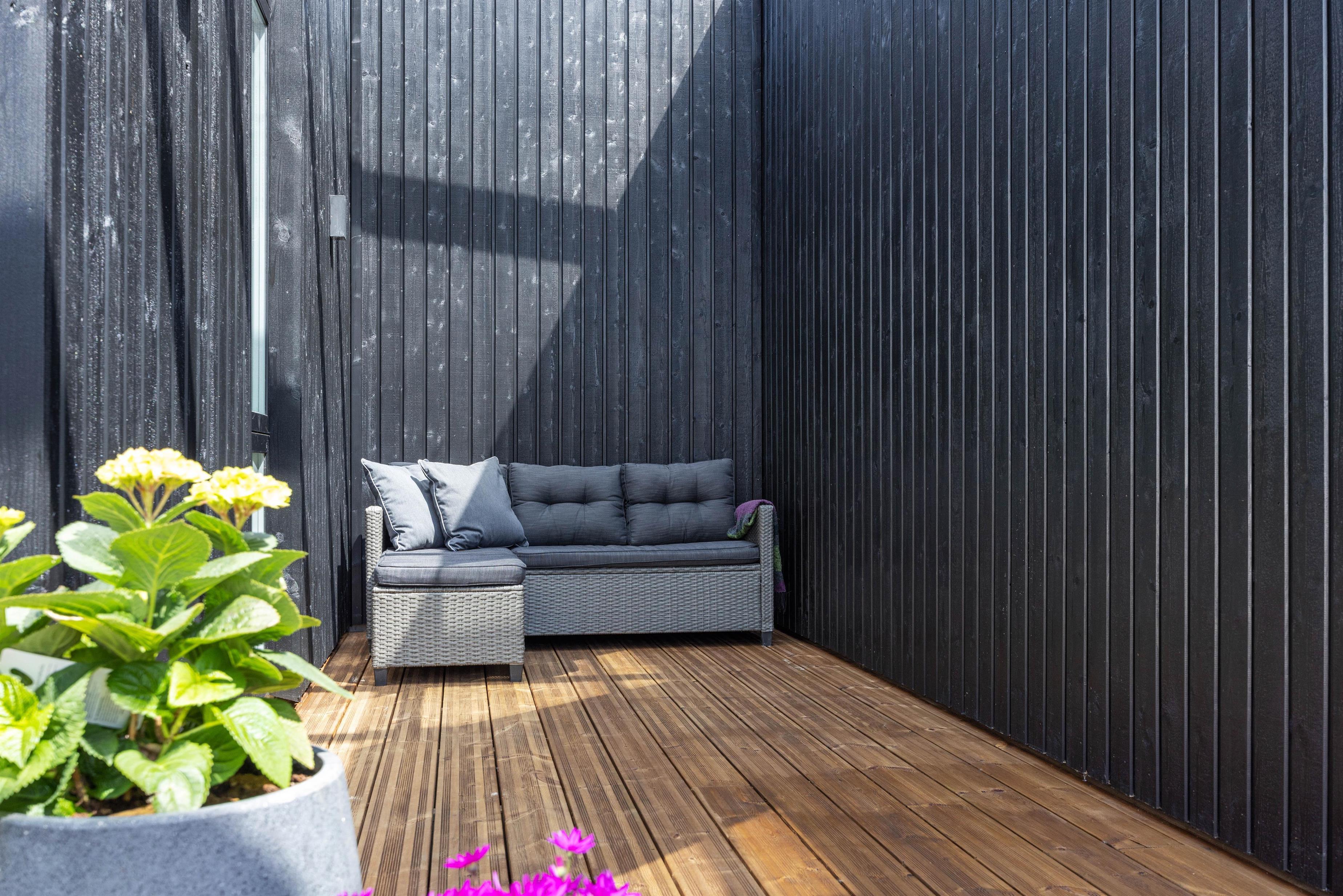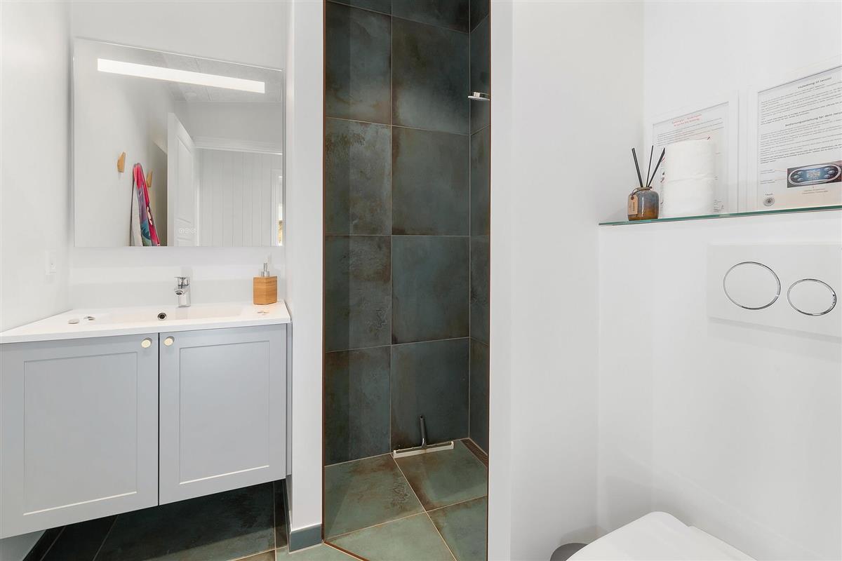 The outdoor shower, available from April to November, is perfect for refreshing after a beach visit. Comfortable garden furniture invites you to relax in the sun while enjoying a cool glass of wine and a delicious barbecue on the south and west-facing terrace.