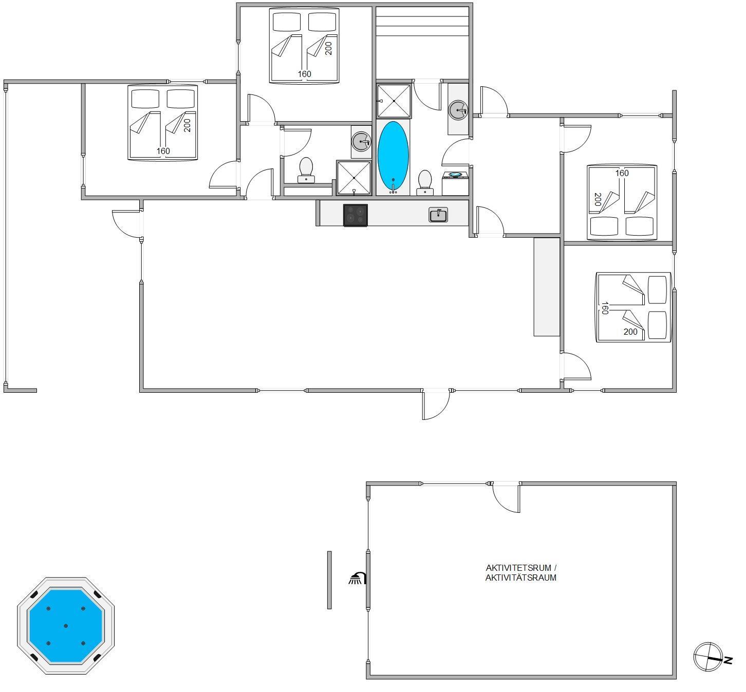 Located at Bjerregårdsvej 470, this beautiful modern activity home offers space for up to 8 people to enjoy an unforgettable holiday. Built in 2021, this holiday home welcomes you with bright, modern furnishings and is just 100 metres from the beach. Featuring a games room with pool table, sauna, and a spacious outdoor area with shower and hot tub, this holiday home offers everything you could wish for.