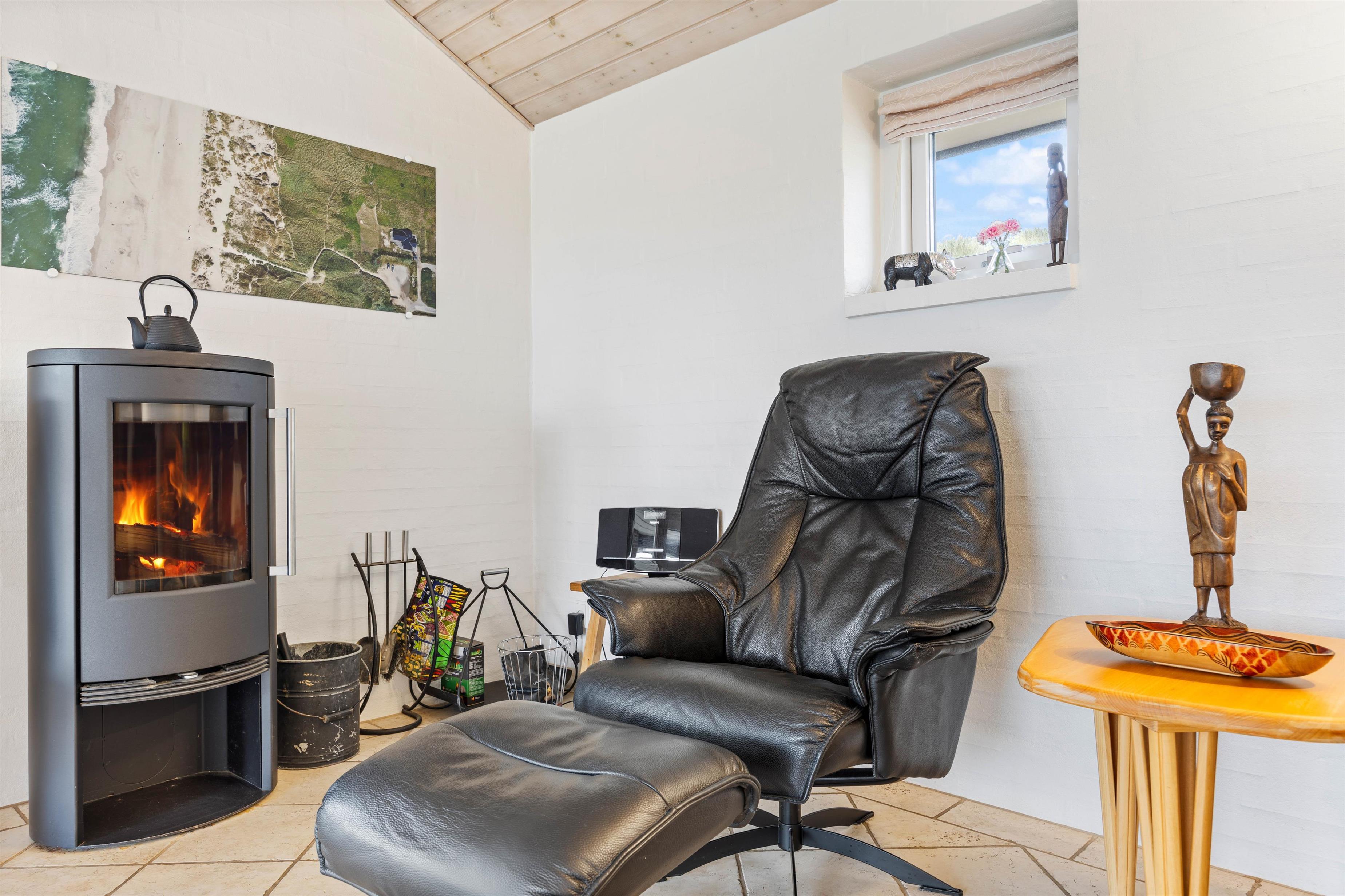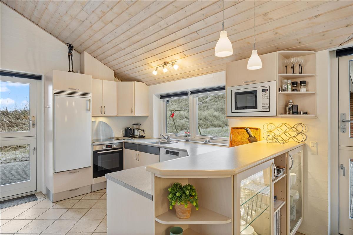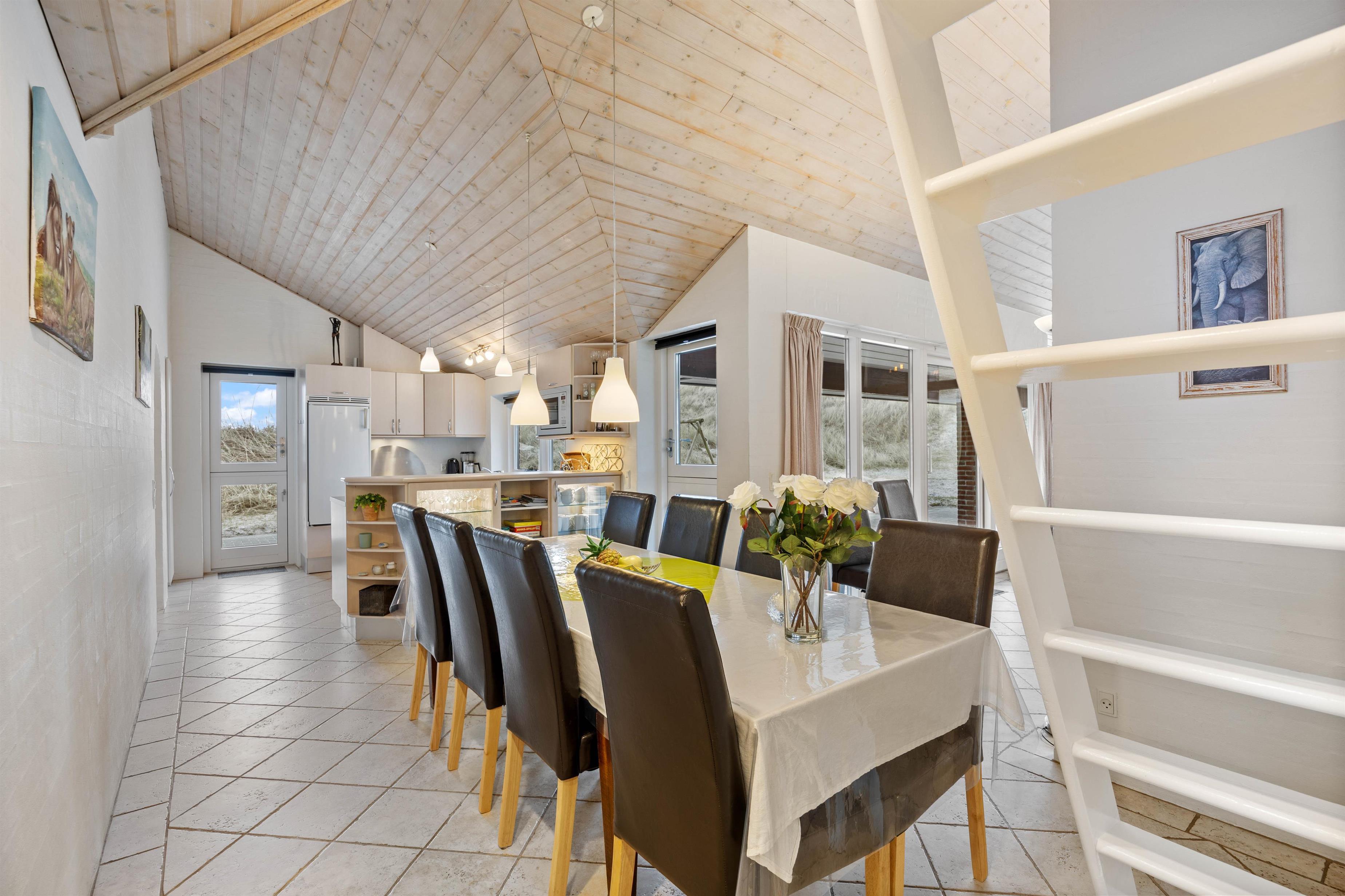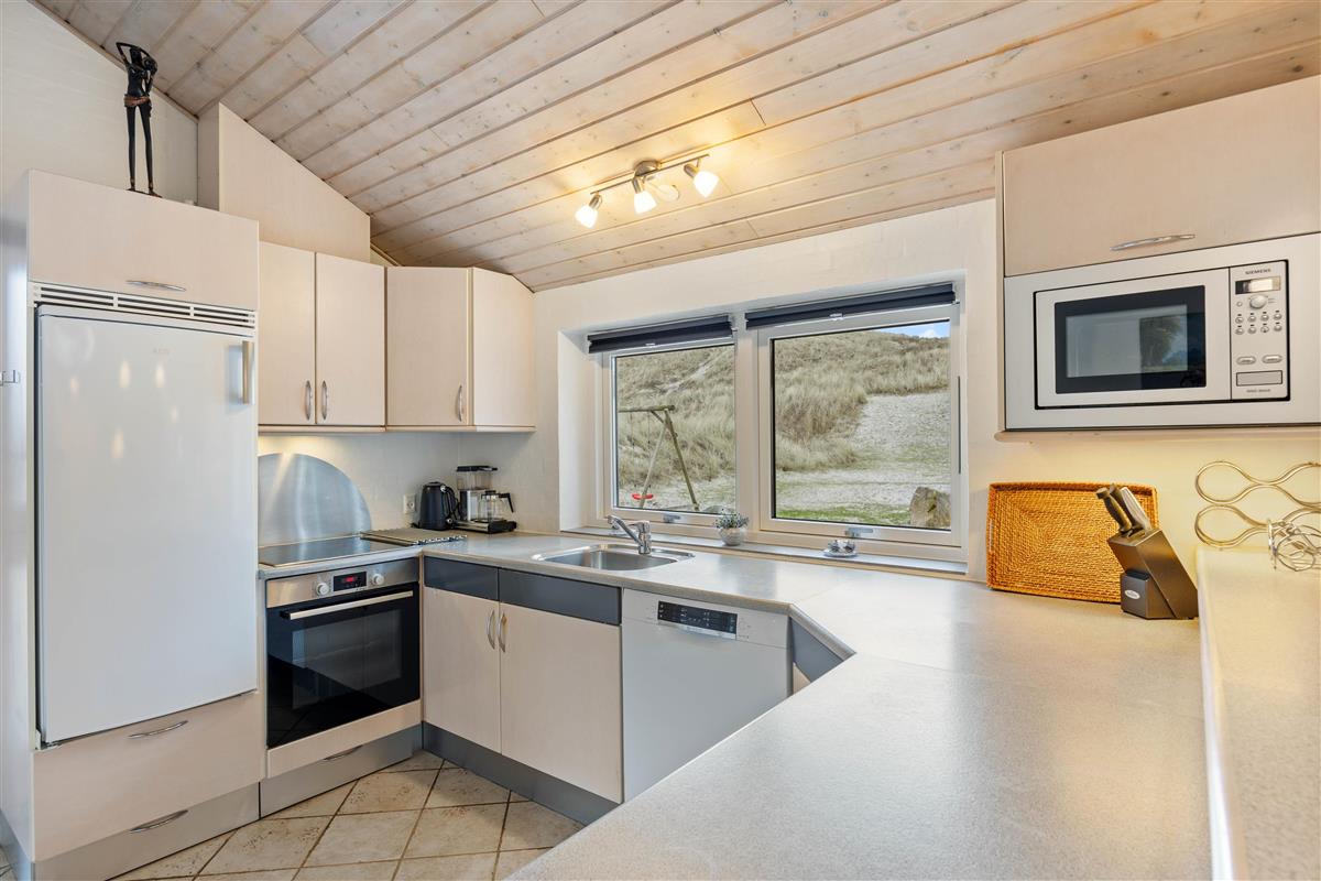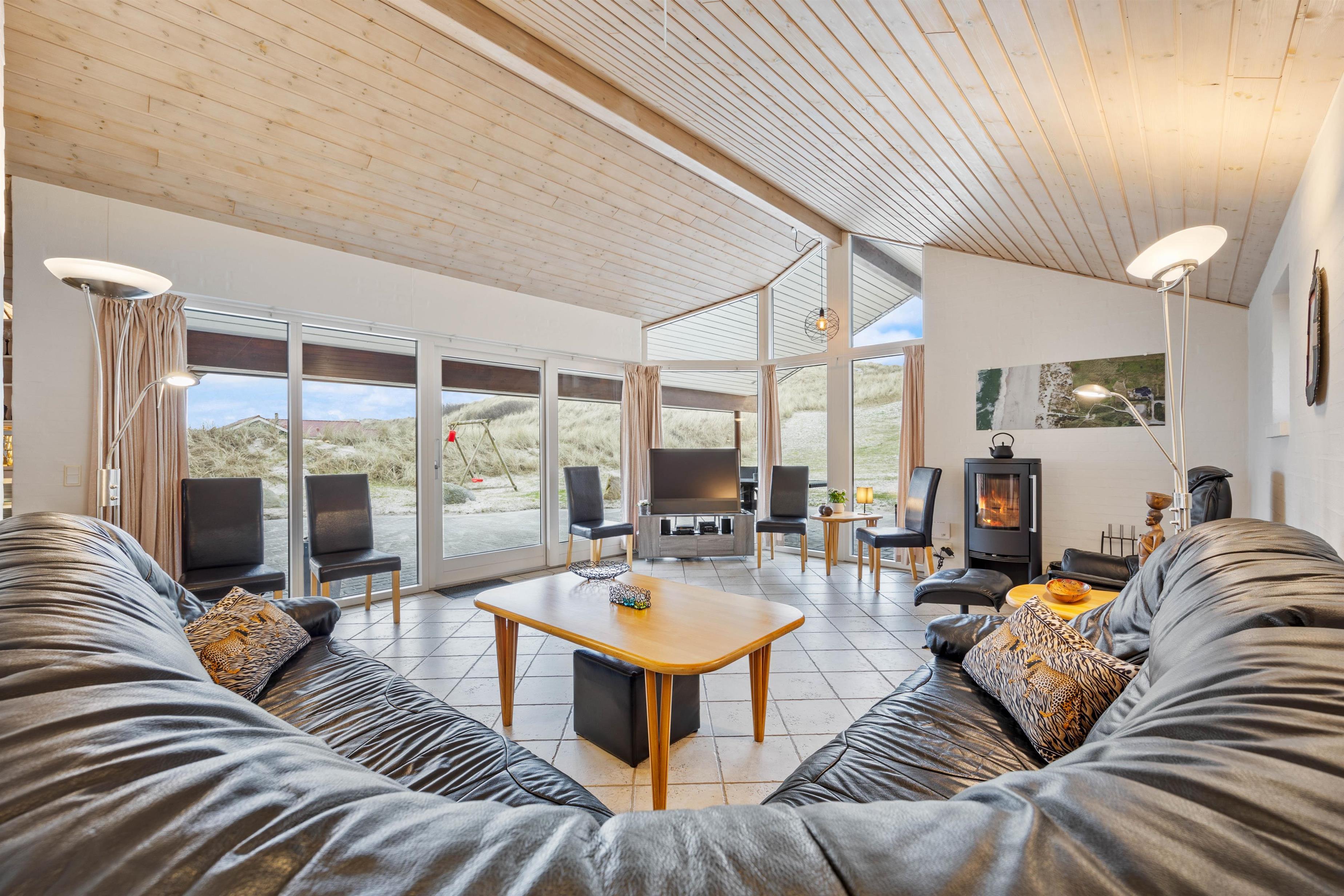 The kitchen is well-designed and fully equipped. The dining area opens into the large, tastefully furnished living room, where panoramic windows offer magnificent views over the dunes. There's also a television with DVD and Blu-ray playback capabilities.