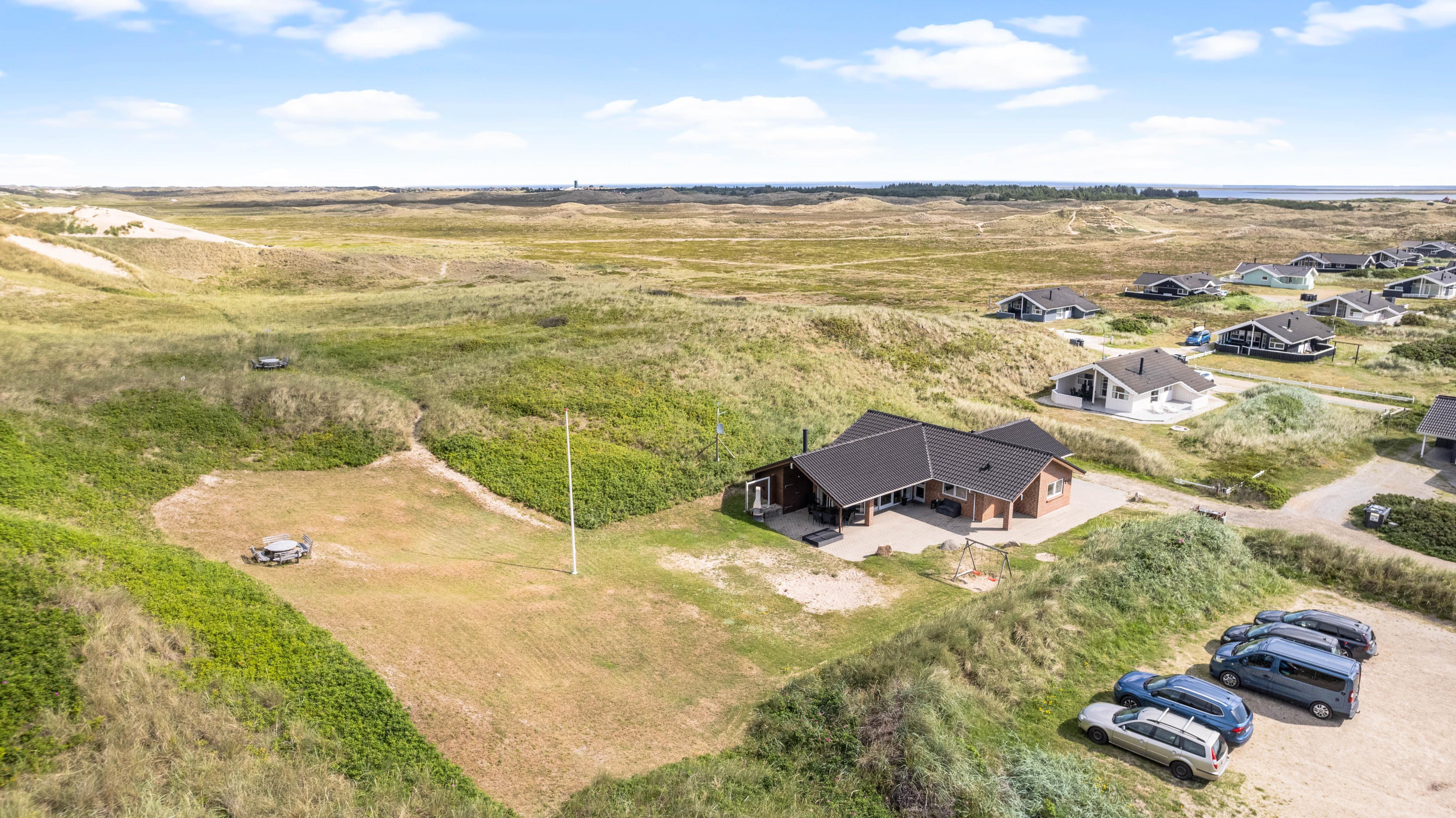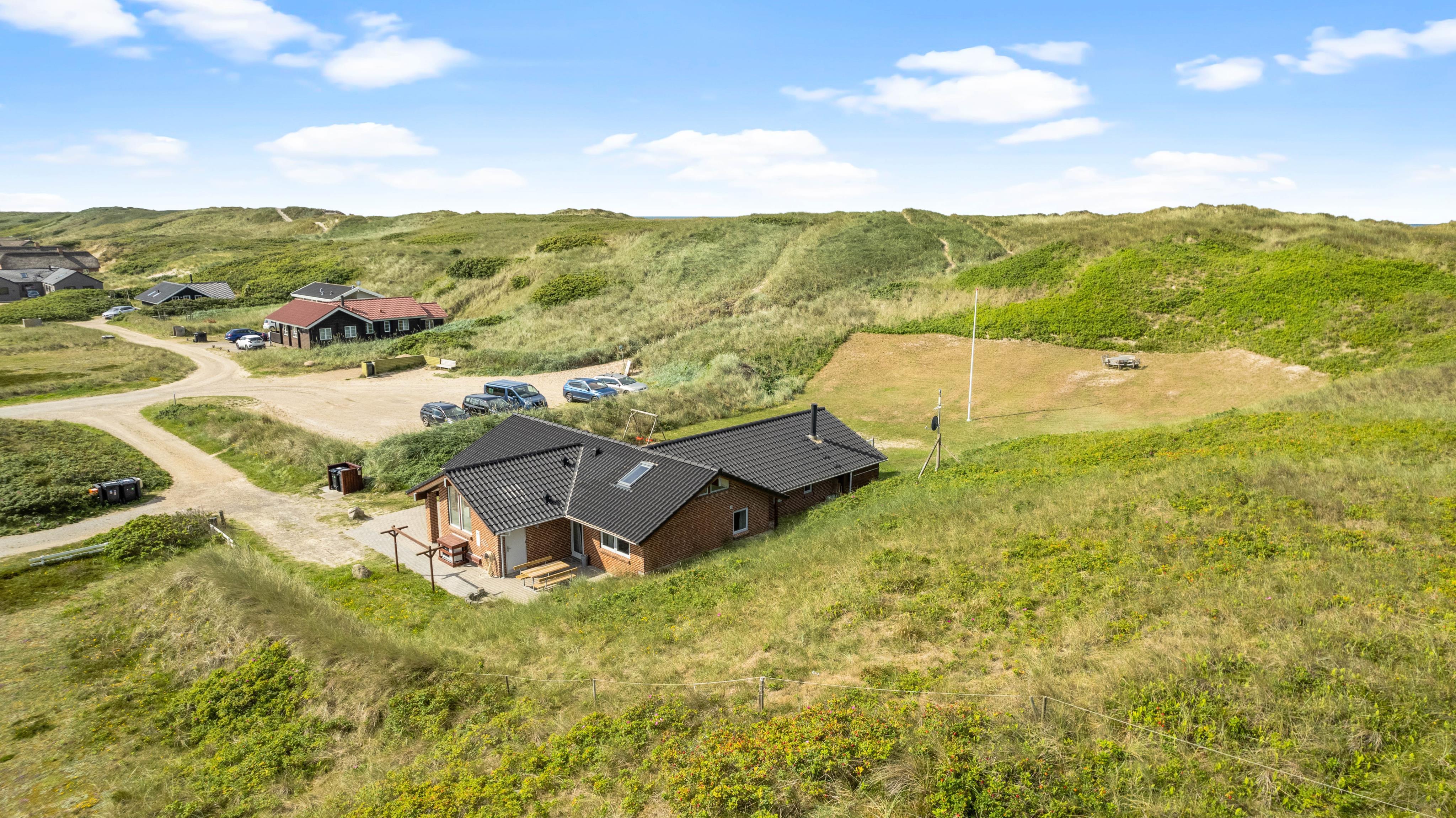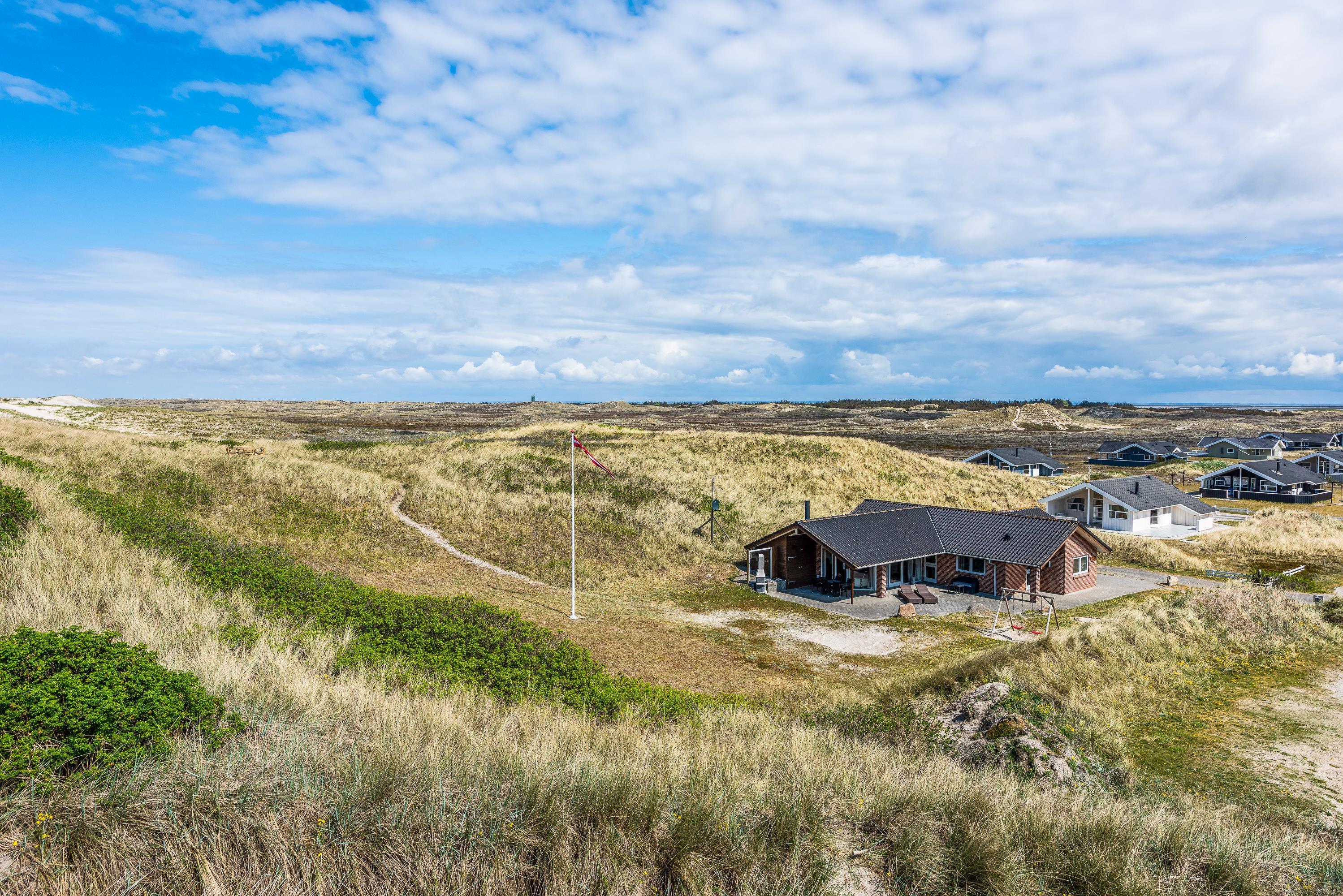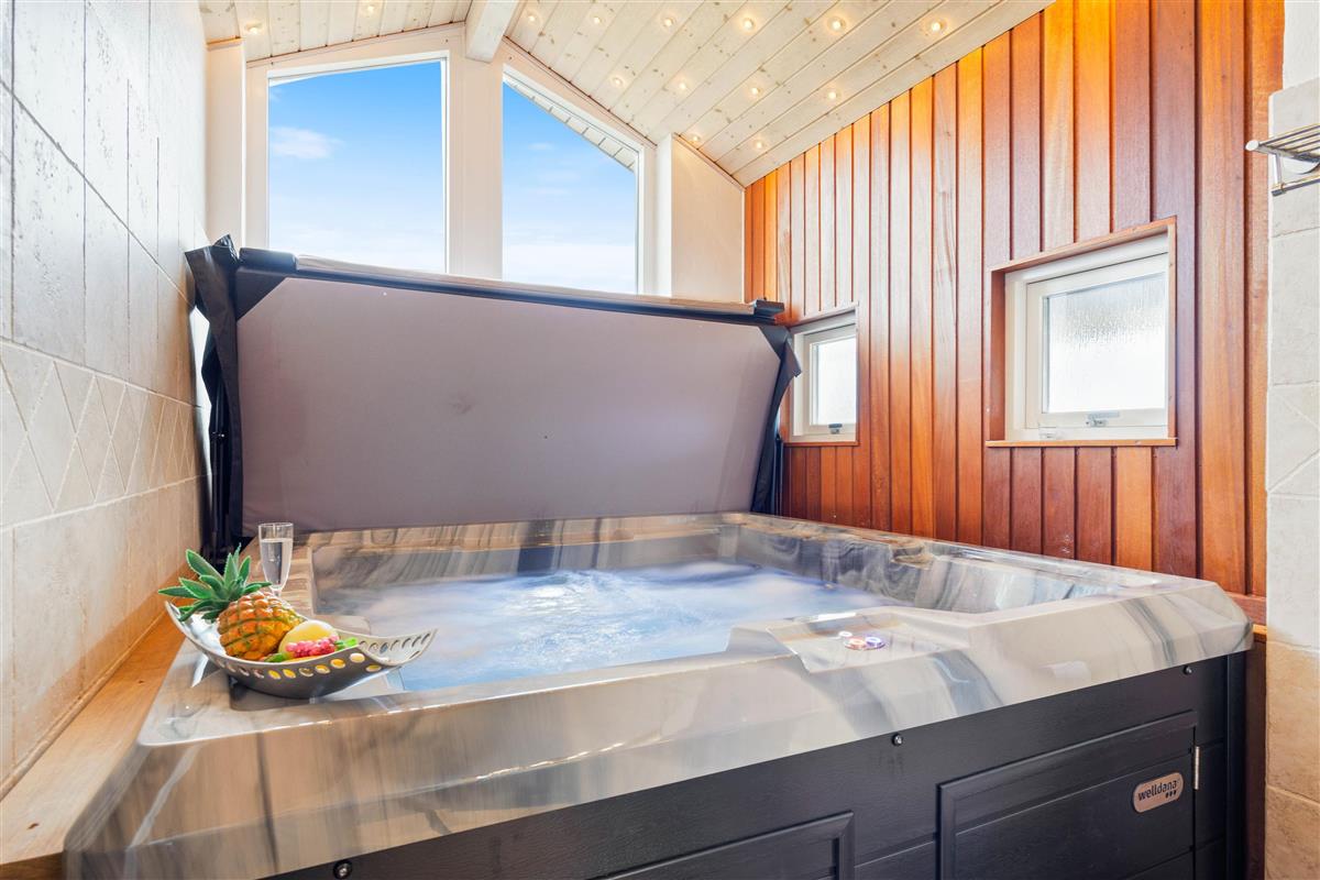 This beautiful holiday home sits on a spacious natural plot at Bjerregårdsvej 384, located in the last row of dunes directly by the beach. It's beautifully and tastefully furnished, featuring large, bright rooms and elegant furnishings made from allergy-friendly materials. The holiday home includes a fantastic 5-person hot tub with low energy consumption, perfect for relaxing evening wellness sessions.