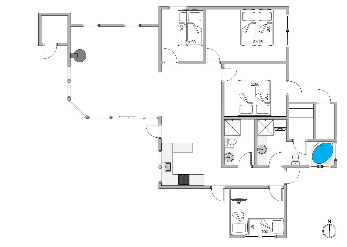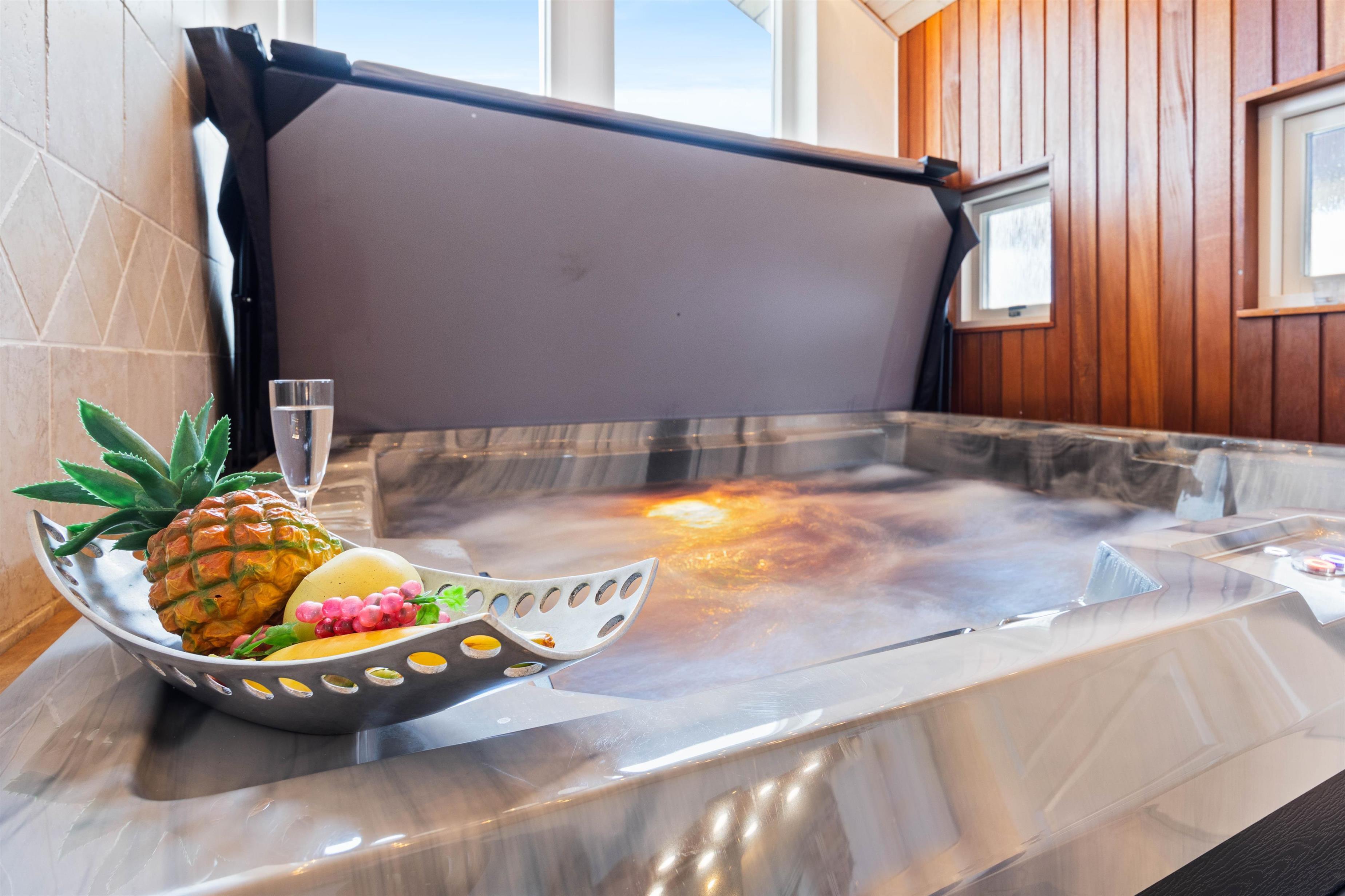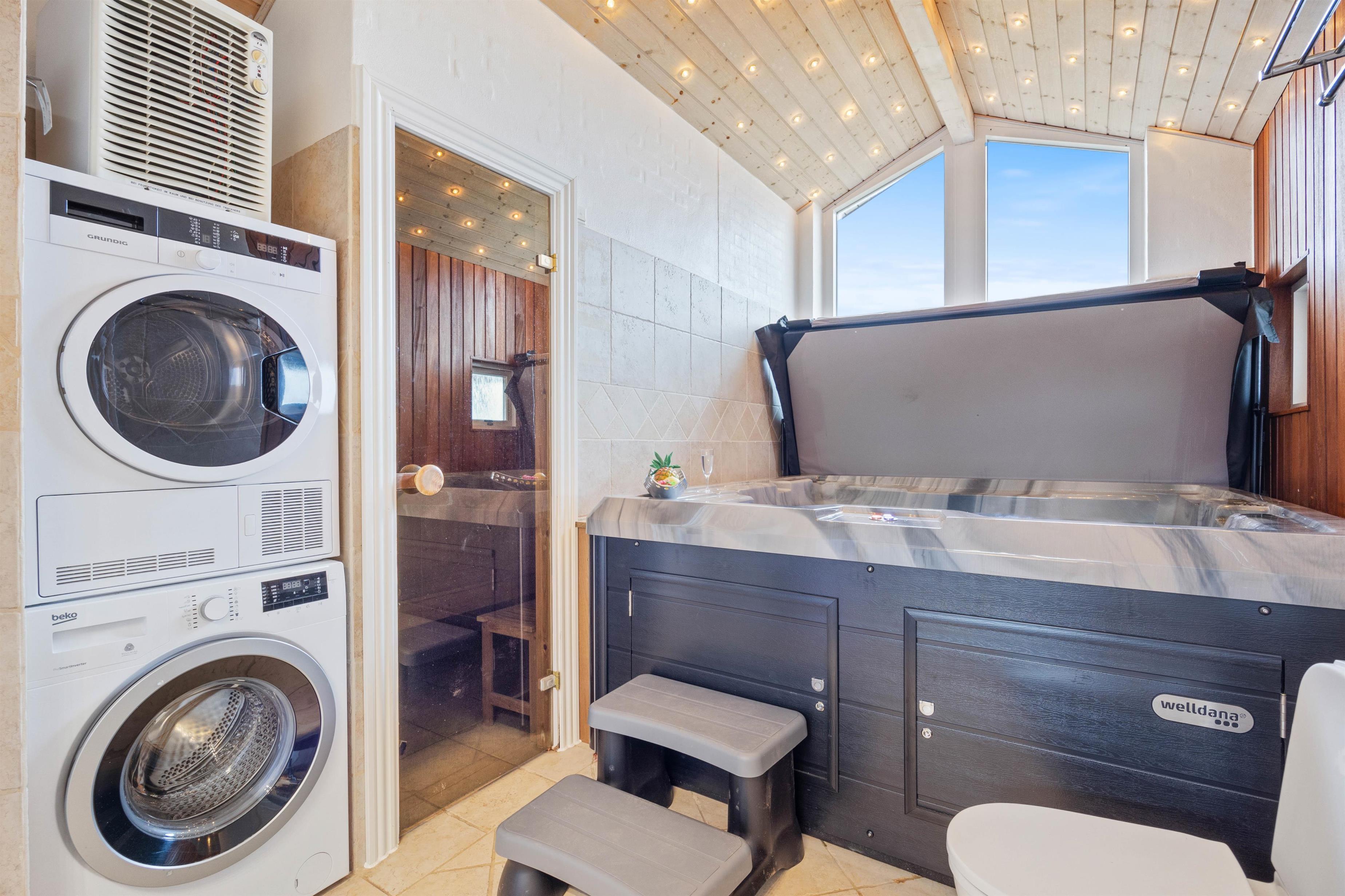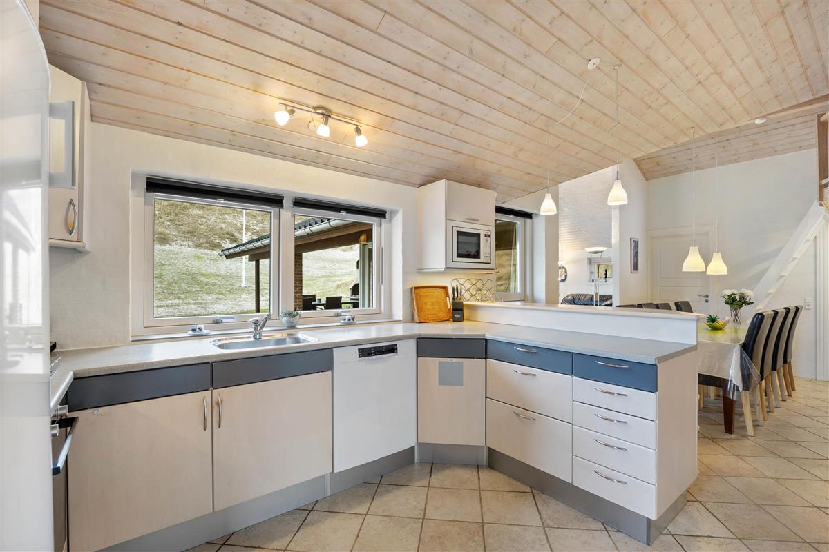 This beautiful holiday home sits on a spacious natural plot at Bjerregårdsvej 384, located in the last row of dunes directly by the beach. It's beautifully and tastefully furnished, featuring large, bright rooms and elegant furnishings made from allergy-friendly materials. The holiday home includes a fantastic 5-person hot tub with low energy consumption, perfect for relaxing evening wellness sessions.
