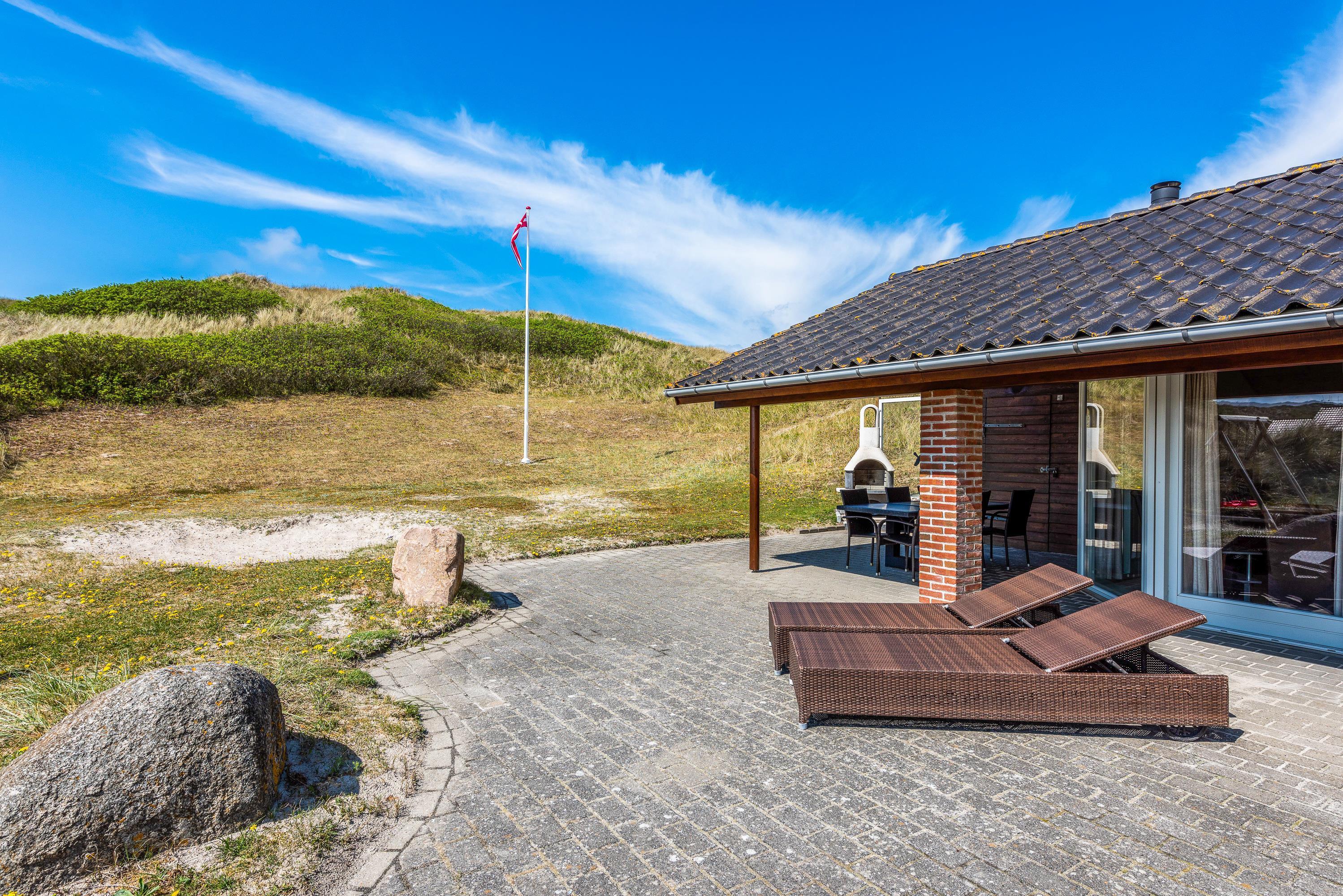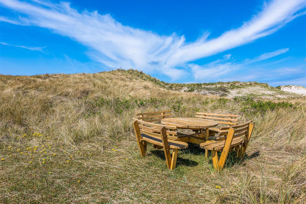 The holiday home enjoys a perfect position directly by the dunes of your holiday region, with the North Sea just a two-minute walk away for morning swims. The terrace surrounds the entire house and is screened for privacy, ensuring you'll always find a sheltered spot out of the wind.