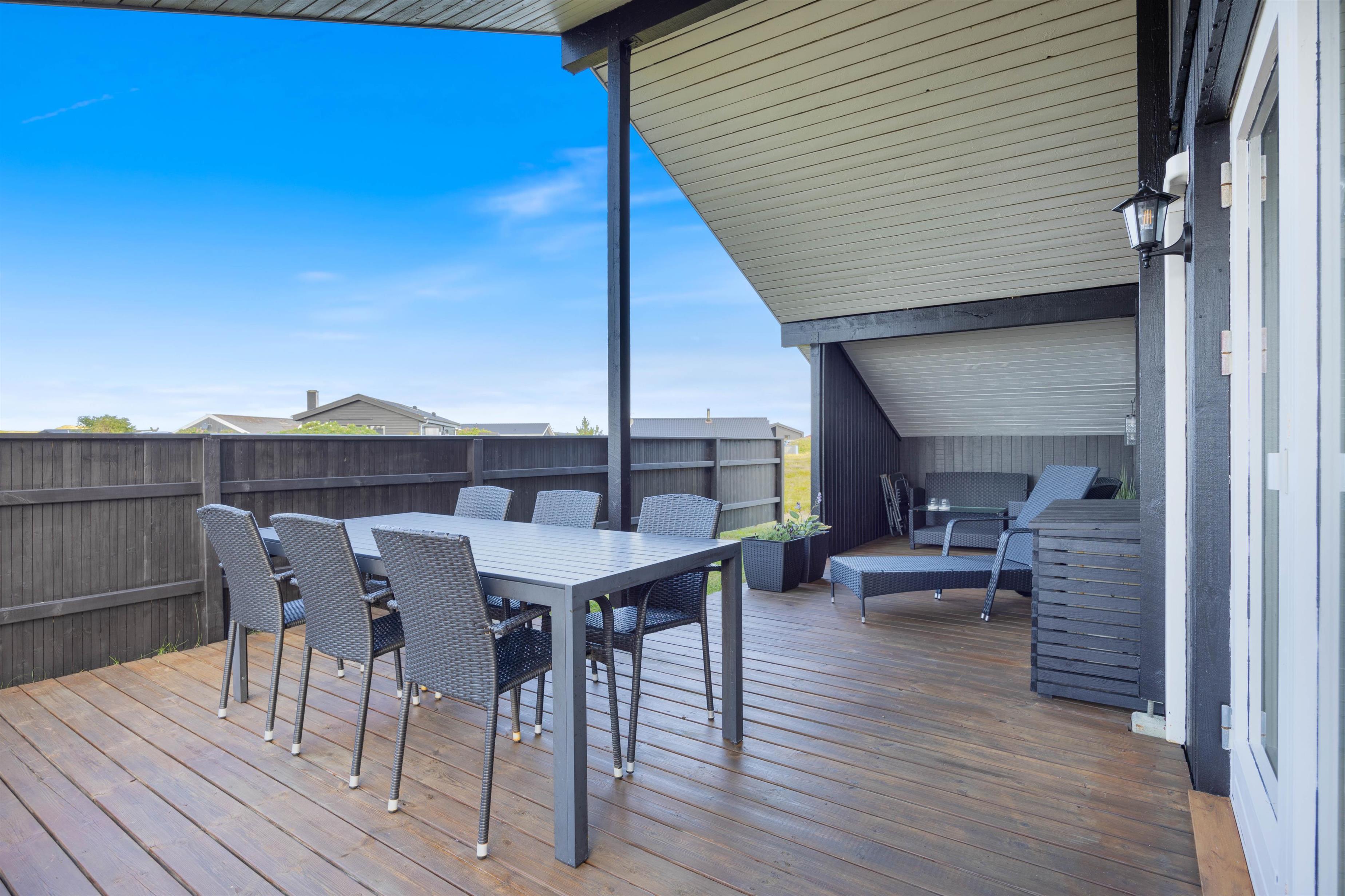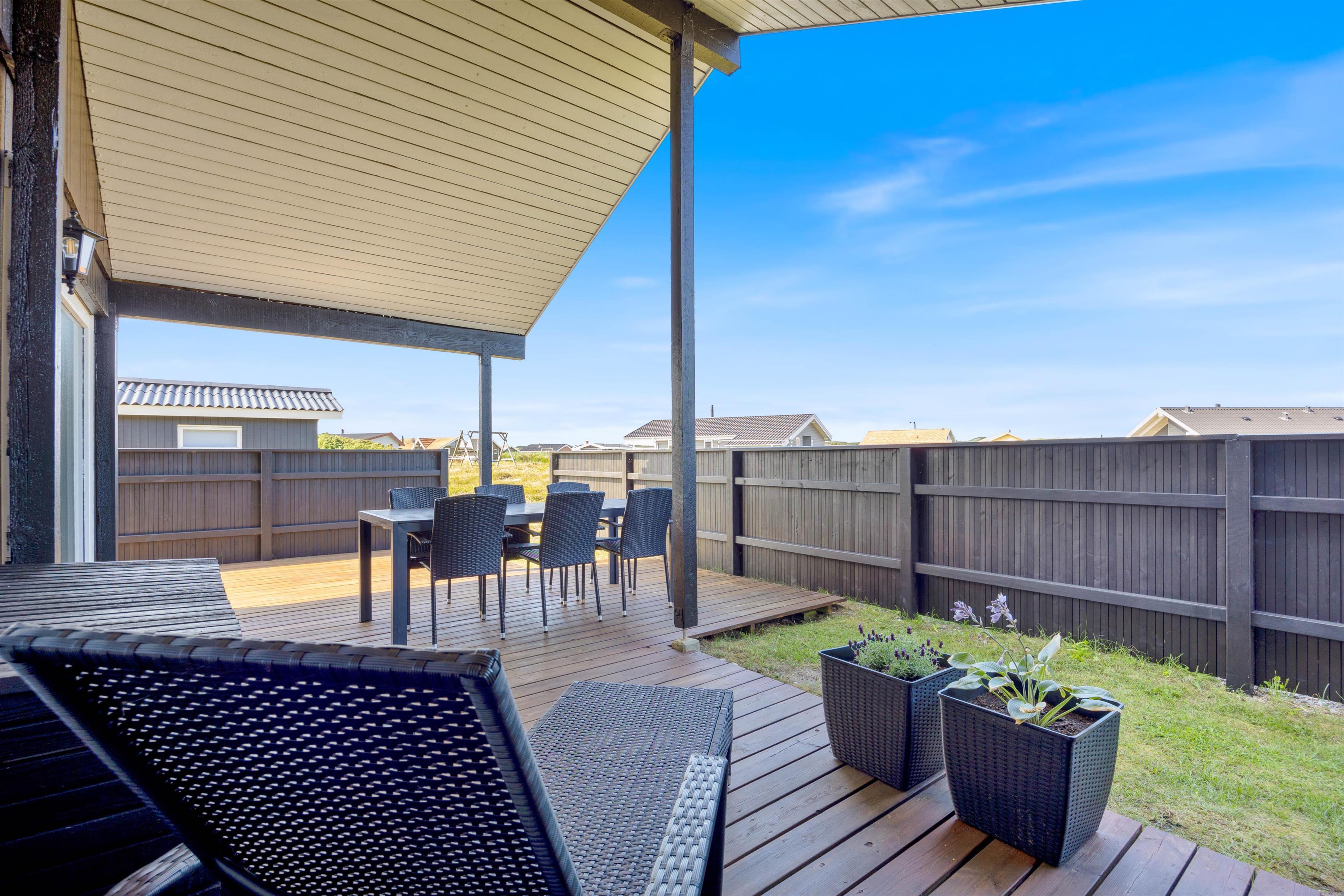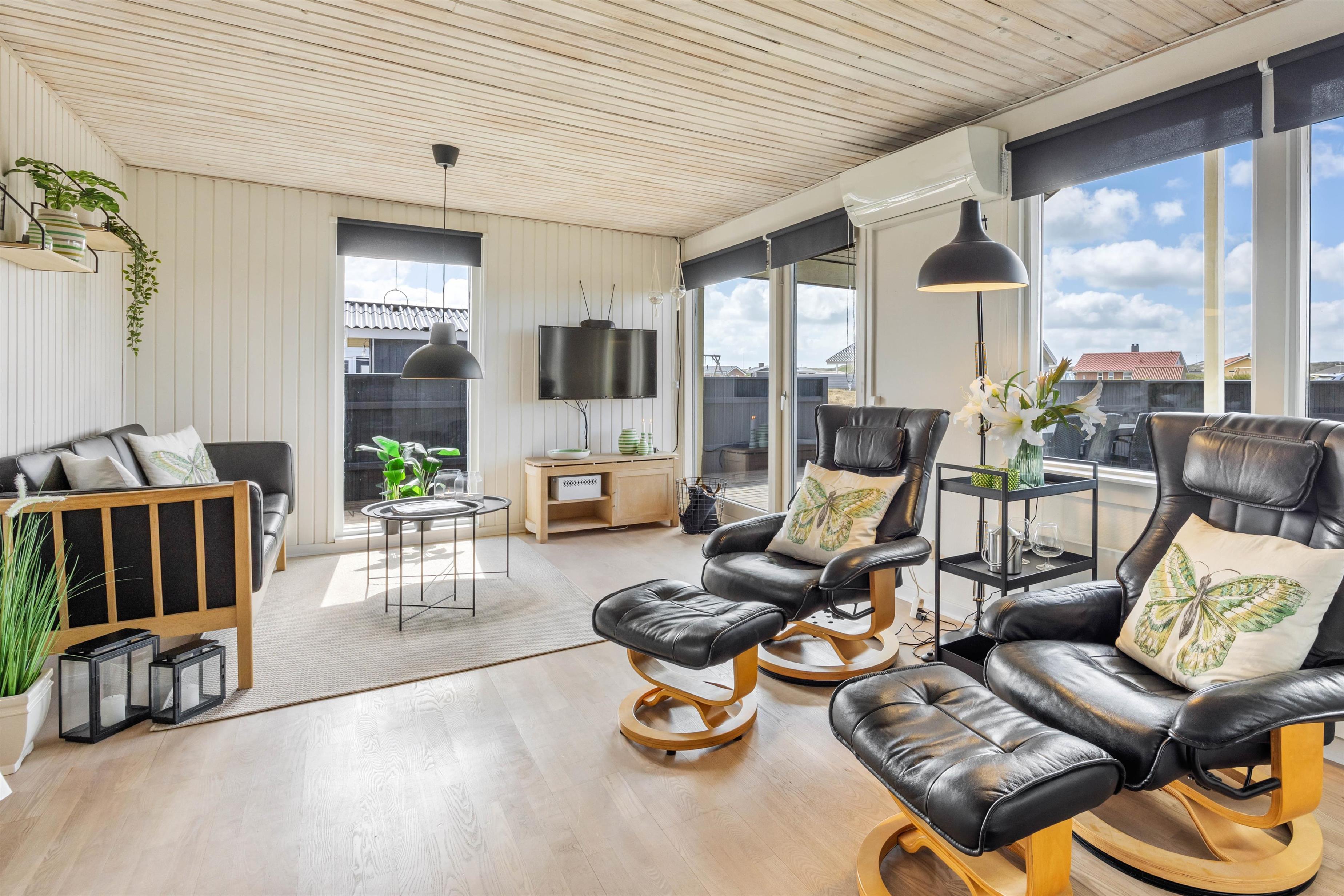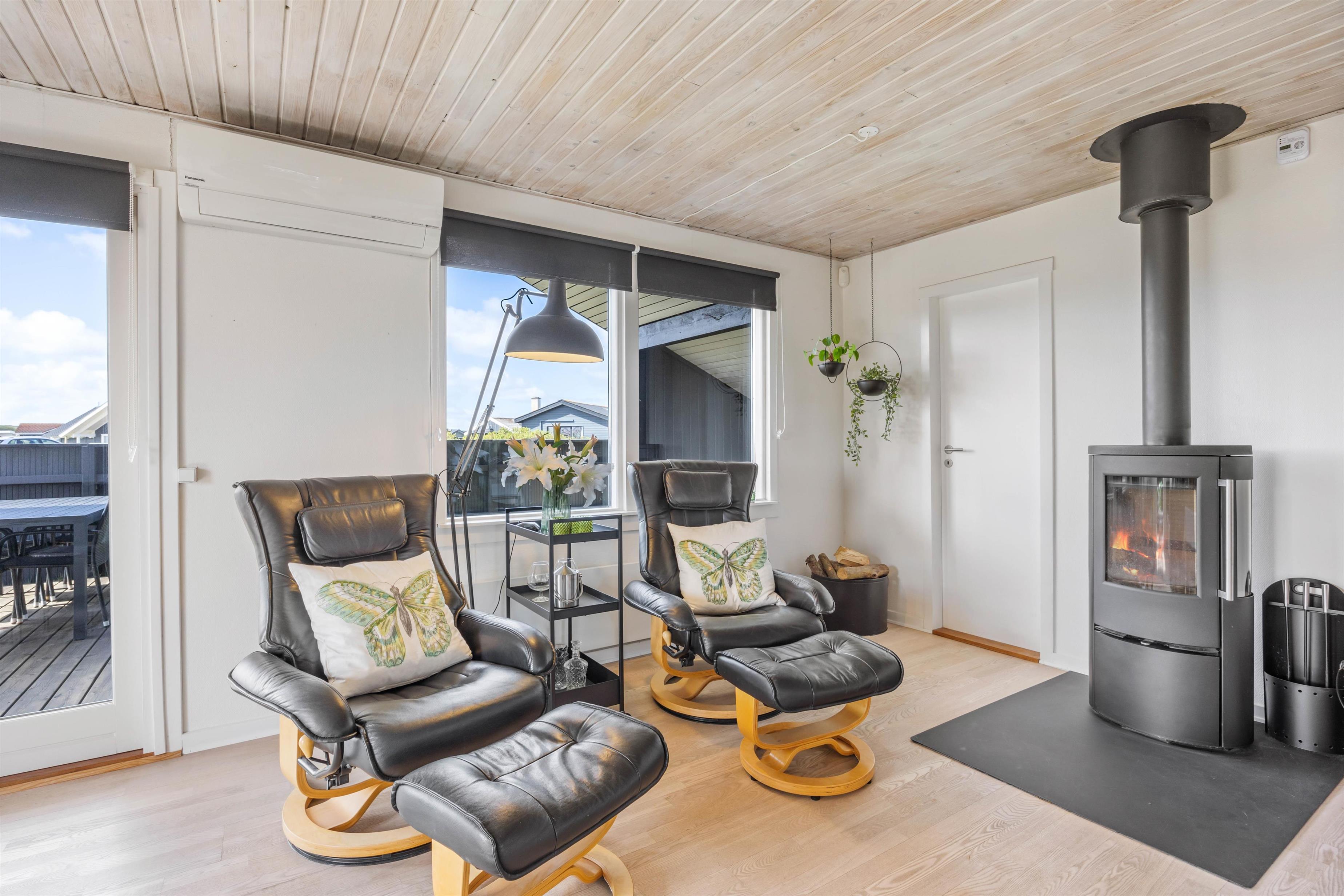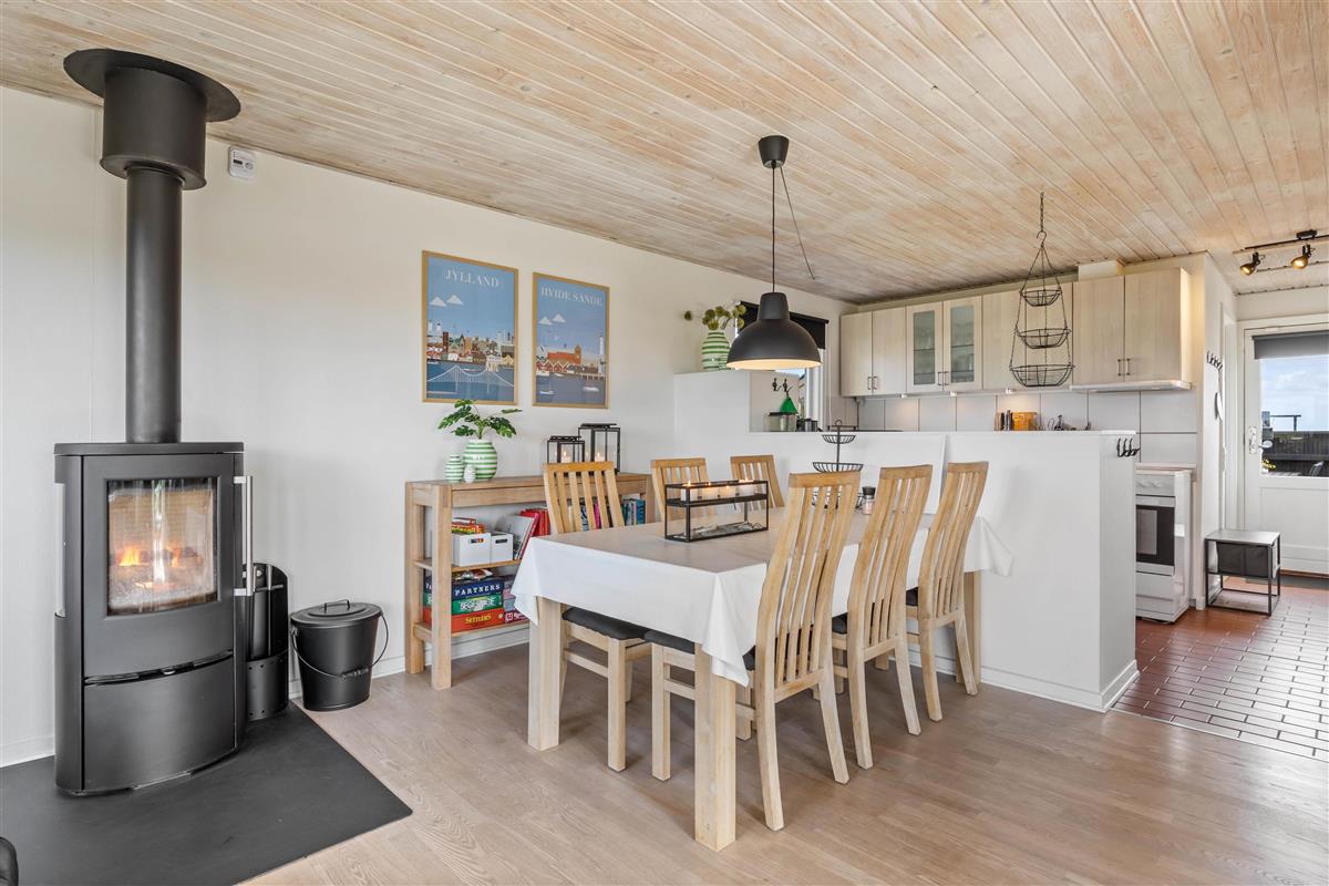 The holiday home is situated at the southern end of Ringkøbing Fjord. From here, you can enjoy beautiful nature walks and take trips to Bork Harbour, where you can experience Viking heritage up close. By car, you can reach the small harbour town of Hvide Sande in 20 minutes to the north, where you can enjoy fresh fish, traditional Danish soft ice cream, or simply enjoy a relaxed shopping trip.