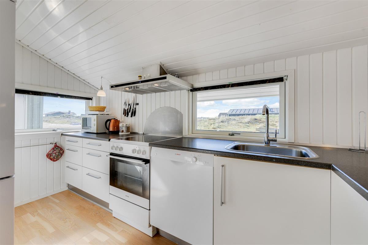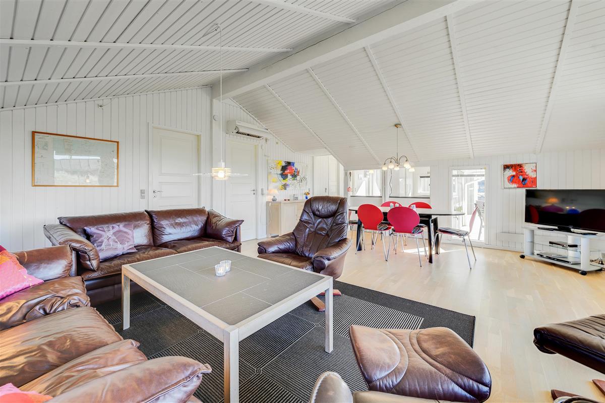Inside, light wooden features create a pleasant atmosphere throughout. The furnishings and equipment have been carefully selected with attention to detail to create a beautiful ambiance. In the open-plan living area, you can cuddle up together on the sofa and watch a film while a fire crackles in the wood-burning stove, creating a cosy Danish 'hygge' atmosphere.