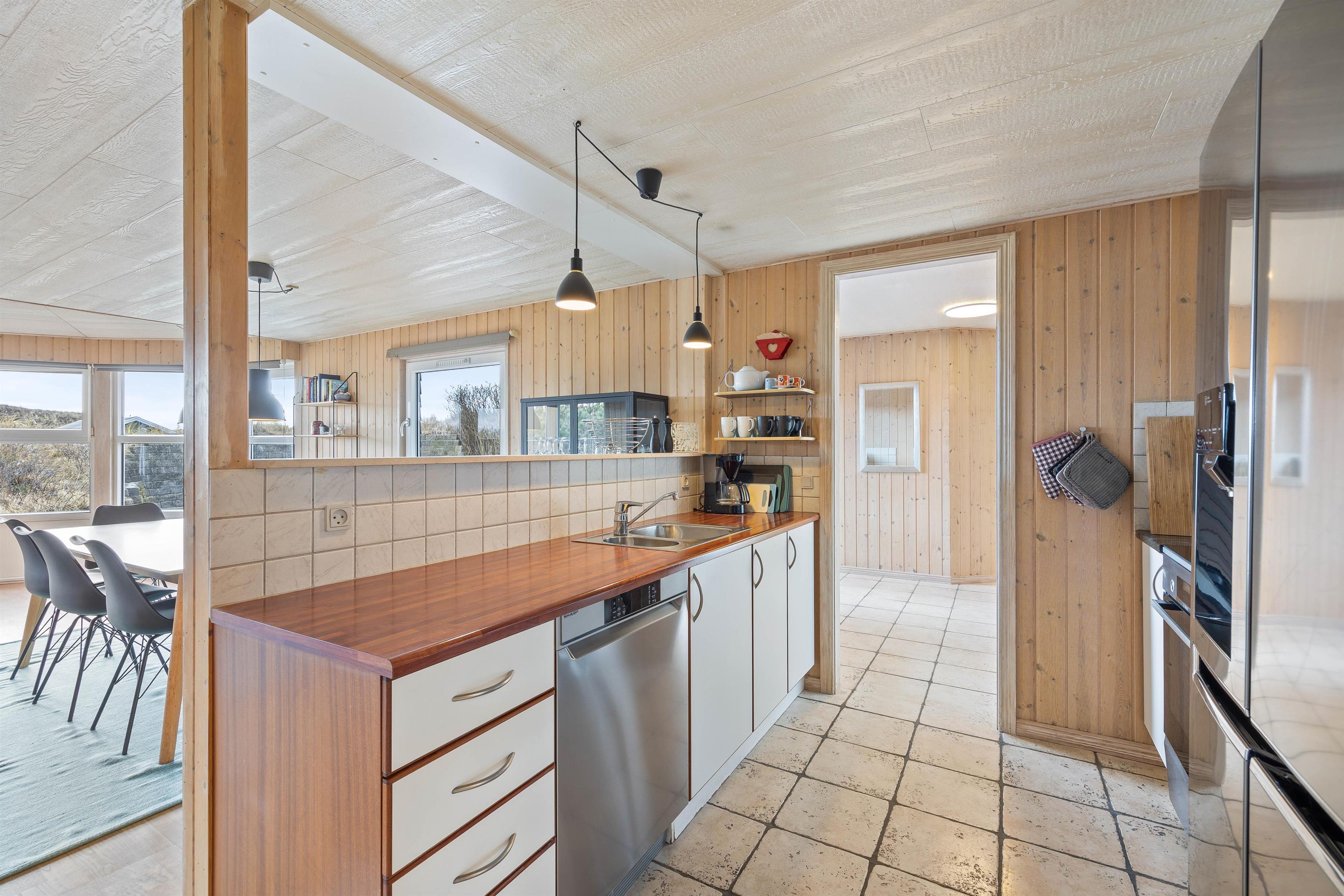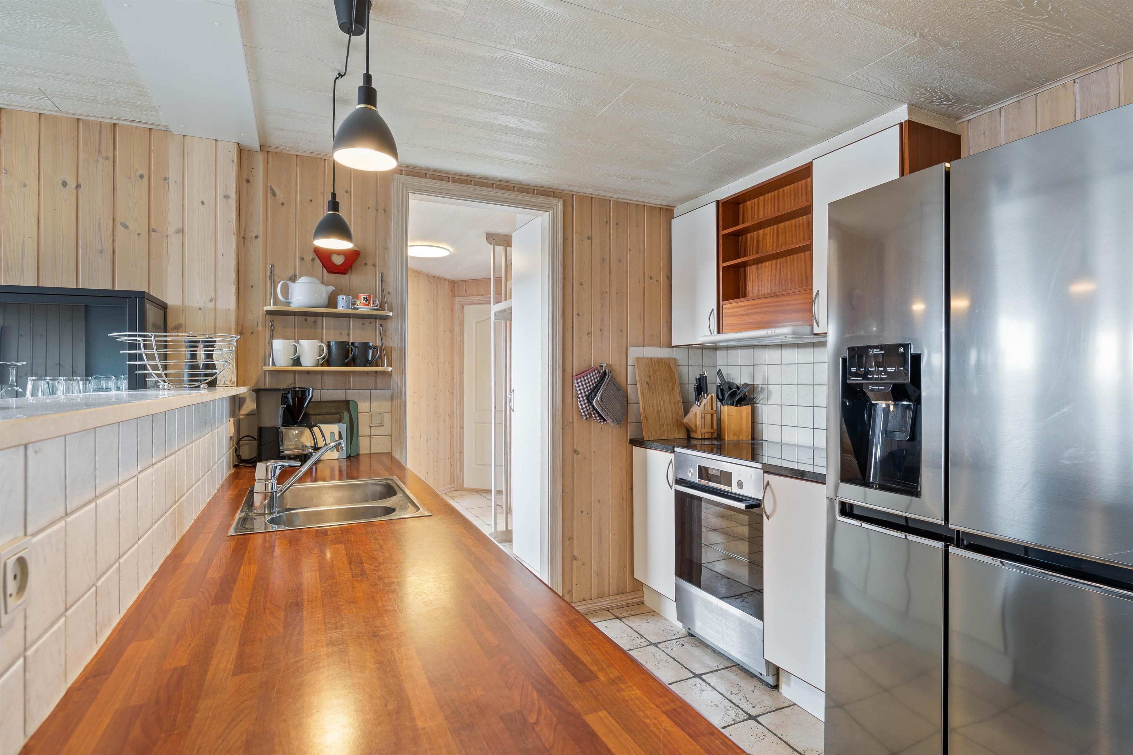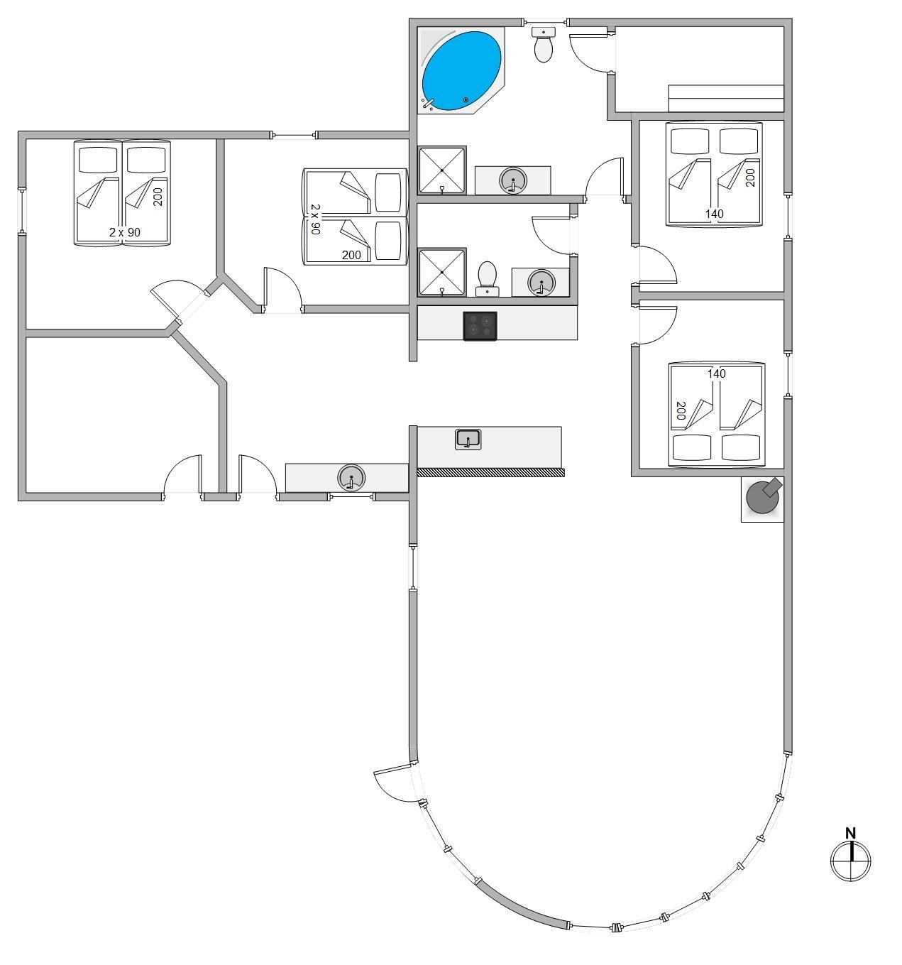The holiday home in Bjerregård provides a roomy experience for up to 8 people. It has 4 bedrooms: 2 with double beds measuring 140×200 cm, and 2 with two single beds (90×200 cm) joined together as double beds. This ensures a comfortable night’s sleep after a day full of activities.