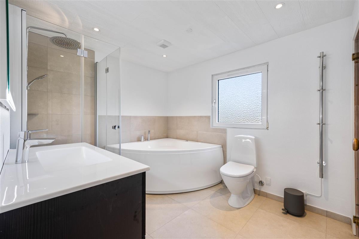After a long day enjoying nature, the spa and sauna offer pure relaxation and pampering. Underfloor heating in the main bathroom adds extra comfort, while an energy-efficient air-to-air heat pump ensures a pleasant temperature throughout the year.