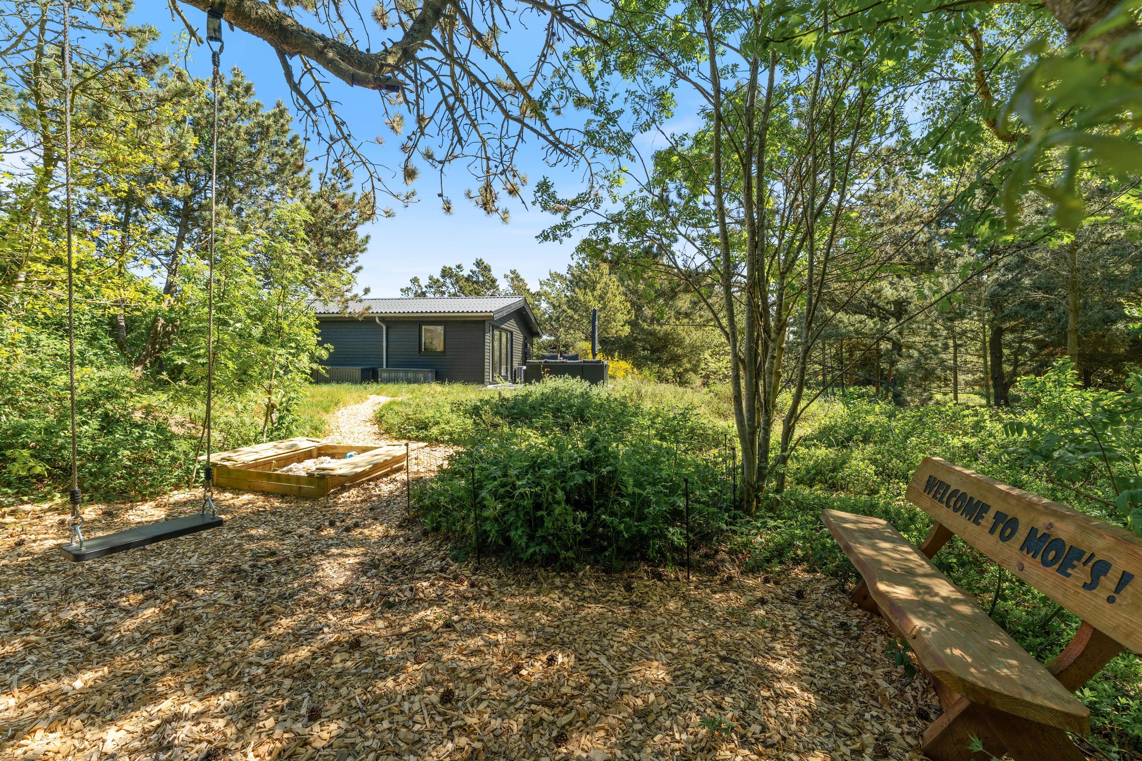 The holiday home at Bjerregårdsvej 69 sits on approximately 1,500 square metres of natural grounds, providing plenty of space for play and outdoor relaxation. While you unwind with a refreshing drink on the partially screened terrace, children can enjoy the sandbox, swings, or explore the grounds. The terrace is furnished with comfortable garden furniture and sun loungers.