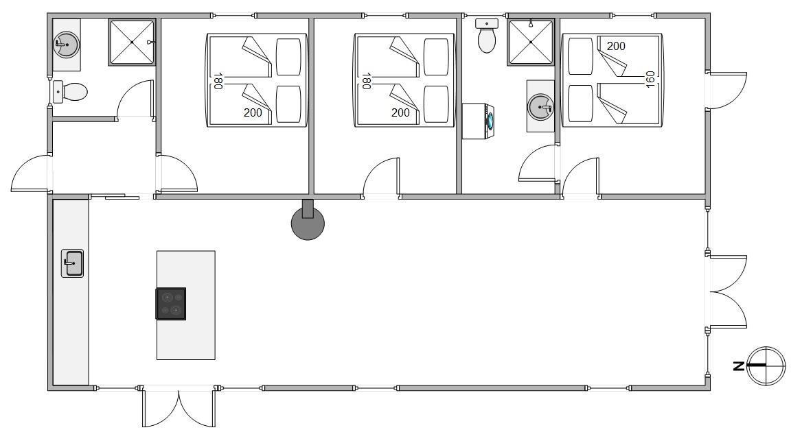 The open-plan kitchen with underfloor heating features modern appliances and includes a kitchen island perfect for social cooking. Alongside the modern induction hob, you'll find a dishwasher, microwave, and an 80-litre freezer. Let your culinary imagination run wild and perhaps try some traditional Danish recipes.