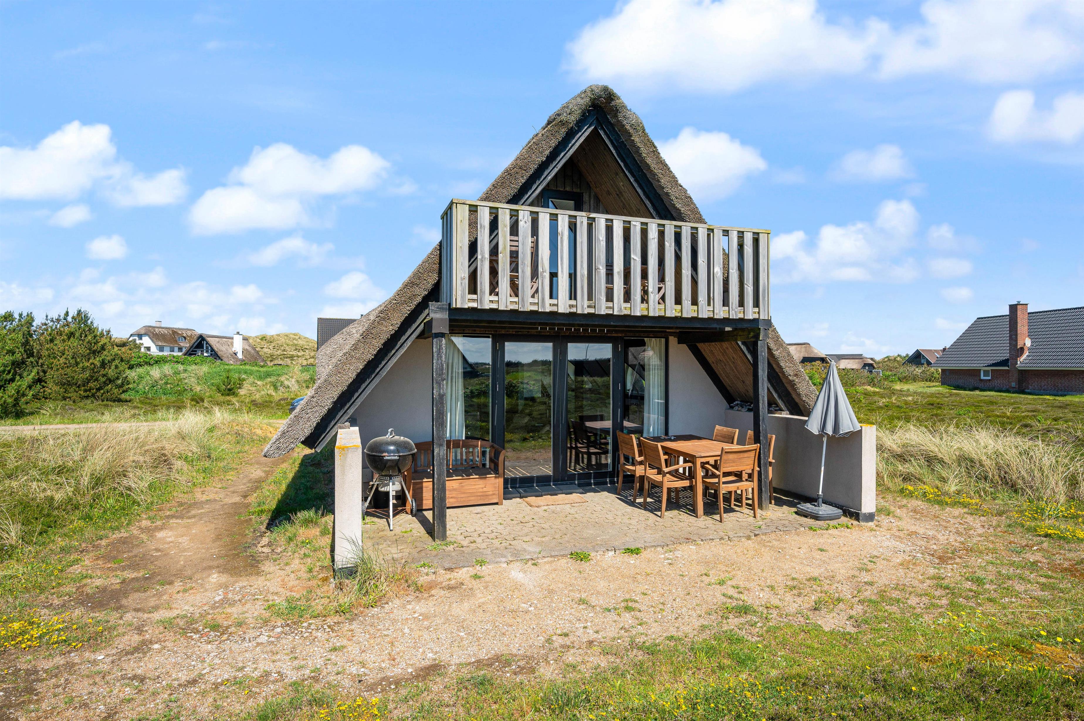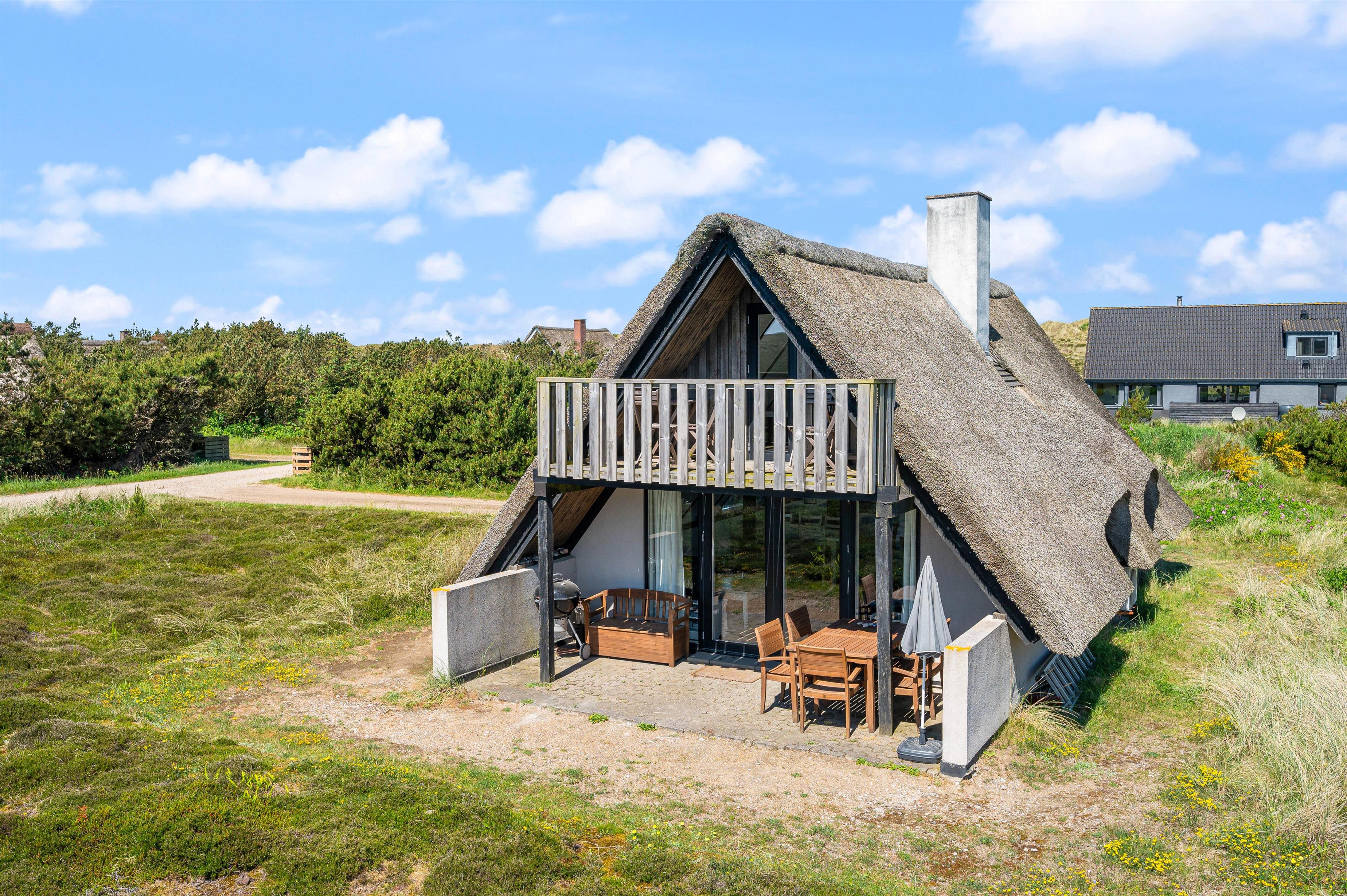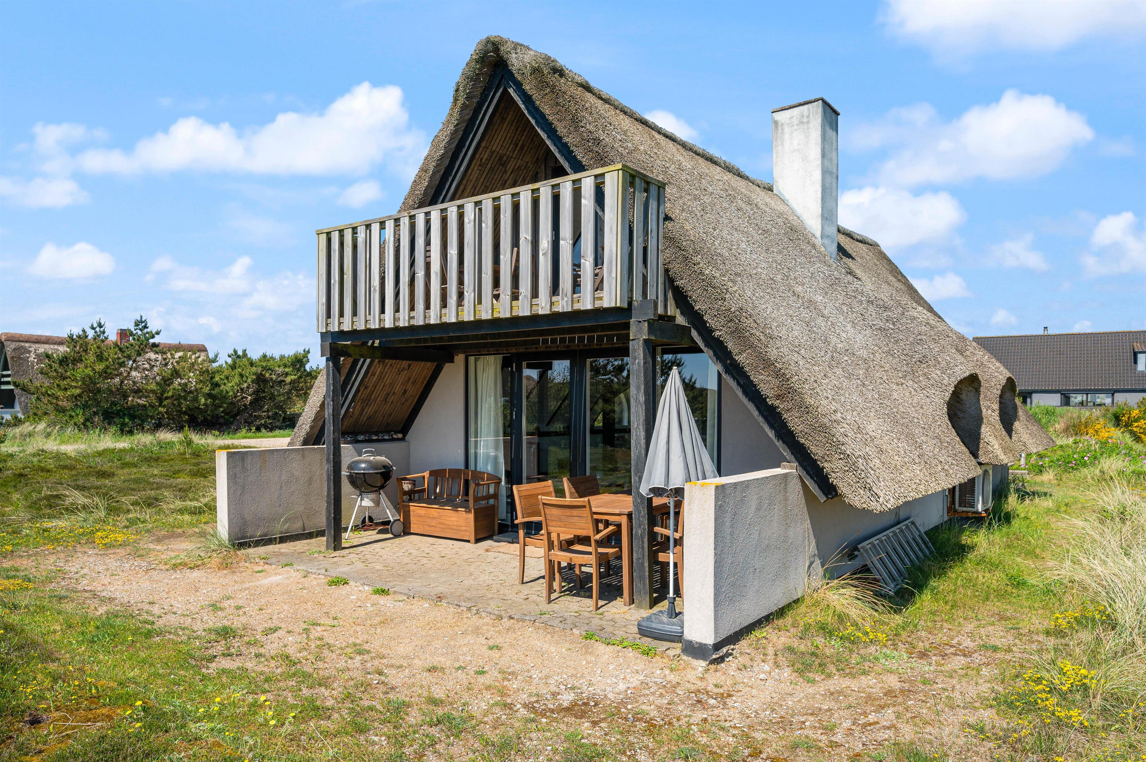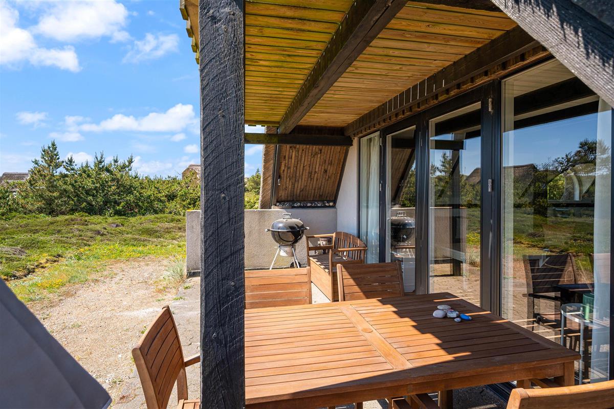 Outside, the holiday home offers pleasant spaces to enjoy the fresh coastal air. The property is situated on a natural plot that provides plenty of space to relax and enjoy the surroundings. Both an open terrace and a covered terrace are available, allowing you to sit outside whether you prefer sunshine or a sheltered spot.