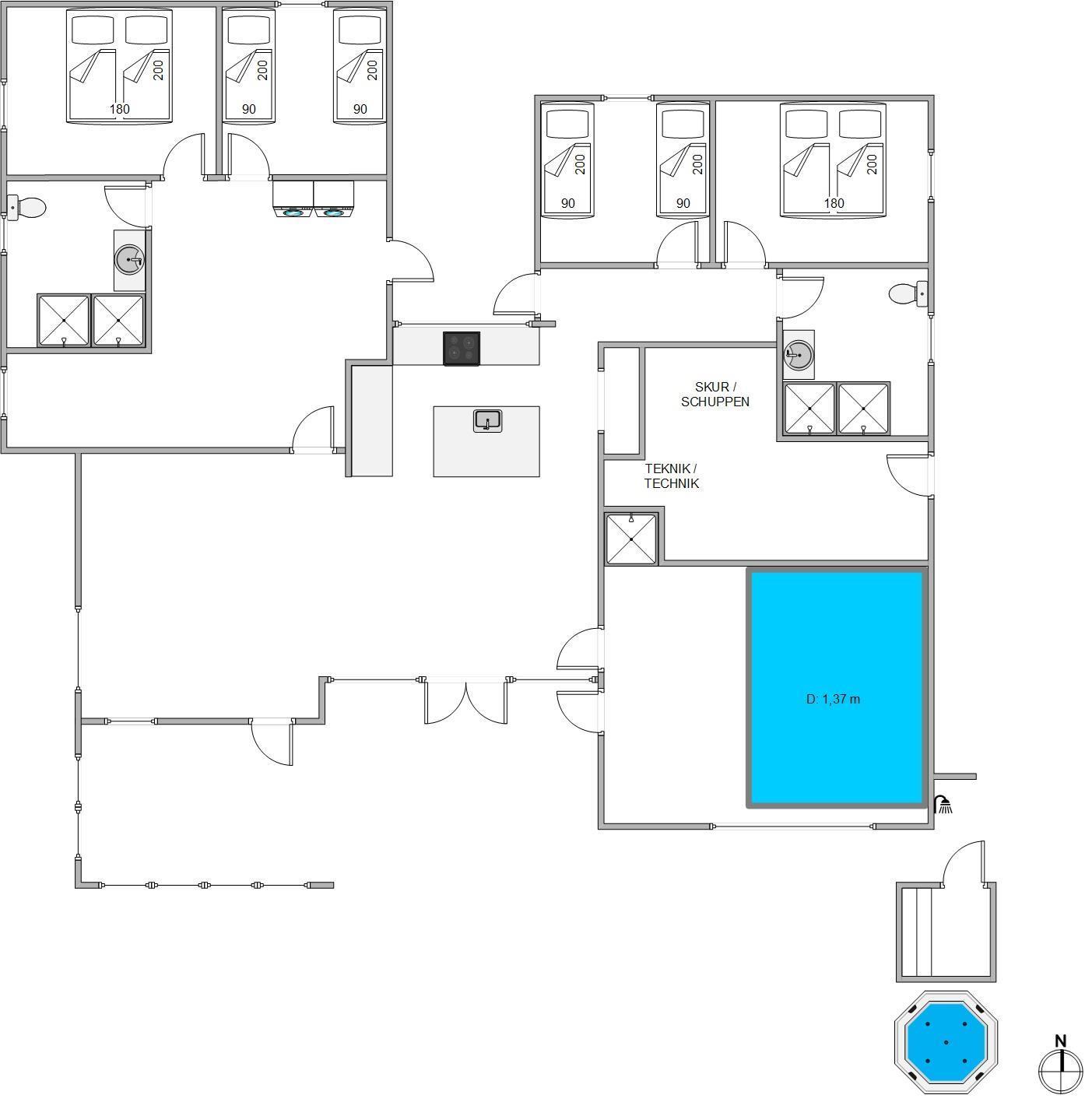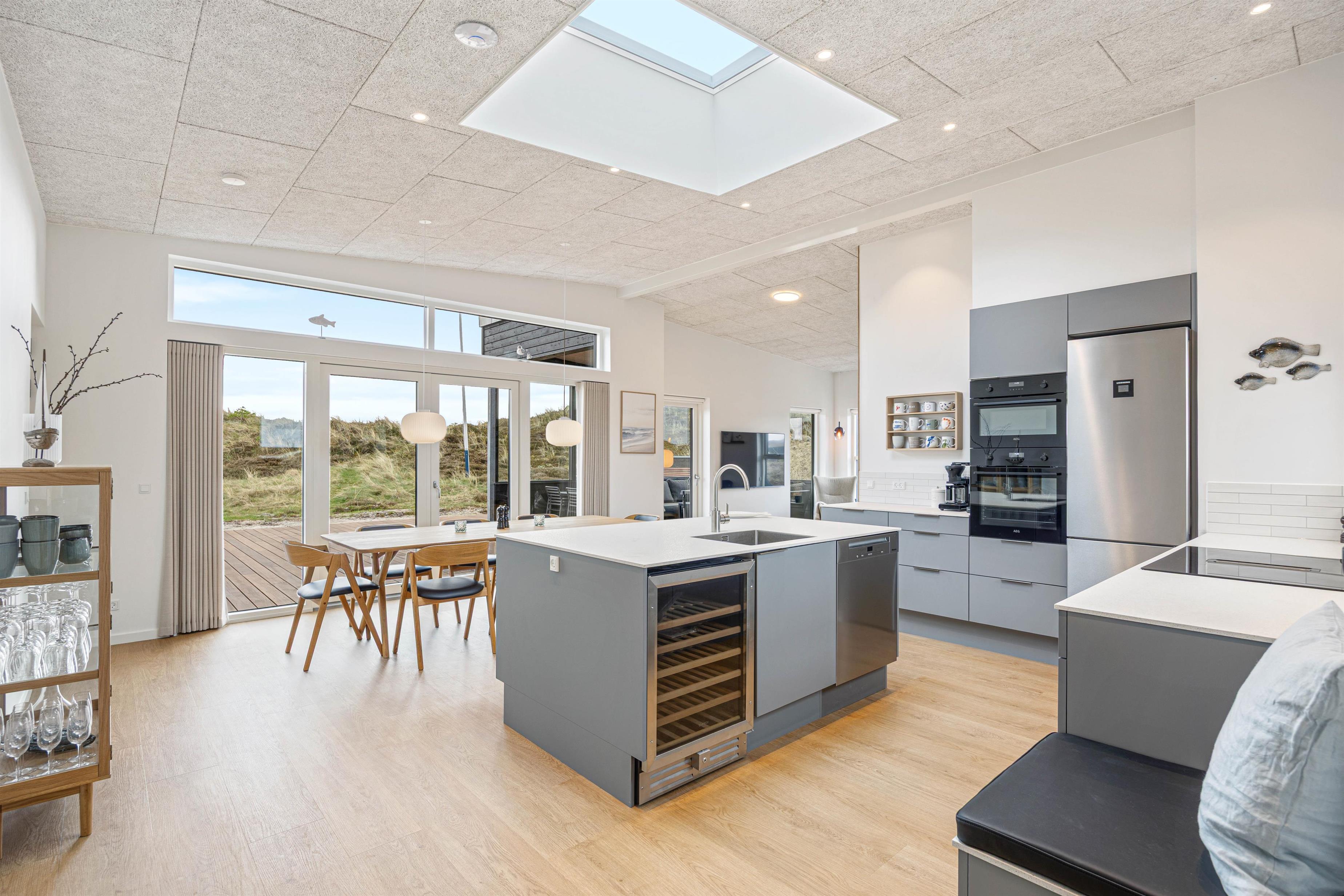 This luxurious holiday home offers exceptional features. The open-plan living area with kitchen forms the heart of your holiday. Underfloor heating, powered by an energy-efficient heat pump, keeps you comfortable. The modern kitchen, featuring Velux roof windows, is perfect for cooking together and preparing delicious meals. Afterwards, the dishwasher takes care of the cleaning up.